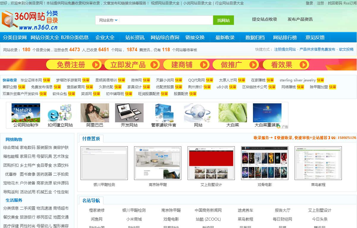 | 网站简介: 360分类目录网(www.n360.cn)是收录国内外、各行业优秀网网站大全,整理和收藏网站大全导航,,让用户快速的找到自己需要的网站大全提供便利的网址导航及分类目录检索、网站推广,网友可搜索国内外网站以及购物、团购、设计、视频、电影、军事、学习、交友、新闻等分类网站信息。 |