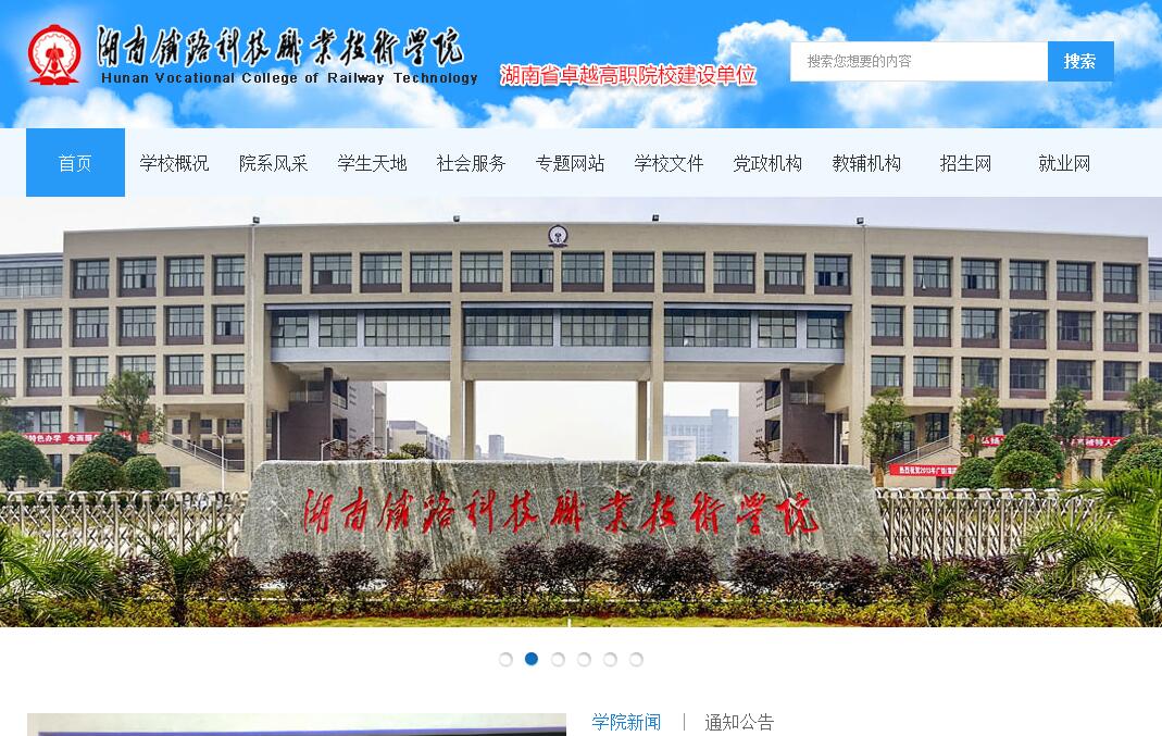湖南铁路科技职业技术学院是经湖南省人民政府批准、教育部备案设立的公办全日制高等学校,由株洲市人民政府举办,湖南省教育厅业务管理。学院前身是株洲铁路机械学校,成立于1956年,由原铁道部批准设立,广州铁路局主管,期间于1958年更名为株洲铁道学院,举办本科教育,后因国家院系调整恢复举办中专,2005年开始举办高等职业教育,主要为铁路运输行业培养专门人才。办学以来,培养各类大中专毕业生10万多人,分布在包括香港在内的全国各地铁路和地铁线上,成为我国铁路运输行业的中坚力量。学院是湖南省卓越职业院校建设单位、湖南省示范性(骨干)高职学院、教育部人才培养水平评估优秀学校、国家首批教育信息化试点单位、国家首批数字校园实验校建设单位、湖南省首批教育信息化创新应用示范学校、湖南省大学生就业创业示范高校、湖南省首批大学生就业一把手工程优秀示范学校、湖南省首批大学生示范性创新创业孵化基地、南方铁路运输职业教育集团牵头学校和株洲市产教联盟发起学校,是株洲市人民政府与广州铁路集团公司共建学校。学院是湖南省文明单位、湖南省党建先进高校、湖南省创先争优示范单位、全国诗词进校园优秀学校。学院位于株洲市国家两型社会建设示范区——云龙新区的湖南(株洲)职业教育科技园、长沙—株洲高速(S21)株洲出口2公里处(查看交通指南),距长沙黄花国际机场、高铁长沙南站、高铁株洲西站、普铁株洲站的距离均在30分钟左右车程。学院校园占地41万平方米,建筑面积24万平方米,拥有1栋公共教学楼、6栋专业实训楼、1座图书馆、1栋体育活动中心、1栋学生活动中心、1栋大学生创新创业中心和1栋职工培训楼。学生宿舍公寓化,校园内有线+无线网络全覆盖,智慧化、人文化、生态化、两型化校园为全体师生提供一流的教学、工作、生活环境。学院牵头组建的南方铁路运输职业教育集团是经湖南省教育厅批准的跨地区、跨行业、跨层次的职教集团。集团成员由广州铁路集团总公司、上海铁路局、武汉铁路局、南昌铁路局、南宁铁路局、昆明铁路局等南方铁路局,长沙地铁、深圳地铁、广州地铁等全国20多家城市地铁公司,中国中车株洲电力机车公司、中铁轨道公司等国内知名轨道交通装备制造企业,铁道部科学研究院、中国中车株洲电力机车研究所等科研院所,行业协会、大中专院校及铁路员工培训基地组成,是合作培养铁路和城市轨道交通专门人才的联盟机构,集团内实行教学师资、实训基地、教学资源等共建共享,是合作办学、合作育人、合作发展、合作就业的实体平台。学院培养全日制三年制高职学生,目前在校学生11000余人,设铁道机车学院、铁道车辆学院、铁道运输管理与经济学院、铁道工程与信息学院、铁道供电与电气学院、继续教育与国际学院、创新创业学院和基础课部、思政课部、体育部,开设铁路和城市轨道交通类专业16个以及服务轨道交通的非铁路相关专业6个,是一所特色鲜明的铁路行业院校,每年4月通过单独考试面向湖南招生,6月通过普通高考面向全国招生。学院采用与用人单位“双主体”育人的办法,由用人单位全程参与培养、检查和考核,大部分学生实行“订单”或者“定向”培养,实施半军事化管理,采取“毕业证+技能证”双证毕业制,铁路和城市轨道交通专业主要面向高速铁路、普速铁路、城际铁路、城市地铁以及大型厂矿企业专用铁路运营领域就业,其他专业面向铁路和城市轨道交通装备制造企业、国有大型企业、上市公司和成长型中小企业就业。学院与广州铁路集团总公司合作建设的铁路综合实训(培训)基地线路总长近3000米,使用全真实铁路线上在用设备器材进行教学化改造,其中通信信号基地是广铁集团在公司外与学校共建的惟一基地,可以满足高速铁路、普速铁路和城市地铁各专业的学生实训、职工培训及技能比武、考证需要。与中车电气股份有限公司合作建设的城市轨道交通试验线,是培养轨道交通未来人才的基地。与中国铁建、西南交通大学和肯尼亚铁路学校合作建设的肯尼亚铁道学院,与马来西亚吉隆坡大学合作建设的吉隆坡大学铁道学院是伴随“一带一路”战略走出去培养东非和东南亚铁路人才的基地。学院弘扬以“铁的纪律、团结协作、敢于负责、甘于奉献、奋勇争先”火车头精神为核心的学院文化,按照“重点走好两条钢轨,重视走出两条钢轨,加快走向国际市场”发展战略,以“服务铁路和城市轨道交通业、服务长株潭经济社会发展、服务全体教师和学生”为办学宗旨,正朝着建设“行业排头兵、省内双一流、国家优质校、国际有影响“的优质高职学院快速前进。
