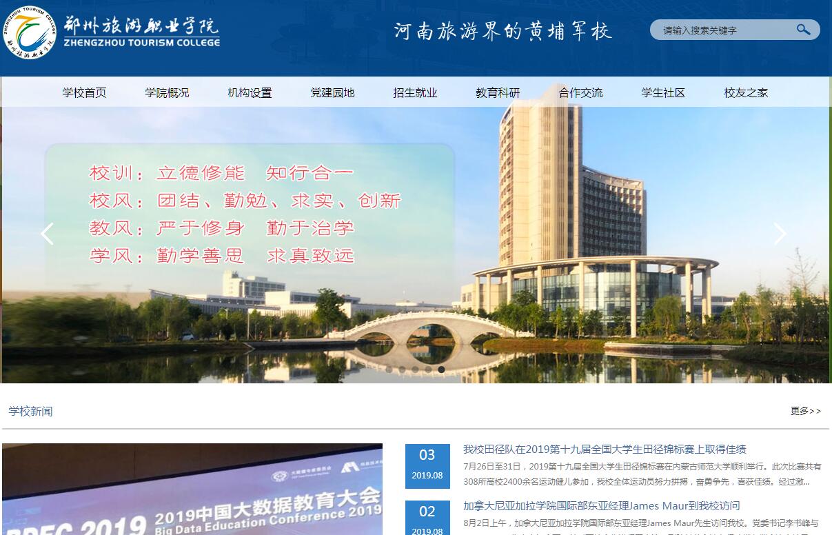 郑州旅游职业学院前身是郑州旅游学校,创办于1985年,隶属于郑州市人民政府,历经四次跨越发展,于2004年5月经河南省人民政府批准、国家教育部备案成立的公办高等院校。学校占地面积1251亩,总建筑面积57万平方米,其中新校区占地面积1036亩,建筑面积近43万平方米。全日制大中专在校生11772人。现有8系、3部和1个继续教育学院。开设44个高职专业、10个五年制大专专业,其中中央财政支持重点建设专业2个、全国职业院校旅游类示范专业点2个、省级专业综合改革试点6个、省级特色专业4个、省级优秀教学团队1个、省级精品课程1门、省级精品资源共享课程1门、省级示范性实训基地3个,市级重点专业、示范专业8个、市级优秀教学团队5个、市级精品资源共享课程7门、市级重点实验室2个。是全国旅游行指委旅游管理专业行业教学指导委员会承担学校。学校现有教职工696人。其中教授9人、副高以上职称105人,博士及在读博士16人,硕士415人。国家行业大师4人,省职教专家5人、教学名师1人、教育厅学术技术带头人13人,省骨干教师3人,市职教专家4人、专业技术拔尖人才4人、郑州市学术技术带头人4人、地方高校特聘高层次人才8人。双师型教师400余人,同时还聘请多名行业企业专家及一线岗位技术能手担任兼职教师。学校坚持围绕旅游搞科研的方针,科研成果数量和质量显著提高。荣获国家教学成果二等奖1项,省级教学成果特等奖1项、一等奖2项、二等奖1项。承担的教育部旅游管理专业国家教学标准研究项目经全国旅游职业教育教学指导委员会审核成功结题。近三年来,学校先后完成国家旅游局“万名旅游英才计划”项目27项,完成省部级项目23项、地厅级项目117项,发表学术研究论文574篇,其中核心202篇,出版著作、教材22部。建有河南旅游研究院和高等职业教育、旅游规划、酒店咨询3个研究中心。学校现代化教学设施齐全。学校固定资产总金额约3.92亿元,其中1000元以上教学仪器设备总值1.24亿元。图书馆建筑面积4.3万平方米。馆藏纸质图书92万册。音像资料5000件,电子图书115万册,报刊800种,电子资源数据库6个,建有万兆双核心、千兆骨干校园网和电子阅览室。新校区“智创型”实训基地建设总体方案制定完成并开始实施,现有校内实训室126个,2020年建成27个实训中心、362个实训室,实现“教学、实训、培训,博物、展览、交流,研发、生产、销售,旅游、创业、服务”等四位一体功能。学校坚持开放办学战略。与洲际酒店集团、希尔顿国际酒店管理集团、中州国际集团、北京通航控股有限公司等多家高端企业深度合作,建立校外实习基地141个。与日、韩、美、德、奥地利等国及台湾高校建立合作办学关系。每年向美国皇家加勒比游轮公司、新加坡星梦、丽星游轮公司、美国奥兰多迪士尼、韩国湖原大学、韩国济州观光大学、台湾高雄餐旅大学、日本饭店协会输送学生200余人。学校坚持“为一切人的自由发展搭建平台”的办学理念,培养“争得上、留得住、干得好、能发展”为地方经济社会发展一线服务的旅游特色突出的高素质技术技能型人才,取得了一系列的成绩。近三年学校在全国职业院校技能大赛和全国旅游院校服务技能大赛中获得一等奖10个、二等奖10个,在省赛中获得一等奖11个、二等奖6个。近年来学校毕业生就业率始终保持在96%以上,学校被北京钓鱼台国宾馆、人民大会堂、中央警卫局等确定为定点选人单位。学校是中国旅游协会教育分会副会长单位、全国旅游教育五星联盟单位、河南省旅游高等职业教育集团理事长单位。先后获得全国职业教育先进单位、国家旅游局旅游职业教育校企合作示范基地、全国体育文化类“一校一品”示范基地、河南省职业教育品牌示范院校、河南省优质高等职业院校立项建设院校、河南省高校数字化校园示范工程建设单位、河南省教育科研网建设先进单位、河南省校企合作生产性实训基地、河南高等教育就业质量最佳示范院校、河南最具就业竞争力的十佳典范高校、河南最具品牌影响力的典范高校、河南高等教育质量社会满意院校、河南省职业教育“双师型”教师培养培训基地、省级文明单位、河南省文明学校、河南省“依法治校示范校”等称号,被业界誉为河南旅游人才的“黄埔军校”。当前,学校上下正以饱满的工作热情和昂扬的精神状态,团结一心,开拓进取,紧抓新校区搬迁带来的发展机遇,全面推动科学发展、内涵发展、特色发展、创新发展,为把学校建成规模适度、结构合理、办学实力和社会服务能力显著提升,在国内有较大影响力的旅游特色鲜明的高水平院校而努力奋斗!