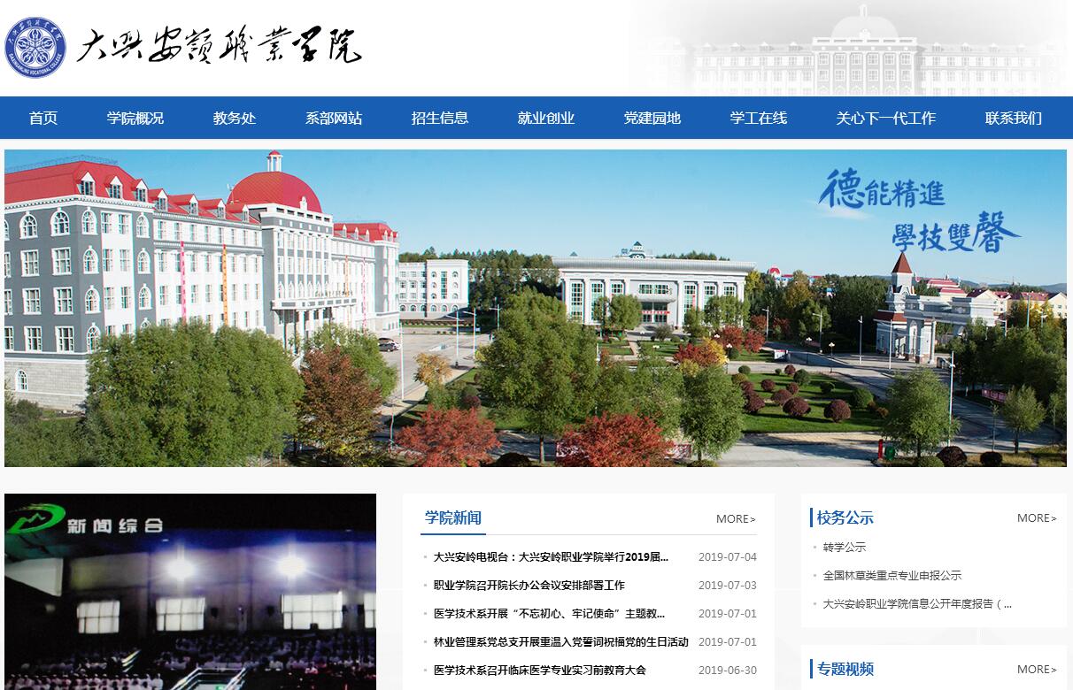 大兴安岭职业学院是2002年由黑龙江省人民政府批准成立的公办全日制综合性普通高等院校,是黑龙江省骨干高等职业院校之一,是大兴安岭地区产业人才培训基地,是黑龙江省“文明单位”标兵。学院占地面积44公顷,建筑面积9.1万平方米,实验林场300公顷,固定资产总值1.5亿多元,教学科研仪器设备值3856万元,馆藏图书35.7万余册,拥有附属医院、防火实训室、版画创作基地等71个校内实训、实践基地和分布在全国各地的110个校外实习、就业基地,建成了国家林业局林产品质量检验检测中心、国家质检总局蓝莓检验检测中心、大兴安岭地区食品药品质检与研发中心和国家林业局林业行业特有工种职业技能鉴定站、国家工信部电子行业职业技能鉴定站等多个检测、研发与鉴定机构。学院设有林业管理系、医学技术系、电子工程系、师范教育系、艺术体育系、成人教育部、基础部、思政部8个教学部门,开设森林防火指挥与通讯、林业技术(原森林工程技术专业)、高级护理、临床医学、口腔医学、计算机网络技术、学前教育等45个高职高专专业。现有在籍学生4541人,其中,全日制在校生4537人,成人教育生4人。现有教职工329人,专任教师140人,兼任教师86人,高级职称教师69人,具有研究生以上学位教师80人,“双师素质”教师95人,省级教学团队1个,省级教学名师3人。有中央财政建设专业2个,省级重点专业6个,特色专业4个,形成了重点引领、特色崛起、辐射带动的专业建设格局。学院突出人才培养的针对性和实用性,坚持“教学与岗位衔接”为教改切入点,建立了“基于工作过程”、“双证融通”的课程体系,实现了培养模式的整体优化和教学内容的创新整合,加强了大学生创新扶持和就业创业教育,毕业生可获得学历文凭和职业资格的“双证书”,拥有较强的综合竞争力和就业创业能力。多年来,学院坚持“质量立校,人才强校,特色兴校”的办学理念,不断加强内涵建设,教育教学水平取得了较大的进步和提升。2014年11月,学院顺利通过教育部人才培养工作评估,学院办学水平和人才培养工作获得教育主管部门和社会各界的高度评价。同年12月,学院得到省教育厅正式批复,成为黑龙江省骨干高等职业院校,综合办学实力跻身我省高职院校前列,为长远发展奠定了坚实基础。2015年7月,学院成功主办了黑龙江省高职高专医药卫生类专业教学指导委员会年度工作会议,并邀请教育部、行业协会的知名专家做客学院,进一步扩大了学院的社会影响力。2016年2月,中国科学评价研究中心、中国教育质量评价中心发布了《2016年中国大学及学科专业评价报告》,本次大学评价的院校对象为国内具有高等教育招生资格。大兴安岭职业学院在全国1336所高职高专院校竞争力排名中列第346位,进入全国600强。在黑龙江省入选600强17所专科院校中,职业学院名列第9位。站在新起点,迈向新征程。大兴安岭职业学院将继续坚持内涵发展总方针,注重突出特色办学,培植特色专业品牌和教改示范项目,注重提高教学质量,以教学为中心,以质量和特色求发展,全面提升教育教学质量和管理服务水平,以《创新发展行动计划》为纲领,突出把握“质量、特色、稳定”六字方针,重点推进三项内涵建设工程,即推进以教学诊断与改进为抓手的教学质量工程,推进以全面落实《管理水平提升行动计划》为主线的管理创新工程,推进以促进林区经济社会发展为引领的社会服务工程;坚持狠抓落实总要求,以对师生负责、对林区负责、对历史负责的担当精神,持续推进立德树人、深化改革、提高质量、优化管理、依法治校等方面工作,举全院之力,实现学院创建黑龙江省高水平高职院校和专业的宏伟目标。