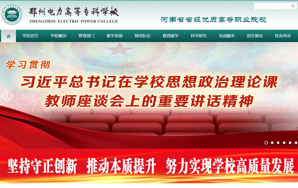 郑州电力高等专科学校是一所由中央和地方共建、由电力行业举办、以电力职业教育为主体的普通高校,是中南地区重要的电力技术技能型人才培养培训基地。学校已有85年的办学历史,其前身郑县工业职业学校(后更名为河南省立郑州高级工业职业学校)始建于1933年,抗战时期在内乡县赤眉镇办学8年,经历了16次易名。1953年全国院系调整,以郑州高级工业职业学校为基础、将中南五省六所高级工业学校的电机科并入,成立燃料工业部郑州电力学校。其后,历经河南电力学院、郑州电力学院、郑州电力学校等发展阶段,1994年,建立郑州电力高等专科学校。学校原校址位于郑州市管城回族区商城路2号,与商城遗址和郑州城隍庙毗邻。2013年9月,学校整体搬迁至郑东新区白沙园区,占地近40万平方米,规划建筑面积28万平方米,具备学历教育、培训服务、技术服务等多重职能。目前,学校在校生5945人。在册职工368人,其中专任教师285人;教授32人、副教授、高级工程师等副高职称98人,讲师128人;博士、硕士118人。学校拥有144个校内实训室和30余个校外实习基地;拥有河南省教育厅电力节能减排工程研究中心、郑州市发电锅炉节能减排重点实验室;设置6个专业系、3个公共教学部,开设26个专科专业,其中:省级及以上重点专业3个、特色专业7个、与澳大利亚启思蒙学院合作办学专业4个;建设国家级精品资源共享课1门、省级精品资源共享课2门、校内网络课程144门,获批职业教育创新发展行动项目8项。历届毕业生就业率均在95%以上。学校承担国网河南省电力公司人、财、物管理类和班组长、新员工入职培训等项目。2017年,依托学校成立国网技术学院郑州分院,开始承担国家电网公司新员工培训。学校设有河南省第一批火力发电国家职业技能鉴定站、全国三网融合移动互联网人才认证考试技能鉴定站、电子CAD职业资格认证技能鉴定站、电子商务师考点等技能鉴定站点,承担职业技能鉴定任务。在85年的办学历程中,学校逐渐形成了“严谨笃学、敬业乐群”的校风、“立德修能、知行合一”的学风和 “明德循理,精业育人”的教风,确立“校企合作、产教融合”的人才培养模式。学校以高效完善的人才培养机制、优质完备的教育教学资源、严谨规范的教学管理体系、积极向上的学习生活环境和优美浓郁的校园文化氛围,深受广大学子和家长的好评。学校先后培养出了60000余名优秀人才,校友们的出色表现和卓越成就,为学校赢得了良好声誉,确立了学校的重要地位。步入新时代,开启新征程。学校将以电力教育品牌名校为目标,致力于现代化电力职业教育发展建设,扬帆起航,勇往前行,为实现中华民族伟大复兴的中国梦奉献力量。