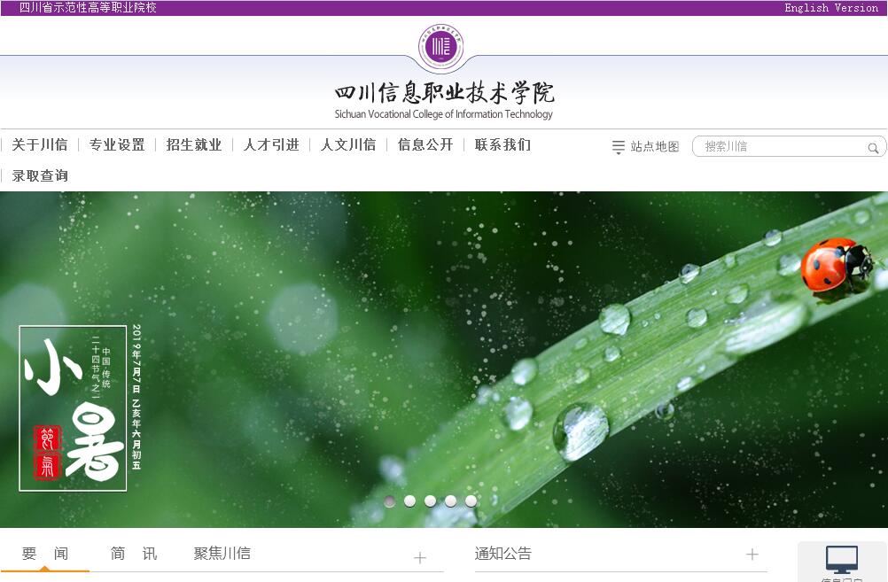 四川信息职业技术学院是经四川省人民政府批准、教育部备案的全省唯一一所电子信息类公办高等职业院校,始建于1976年,隶属于四川省经济和信息化厅,是四川省示范性高职院校、省优质高职院校建设培育单位、国家高技能人才培训基地、全国“职业院校数字校园建设实验校”、四川省教育信息化试点单位。学院地处秦巴腹地,位居成绵广电子信息产业带、川东北经济区,毗邻四川军工电子、军民融合产业园和广元国家经济技术开发区,行业和区位优势得天独厚,引领和创新发展优势明显。现有两个校区,占地面积520亩,总建筑面积19.1296万平方米,学院教学仪器设备总值9317.88万元,教学用计算机3328台,馆藏纸质图书62.3万册,电子图书14.1万册。在校学生8107人,有专任教师341人,其中,正高级26名,副高级98名,“双师型”教师140名。设有机电工程系、电子工程系、信息工程系、经济与管理系、电气工程系、数字艺术系、汽车工程系、基础教育部等教学单位,开设了应用电子技术、软件技术、数控技术等37个高职专业,基本形成了以工科为主体,以电子信息为主导的专业结构体系,现有中央财政支持的提升专业服务能力专业2个,教育部现代学徒制试点专业2个,四川省“高等教育质量工程”特色专业1个,省级教改试点专业1个,省级重点专业3个,省级示范专业4个,省级现代学徒制试点专业5个。建成省级精品课程14门、省级精品资源共享课程8门、省级精品在线开放课程7门、省级创新创业示范课程4门。取得省级教育教学类和应用科研项目192项,市级科研项目150项,国家授权专利296项。公开发表论文2193篇,其中核心期刊586篇。获得国家级教学成果二等奖1项、省级教学成果一等奖1项、三等奖4项。学院以委市共建为支撑,强化政行企校四方联动,搭建了4大发展平台(创新创业平台、校企合作平台、集团化办学平台、技术服务平台),形成了“一支撑、四联动、四平台”的“144”办学模式,为学院拓展了更为广阔的发展空间,全面提升学院综合办学实力。学院先后被确定为国家高技能人才培训基地、四川省信息化人才培训基地、四川省信息网络安全专业技术人员继续教育机构、四川省高技能人才培训基地、四川省级教育信息化试点单位、广元市外派人员培训基地、广元市职业技能定点培训机构、广元市农村劳动力转移培训阳光工程培训基地、广元经济开发区高端技能型人才培训中心。学院还牵头成立了四川电子信息行业职教联盟、广元职业教育集团、广元市职业教育研究中心;建成了教育部-中兴通讯ICT行业创新基地、四川移动应用协同创新中心、广元院士(专家)工作站、广元云计算大数据工程研发中心。学院大力开展校企合作产业园建设,引进了联想客户服务中心、广元天英精密传动公司等企业建立“校中厂”,与广元经济开发区签订协议建设“厂中校”,与广元市利州区共建“广元创业孵化园”。为推进广元职教资源转化、行业发展和地方经济建设做出了应有贡献。学院努力构建以“工学结合、校企合作”为基础的人才培养模式,先后与联想、华为、中兴、惠普、谷歌、西门子等国际知名企业开展校企合作,建成联想、中兴等企业学院,组建了数十个定向培养班,“ 平台+方向、双元主体、双证融合、双学分制”人才培养模式逐步形成并取得明显成效。近年来,学院在高职创新创业教育方面积极进行理论创新和实践探索,通过政行企校四方联动,构建了“引培孵助”创新创业人才培养体系,架构了“专创五融合”创新创业育人模式,搭建了“六位一体”创新创业实践平台,创新发展影响力排名位居全省前列,获“全国第三批创业孵化示范基地”“省大学生创新创业园区”“省级科技孵化器”“省级大学生创新创业示范俱乐部”等称号。学院学生先后在全国职业院校技能大赛、“互联网+”大学生创新创业大赛、“挑战杯”大学生课外学术科技作品竞赛、全国大学生电子设计竞赛、国际软件设计大赛、全国数控技能大赛、全国大学生数学建模竞赛等国家级、省级比赛中获得奖项600多项,其中国家级奖项100余项,获奖1600余人次。长期以来,学院坚持“以人为本、能力为先”的办学理念,秉承“崇德、笃学、尚能”的校训,形成了“奋斗、求实、创新”的优良校风,确立了“立足信息产业、争创西部一流”的办学定位,走出了一条“根植信息产业、培养信息人才、服务信息社会”的特色发展之路。学院先后荣获第五届黄炎培职业教育优秀学校奖、全国职业技术学校职业指导工作先进学校、全国五四红旗团委、国家体育总局表彰的“2012年全民健身活动先进单位”、四川省依法治校示范学校、四川省普通高等学校毕业生就业工作先进单位、四川省文明单位等荣誉称号。