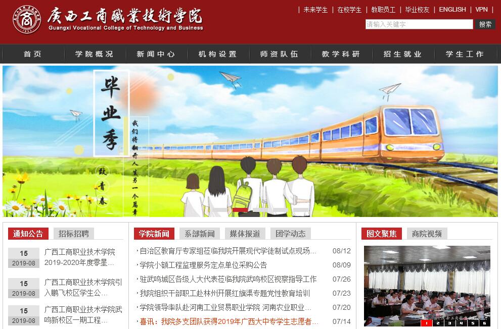 广西工商职业技术学院是经自治区人民政府批准成立、国家教育部备案的一所国家公办全日制普通高等学校。隶属自治区粮食局。学院位于绿城南宁,傍临景色秀丽的邕江之滨。学院建于1953年,半个世纪薪火相传,弦歌不断,历经64年的传承发展,几经改革变迁。其前身为广西粮食干部训练班、广西粮食干部学校、广西粮食学校、广西贸易经济学校(1994年确定为国家重点中专),以及1978年成立的黎塘粮食技工学校、广西粮食技工学校、广西经济贸易技工学校(1988年确定为省部级重点技校)。2004年6月,广西经济贸易技工学校与广西经济贸易经济学校合并升格组建为广西工贸职业技术学院,2006年3月更为现名。学院坚持依托行业、突出财经、服务三产的办学指导思想,现已发展成为财经管理特色突出,以财经大类专业为主体,电子商务、广告设计与制作等专业以及相关新兴专业协调发展的高等职业技术学院。学院现有鹏飞、中尧、新村、武鸣四个校区。鹏飞校区(校本部)位于南宁市鹏飞路15号;中尧校区(东校区)位于南宁市中尧路15号,新村校区(西校区)位于南宁市西乡塘新村路8号,两个校区共占地7万平方米;武鸣校区计划建设净用地1332.37亩,总建筑面积约46万平方米,目前已征地700亩。学院共有25个内设及有关党群组织。内设机构中,党群行政部门11个,教学科研机构7个,教辅机构3个,自主设置机构4个。目前,全校在职教职工307名,其中专任教师246名,教授、研究员、副教授、高级会计师、高级工程师、高级经济师等高级职称的教师68名,具有博士、硕士学位教师114名,拥有自治区级教学名师2名,自治区级实训基地3个,自治区级优秀教学团队1个,区级精品课程6门,拥有一批“双师型”教师,还长年聘请一批实践经验丰富的专家担任客座教师的顾问。学院设有会计系、经贸系、管理系、财务金融系、工业与信息化系、公共基础部和社科部7个教学科研机构,开办有会计、市场营销、电子商务、食品营养与检测、工商企业管理、广告设计与制作等类别共28个专业(含方向),全日制在校生8775人(不含成人教育学员),其中财经专业大类在校生占84.08%以上。学院拥有设备先进的教学大楼、综合实训楼、多媒体教室、多媒体语音室、图书馆和学生阅览室,拥有馆藏书42.81万册,设有“全国计算机等级考试”、“全国公共英语考试”考点和国家职业技能鉴定所、站(点)。截止至2016年8月底,学院共建有工商管理、财务会计、市场营销、食品营养与检测、电子商务等实训中心,实验实训室52间,校外实习基地100多个,自治区示范性建设高等职业教育实训基地3个。建校64年来,学院向社会输送了大量的相关高等素质技能型人才,先后获得自治区文明单位、自治区示范性高等职业院校重点培育单位、广西职业技术教育先进单位、广西高校先进基层党组织、广西高校安全文明校园、中国百个优秀青年志愿者服务集体、自治区普通高等学院毕业生就业工作先进集体、自治区卫生优秀学院、南宁市花园式单位等荣誉称号。