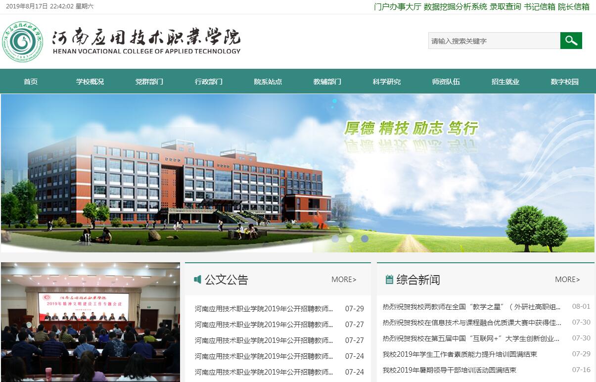 学院设有国家级职业技能鉴定站,可面向学生和社会开展化工总控工、钳工、维修电工、电子商务师等30多个工种的鉴定工作。近三年,我院毕业生“双证书”获取率分别达到毕业生总数的95.7%、96.8%和97.5%,平均通过率达95.9%。 教学设施完善,学生专业技能卓越。学院办学条件完善,教学设施先进,投资5000余万元建设了建筑面积达3万多平米的校内实训基地,有效整合实训教学资源。目前,学院建有功能先进、能真实仿真实际工作环境的虚拟和实体校内实训基地56个,校外实训基地99个,其中,中央财政支持示范性实训基地2个,省级示范性实训基地5个。学院现有教学用计算机1853台,多媒体网络教室和多媒体语音室153个,图书馆馆藏各类图书55万多册。学院拥有完善的校园信息网络系统,为全院师生提供网络信息服务,建有标准的塑胶田径场、室内篮球场、排球场、乒乓球室、网球场、足球场等各类现代化体育设施,满足了体育教学和学生体育锻炼的需要。先进的教学设施,突出的技能培训,使学院在各类技能大赛中屡获殊荣,教育厅也连续多年将河南省高职院校技能大赛暨全国职业院校技能大赛高职组河南选拔赛化工类赛项放在我院举行。近三年,学院先后组织学生参加151项国家级、省级各类职业技能大赛,共获得全国团体一等奖9项,团体二等奖16项;全国个人一等奖4项,全国个人二等奖7项。人才队伍合理,师资队伍德技双馨。学院拥有一支师德高尚、业务精湛、结构合理、充满活力的高素质专业化教师队伍,现有专职教师631人,其中教授9人,副教授136人,中级职称人员231人,“双师型”教师247人,拥有博士、硕士研究生学历、学位的教师213人,聘请知名企业中的中高级技术人才做实践指导教师72人。学院现有享受国家、省政府津贴专家2人,国家级优秀教师1人,全国职业教育先进个人3人,河南省教育专家3人,河南省优秀教师11人,河南省教学标兵3人,河南省教育厅学术带头人31人,省级优秀管理人才3人。近三年,教师发表CN级及以上论文612篇,主编、参编各类著作、规划教材133部,参与完成国家级、省级科研项目27项,地厅级科研项目97项,专利45项。就业成绩斐然,职业发展前景光明。学院注重全方位提供就业信息,建立就业信息网,定期举办“毕业生就业洽谈会”及大中型企业用人专场招聘会。目前已与郑州航空港经济综合实验区、郑州经济技术开发区、郑州高新技术开发区建立了合作关系,与中石化、中石油、河南能源化工集团、中国平煤神马能源化工集团、昊华集团、中国船舶重工集团有限公司第725研究所、郑州宇通客车股份有限公司、郑州旭飞光电科技有限公司、格力电器(郑州)股份有限公司、郑州丹尼斯百货有限公司、大商集团(郑州)有限公司、中国建筑第七工程有限公司、河南建筑第一、第二、第五工程有限公司、华兰生物有限公司、辅仁药业有限公司、河南羚锐制药股份有限公司、河南心连心化肥有限公司、浙江龙盛集团、恒逸集团、新和成集团、浙江信汇、郑州大学第一、第三、第五人民医院、郑州市中心医院、郑州市第七人民医院等180多家国内省内大型知名企业签订校企合作协议,建立了稳定的实习实训基地和就业基地,我院40%的毕业生进入了这些企业,月薪在3000元以上。学院近三年毕业生就业率一直稳定在96%以上,高于同类院校的平均就业率。在关注毕业生就业率的同时,学院还坚持开展毕业生跟踪调研,据跟踪调研显示,用人单位对我院毕业生普遍评价较高,不少毕业生现已成为各行各业的技术骨干和中高级管理人员,服务于地方经济,区域经济成效明显。作为河南唯一一所应用技术型职业学院,学院一直受到河南省委、省政府、省教育厅领导们的高度重视,省委书记郭庚茂,省人大常委会副主任蒋笃运,原副省长贾连朝,省委高校工委副书记、教育厅副厅长訾新建,省委高校工委副书记、教育厅副厅长张亚伟,教育厅副厅长尹洪斌等领导同志多次亲临我院视察工作,对我院的人才培养质量和就业质量给予了高度评价,并对学院发展寄予厚望。近年来,学院严守“厚德、精技、励志、笃行”的校训,在一代代学院人的精心铸造下,逐渐形成了“教师乐教、学生乐学、人人思进、个个争先”的优良校风和“心系学院、自强不息、务实创新、敢为人先”的学院精神,凝练出了“以质量立校、以人才强校、以特色兴校”的办学理念,形成了“职业化教育、企业化教学、素质化培养”的办学模式,“工学结合、理实一体、技能递进”的人才培养模式和教育警示、制度约束、过程监督、违纪必究的廉政措施。目前,面对现代职业教育发展的大好机会,学院党委正团结带领全院师生员工,秉持“敬业爱生、言传身教”的教风,“勤学善思、知行合一”的学风及“工作标准化、执行效率化、落实结果化”的工作作风 ,将以更加广阔的视野、更加开放的姿态,更加执着的努力,主动投身于中原崛起的洪流之中,为中原经济区建设做出新的更大的贡献。