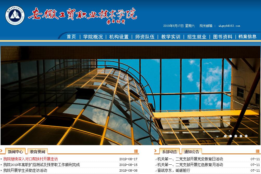 安徽工贸职业技术学院是在一所具有28年办学历史的普通高校基础上进行体制和机制改革的创新型高校,位于全国较大城市淮南市政治、经济、文化中心田家庵区国庆西路199号,环境优美,交通便利。校园占地面积1400余亩(含山南新校区规划用地),校舍建筑面积18余万平方米。专任教师近500人,副高以上职称170余人,“双师型”教师占90%,享受国务院特殊津贴的教育专家3人,淮南市“舜耕英才”2人;馆藏图书65万册,中外文图书资料1000余种;实验仪器设备价值7000余万元。设置六系(机械与汽车工程系、电气与电子工程系、计算机信息工程系、建筑与化学工程系、经济贸易系、工商管理系)、四部(思想政治理论教学部、外语教学部、体育工作部、基础部)、一院(艺术与传媒学院),开设12个专业群49个专业方向,面向全国招生,在校生8000余人。学院坚持社会主义办学方向,全面贯彻党的教育方针,围绕“专业有特长,就业有优势,创业有能力,提高有基础,发展有空间,适应生产、建设、管理和服务第一线需要的应用型高技能人才”的培养目标,深化教育教学改革,创新人才培养模式,推行“一书多证”,发展“一专多能”,把创业教育贯穿于人才培养的全过程,突出创业精神和实践能力的培养,具有鲜明的办学特色和强劲的竞争优势,被国家信息产业部命名为“IT职业教育工程定点院校”。同时,与国内高校联合办学,拓宽了“专升本”渠道,与美国、澳大利亚、新西兰、菲律宾、荷兰等境外高校开展多种形式的教育合作,为广大同学出国深造创造了有利条件。学院坚持以服务为宗旨,以就业为导向,加强实习基地建设,拓展就业空间,毕业生出路广阔,供不应求。采取利用荷兰政府贷款等多种办法筹资7000万元,建成了校内商贸实训超市、数控实习工厂和60多个现代化的高新设备实验实训室,以及四个国家级高职教育实训基地,两个省级人才培养模式创新实验区,一个中荷共建的国际合作教学平台,形成了八大实训中心,即数控加工实训中心,计算机及网络实训中心,汽车检测与维修实训中心,电工电子与自动化实训中心,化工技术实训中心,英语语言实训中心,工商管理与经贸实训中心,动漫艺术实训中心,满足所有专业教学实验实训的需要;在省内外80多家现代化的大型企业建立了实习就业基地,教学与实践相结合,培养与需求零对接,毕业生综合素质高,实践能力强,发展潜力大。办学以来,已为国家培养全日制大中专和本科助学毕业生近50000人,有四成以上成功创业,有三成以上成为企业骨干,有100多人出国深造,其余大部分走上政府机关或事业单位不同层次的管理岗位,为社会主义现代化建设做出积极贡献。学院实施“质量立校,人才强校,特色兴校,依法治校”的治校方略,加强思想政治工作,加强校园综合治理,教学环境不断优化,教学质量不断提高。制订了一系列倾斜政策,激励广大教师教书育人,积极向上;设立了国家助学贷款、奖助学金以及企业和校友奖助学金,奖优扶贫,保证每一位贫困生都能顺利完成学业。学院秩序稳定,人际和谐,教师爱岗敬业,学生积极进取,各项事业蒸蒸日上。省高职高专人才培养工作水平评估和省高校思想政治教育工作评估荣膺两项“优秀”等级,先后荣获全国职业教育先进单位、全国精神文明建设工作先进单位、全国毕业生就业工作典型经验高校50强、首批安徽省普通高校大学生创新创业教育示范校、省普通高校毕业生就业工作标兵单位,以及省综合治理先进单位、省文明单位、省普法工作先进集体等数十项殊荣。中共中央政治局原常委、国务院副总理李岚清,国务院原副总理回良玉、国家教委原副主任王明达以及省市和教育厅领导先后来院视察工作;美国、日本、澳大利亚、保加利亚、新西兰、法国、新加坡、荷兰以及港、澳、台的专家学者先后来院参观访问,并都给予热情鼓励。安徽工贸职业技术学院正在弘扬“艰苦创业的自强精神,团结奋进的拼搏精神,改革创新的开拓精神,公而忘私的奉献精神”,朝着应用型本科学院的办学目标大步迈进!