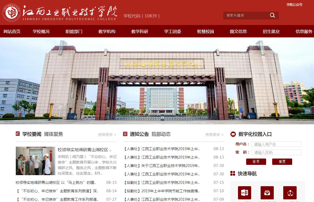 江西工业职业技术学院是1999年经教育部批准成立的江西省首批独立设置的公办全日制综合性高等职业院校,是江西省示范性高等职业院校。学校创办于1954年,先后经历了调整、升格、合并、更名等发展阶段,至今已有60多年的办学历史,在江西省乃至全国高职教育整体布局中占有重要的位置。学校座落在“物华天宝、人杰地灵”的江南历史文化名城——南昌,现有三个校区(瑶湖校区、青山湖校区、高新校区),占地面积46万平方米。各校区生活服务与运动设施配套齐全,尤其是瑶湖校区位于南昌市昌东高校园区内,毗邻风景秀丽的艾溪湖和瑶湖,环境优美、空气清新、交通便利,是莘莘学子学习与生活的理想场所。学校师资力量强大,队伍结构合理,教学经验丰富。学校现有教职工总数849人,专任教师552人中,教授45名,副高及以上职称的教师占26.3%;具有研究生学历或硕士以上学位的教师占44.2%;专任教师中具有双师素质的占66.5%。学校现拥有2支省级优秀教学团队(纺织专业、机电专业),1名省级学科带头人,3名省级教学名师和13名省级中青年骨干教师;近3年,学校承担了26项省级课题,建有5门省级精品课程和30门院级网络课程。学校设有轻纺服装学院、机电工程学院、电子与信息工程学院、建筑与艺术学院、经济管理学院等二级学院。各类在校生万余人,设置专业45个,其中染整技术、服装设计、纺织品装饰艺术设计、计算机网络技术、商务英语等5个专业为江西省高职高专示范性专业;染整技术和现代纺织技术2个专业为江西省高校特色专业;机电一体化、软件技术、食品营养与检测、服装设计等4个专业为省级高职示范重点建设专业,数控技术、会计电算化、电子商务、物流管理、纺织品检验与贸易、室内艺术设计等12个专业为院级教学改革专业。近几年,我校先后有近20个专业与长珠闽地区大型企业开设了校企合作、产教融合特色班,共同培养符合企业用人需求的实用性技能人才。学校固定资产总值5.318亿元;教学仪器设备总值8582.96万元,生均值为7850.87元;图书馆拥有73.44万册各类藏书及6144GB电子图书,生均67册。建有校内实验实训场所131个,并与各类大型企业共建111个校外实训基地。设有2项中央财政支持的建设项目,2个江西省人才培养模式创新实验区,2个专业技能实训中心,1个江西省综合培训基地。学校设有国家职业技能鉴定所和江西省纺织服装鞋帽研究所。近年来,学校坚持高等职业教育办学方向,办学水平逐年攀升,人才培养质量显著提高,取得了优异成绩。先后被授予“江西省职业教育先进单位”、“江西省普通高校毕业生就业工作先进集体”、“江西省高校安全稳定工作先进单位”、“南昌市精神文明单位”等30多项省、市、厅级荣誉称号。涌现出世界名模、亚洲皇后李冰、江西卫视都市频道主持人亚芝等许多优秀毕业生,许多在校学生在省内外各级各类竞赛活动中获得优异成绩,充分展现出我校学子的职业技能风采,彰显出学校的办学特色,产生了较好的社会影响力。学校全面贯彻党的教育方针,坚持以习近平新时代中国特色社会主义思想为指导,以立德树人为根本,以服务发展为宗旨,以促进就业为导向的办学指导思想;遵循“秉承传统、立足行业、内涵发展、彰显特色”的办学理念,践行“经纬有序、德技双馨”的校训,致力培养适应各行业一线需要的、实践能力强、具有良好职业道德的高素质技术技能型人才,力争使学校成为“轻纺人才的摇篮、职业培训的中心、技术服务的基地”,为加快我省高等职业教育发展发挥引领作用。