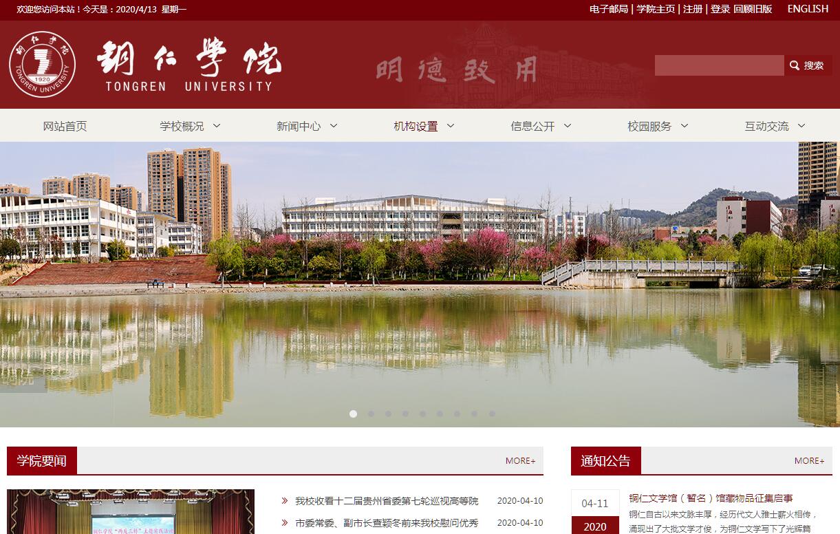 铜仁学院坐落于“中国西部名城”——贵州省铜仁市,其办学历史可追溯至1920年美国基督教会创办的明德学校(1920-1951)。此后历经贵州省铜仁师范学校(1951-1978)、铜仁师范专科学校(1978-1992)、铜仁师范高等专科学校(1992-2006)等历史时期。其间,铜仁地区教育学院(原铜仁地区进修学校)、贵州省铜仁民族师范(原铜仁县师范)、铜仁地区林业教育培训中心以及铜仁地区苗圃场先后并入。学校于2006年升格为本科院校,2013年顺利通过了本科教学工作合格评估,2015年整体搬迁至川硐教育园区,实现了“一校一址”办学目标,并跻身于贵州省首批向应用型转型发展省级试点高校行列。2016年,增补为贵州省“十二五”硕士学位授予立项建设单位,并跻身全国100所应用型高校项目建设学校行列。近年来,学校先后被评为全国及省级文明单位、全国民族团结进步模范单位、全国大中专学生“三下乡”社会实践活动先进单位等。学校占地面积910余亩,建筑面积33.9万平方米。实验实训中心5万平方米,教学科研仪器设备总值1.5亿元。馆藏纸质图书92万册,电子图书283.3万册。设有10个专业学院,1个研究生院,1个继续教育学院,1个特色学院(乌江学院)。学校现有全日制本科生9525人,专科生871人,预科生525人,留学生405人;现有教职工967人,其中,专任教师560人,具有博士学位教师114人,硕士学位教师392人,教授(含二级、三级教授)106人,副教授318人,“双师双能型”教师320人。教师中获国务院特殊津贴专家2人,省级千创人才1人,国家863计划首席专家1人,贵州省核心专家1人,省管专家2人,贵州省高校哲学社会科学学术带头人5人,贵州省优秀青年科技人才1人,贵州省十百千人才9人,省高校创新团队10个,铜仁市市管专家10人,省内外高校专、兼职硕士生导师52人。学校建有省级区域一流建设培育学科1个,省级重点学科4个,省级重点支持学科2个,院士工作站及分站2个,博士后科研工作站1个,省级大学科技园1个,省级2011协同创新中心1个,省高校特色重点实验室3个,省高校工程中心3个,省高校产学研基地5个,省高校人文社科基地1个,省高校科技创新团队10个,国家民委民族理论政策研究基地1个,省人文示范基地1个,省哲学社会科学十大创新团队2个,省级实验教学示范中心1个,省级专业技术基地1个,省民族传统体育训练基地1个,市人文社科示范基地1个。建有梵净民族文化研究院、梵净生态研究院、梵净教育研究院等校级科研机构5个。近年来,学校承担国家级课题39项,省部级课题320项,委托课题280项,获得科研经费1.24亿元。公开发表核心以上论文1064篇,其中在SCI、SSCI、CSSCI上发表论文279篇。获得授权专利392项,出版专著126部。2016年、2017年获国家自然科学基金项目立项13项,资助总经费347万元,连续两年排名全省地方本科高校前列。2016年有1项成果获全国教育科学研究优秀成果三等奖,实现了我校国家级科研成果奖零的突破;我校在近三届省教育科学研究优秀成果奖评选共有10项成果获奖;2017年又突破了1项省科技进步奖零纪录;在十一届省哲学社会科学优秀成果奖评选中有11项成果获奖,名列市州高校第一,超过铜仁市历年奖项之和;在市科学技术奖和市哲学社会科学奖评选,有58项成果获奖,其中一等奖有10项。学校坚持开放办学发展思路,注重国际交流合作。先后与200余家行业、企业签署了产学研合作协议,形成了“校政企协同、产学研一体”的新型利益共同体,先后与50余所国(境)外大学和教育机构实施多元化合作交流。特别是与柬埔寨共建的“柬埔寨本科人才培养基地”,成为了我省与柬埔寨国家教育部建立合作伙伴关系的唯一高校。时至今日,学校已形成了个性丰盈、特色鲜明的“明德·致用”“铜仁需求·国家标准”“依托梵净·服务发展”“苦心励志·追求卓越”四大核心办学理念,人才培养质量不断跃升,先后涌现出荣获第三届全国道德模范称号和中国五四青年奖章的学生张蕾、国家红十字会“爱心大使”和贵州省“感动校园十大人物”称号的教师李怡净以及“全国优秀学生干部”王时江等一大批优秀师生,为推动地方经济社会发展做出了巨大贡献。潮平两岸阔,风正一帆悬。当前,铜仁学院正根据“上水平,出特色”的总体要求,按照“山”字型人才培养模式,坚定不移地走“小而精”的内涵发展之路,昂首阔步朝着全面建成特色鲜明的高水平应用型高校劈波斩浪,奋勇前行!