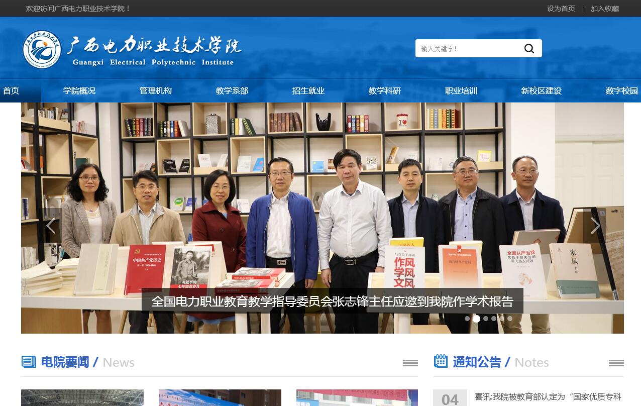 广西电力职业技术学院始建于1979年,原由国家电力工业部举办、广西电网公司主管,现为广西壮族自治区教育厅直属的广西首批特色高校。学院还是全国首批职业院校数字校园实验校、全国现代学徒制试点院校、教育部工业机器人领域职业教育合作项目院校和广西应用型本科人才产教融合协同培养试点院校,是清华大学在广西合作开展混合式教学改革的首个高职院校,是上海电力大学在华南地区对口支援进行全方位战略合作的首个高职院校。学院本部校区位于南宁市高新区核心地带,毗邻广西最高学府——广西大学;一里之外,欧式风情小镇——南宁·中关村双创示范基地,习近平总书记考察过的地方,是我们的创新课堂。建设中的千亩新校区位于国家级新区——五象新区的核心地段,这里未来将是广西政治、经济、文化的中心。南宁国际园博园是学院美丽的后花园,气势恢宏的广西文化艺术中心、活力四射的体育中心等环校而立。两个校区均有地铁通达,在这里,老师、同学们真正享受离繁华不远、离自然很近的惬意学习生活。学院设置有电力工程系、能源动力与发电工程系、电子与信息工程系等10个教学机构,开设48个专业,建成了以电力技术专业群、能源与发电技术专业群、智能制造技术专业群、新一代信息技术专业群为主体的专业群体系,是广西乃至南方电网五省区中唯一面向能源电力类专业全覆盖的电力类高职院校。全日制高职在校生10200人。学院已成为全国办学规模最大、实力较强、办学前景好的电力类高职院校。学院坚持“校企合作·协同育人”理念,大力实施学院对接地方产业、专业对接行业企业、教师对接职业岗位的“三层对接”教改工程,并加大力度推进对接信息化、智能化和大数据,形成“3+1”四层对接模式,不断推动校企合作、产教融合向纵深发展。学院是中国电力企业联合会在广西颁发电力行业火电、变电仿真培训基地资质的唯一高职院校,成立了以电力行业企业为主体的校企合作发展理事会,南方电网、北京中关村软件园、北京华晟经世信息技术有限公司、南宁轨道交通集团等数十家著名企业都是学院的战略合作伙伴,华为、清华紫光、中兴通讯、新道科技等成为学院推进“互联网+中国制造2025”产教融合计划的骨干力量。学院坚持开放办学,是全球知名跨国公司——罗克韦尔自动化公司“与中国大学共勉”项目广西唯一合作高校。学院与德国、美国、英国、泰国、新加坡等国家以及香港、台湾等地区的高等院校、教育机构建立了学术交流、教育教学、科学研究等合作关系,并通过学生交换、学者互访研修、专业共建等各种实质性的交流合作项目互通有无,培养国际化人才。2016年开始每学期派出10-15名优秀学生赴台湾相关高校开展交流学习,2017年开始每年暑期选派15名优秀学生赴泰国相关短期游学,并派出带队教师开展学生管理和交流合作工作。同时,学院依托能源电力特色与区内外大型能源电力类企业保持着良好的合作关系,并通过这些企业将学院的影响延伸到了“一带一路”沿线国家,派出电力类专业教师为越南、泰国、牙买加等东盟国家的各类型电厂提供技术服务,努力拓展社会服务领域,提高社会贡献力。近年来,学院毕业生初次就业率均在92%以上,连续11年荣获“全区高校毕业生就业创业工作突出单位”称号;连续7年荣获广西电网校园招聘录取人数第一名,2017年更是获得了南方电网校园招聘全国第一的好成绩。目前,学院正朝着电力特色鲜明、全国同类院校一流的地方应用型高水平大学的发展目标奋进!
