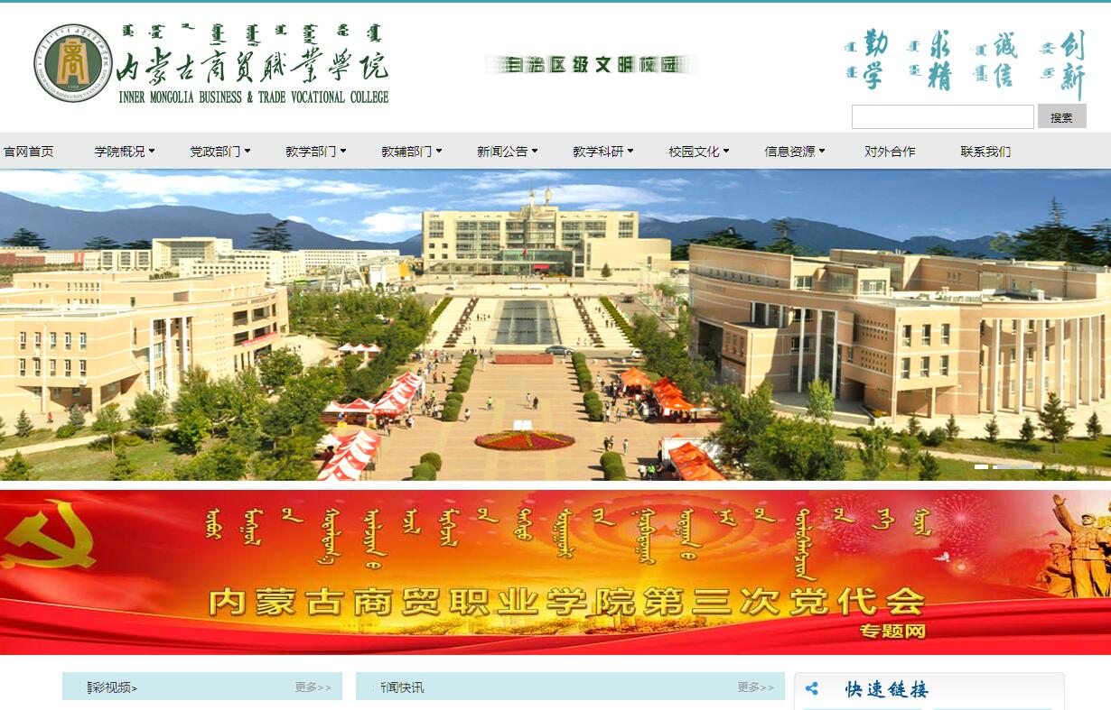 内蒙古商贸职业学院创建于1952年,是教育部批准独立设置,隶属于自治区教育厅的一所学科类别齐全、面向区内外招生的公办全日制普通高等职业院校,是自治区示范性高职院校建设单位、全国100所现代学徒制试点学校之一。学院位于塞外名城呼和浩特市青山脚下的大学城,占地916亩,建筑面积19万平方米。优美的校园环境,怡人的周边景色,便利的交通设施,为师生提供优雅、舒适、和谐、平安的学习生活环境。学院拥有极具影响力和实践教学经验的教学专家团队、规范的教育教学管理体系。学院教学设施齐全,多媒体教室,标准化实习实训中心、校外实训基地、体育场馆、文体馆、学生创业园等。学院还设有职业技能鉴定所、普通话测试站。学院图书馆馆藏纸质图书32.63万册,电子图书46万册。学院现设七系四部:商务系、经营管理系、会计系、旅游系、信息技术系、艺术设计系、食品工程系,国际教育教学部、社科基础教学部、体育教学部和中职教育教学部,开设10大类专业群44个专业。学院现有教职工617人,其中专任教师375人,拥有自治区教学团队6个,在校生万余人。学院设有国家奖学金、国家励志奖学金、国家助学金、企业奖学金、单项奖学金,并设有充足的勤工助学岗位和多种补贴等学生奖励资助渠道。学院坚持以立德树人为根本,以服务自治区经济社会发展为宗旨,以促进就业为导向,按照“重点建设、示范引领、特色发展”的原则,实施“优势做强、特色做精”的品牌战略,坚持“产教融合、校企合作、文化育人”的办学理念,构建“岗课证赛”融通、“校企交融,校企共赢、文化相融”的人才培养模式,培养高素质劳动者和技术技能人才。学院公众形象和社会信誉深受百姓好评。