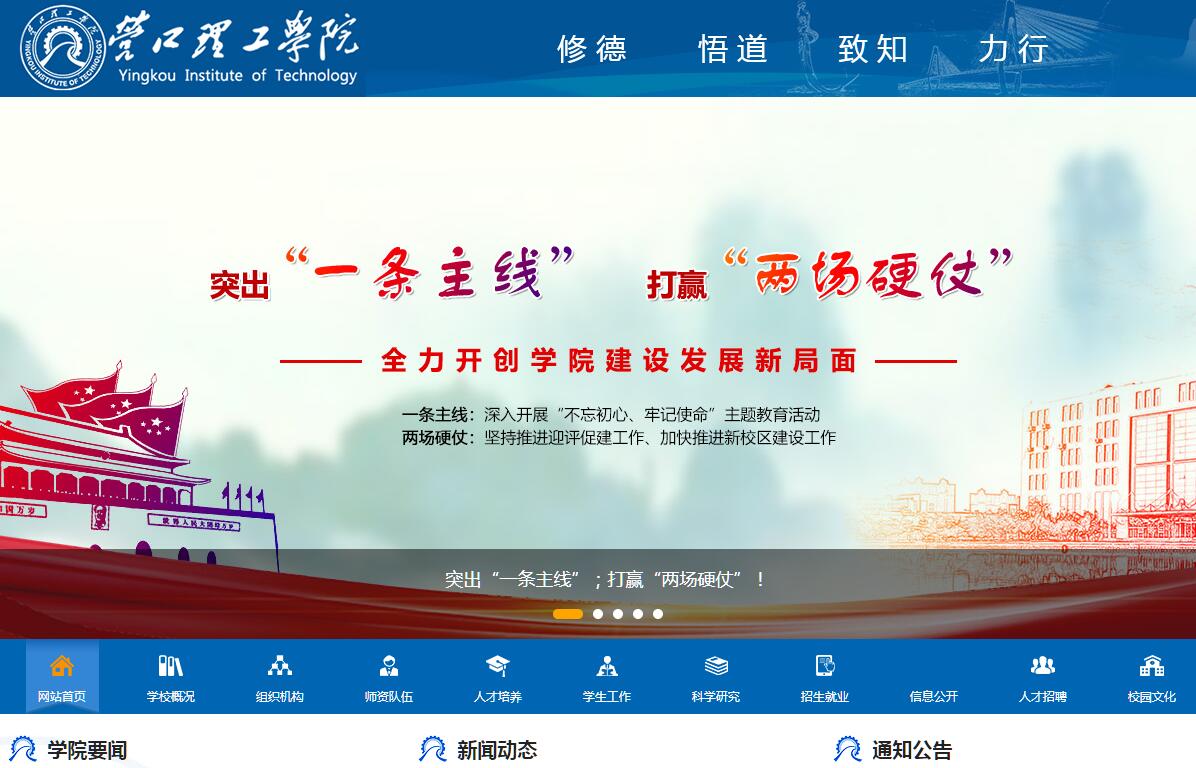 营口理工学院是经教育部批准成立的公办全日制普通本科高等院校。学校是在营口大学园基础上设置的本科院校。2009年1月,经辽宁省人民政府批准,营口市人民政府与东北财经大学、辽宁科技大学、辽宁石油化工大学合作建设营口大学园。历经四年合作办学,营口大学园各项办学条件达到了教育部规定设置本科院校的基本标准和要求。2013年4月,教育部批准建立营口理工学院。学校为教育部“产教融合创新实验项目”5所基地学校之一,首批辽宁省全面向应用型转变的10所试点院校之一,辽宁省首个加入全国应用技术联盟本科院校。学校办学目标是建设“高水平、有特色”应用型大学。学科专业定位是,紧密围绕适应区域经济社会发展需求,构建以工学为主,兼有理学、管理学、经济学等多学科及相关专业协调发展的学科专业体系。人才培养定位是,结合学生个性发展需要,通过实施学校规定的、学生自选的教育教学活动,将学生培养成为具有扎实理论功底、一定实践操作能力和较强创新意识的应用型、技术技能型人才。服务定位是,围绕辽宁“一带五基地”(全国重要的经济支撑带,具有国际竞争力的先进装备制造业基地、重大技术装备战略基地、国家新型原材料基地、现代农业生产基地和重要技术创新与研发基地)建设,充分发挥培养人才、创新科技、促进经济、服务社会、传承文明的职能,全面提高学校服务区域经济社会发展和创新驱动发展的能力。学校不断优化专业结构,提高品牌、特色专业建设水平。学校重点建设服务临港产业发展、支撑区域主导产业和特色产业发展、战略性新兴产业发展需求的专业和专业群,努力构建机械、材料、化工、自动化、物流等专业群,支撑物流和冶金、石化、装备制造、纺织服装、镁质材料、新型建材等主导产业发展。目前开设20个本科专业,包括机械设计制造及其自动化、材料成型及控制工程、机械工艺技术、新能源科学与工程、电气工程及其自动化、自动化、应用化学、材料科学与工程、无机非金属材料工程、化学工程与工艺、环境科学与工程、能源与化学工程、物流管理、金融工程、物流工程、智能科学与技术、化学工程与工业生物工程、新能源材料与器件、焊接技术与工程、机械电子工程。化学工程与工艺专业被评为辽宁省普通本科高等学校向应用型转变示范专业、省级创新创业教育改革试点专业项目。学校深入推进人才培养模式改革,全面提升人才培养质量。加大实践教学力度,加强实训、实习教育基地建设,加强创新创业教育,建立政产学研合作育人机制,大力培养应用型、技术技能型人才。大学生创新创业基地被评为省级大学生创业孵化示范基地。现有学生4465人。学生在各级各类竞赛中取得可喜成绩,获得2016中国机器人大赛旅游探险项目一等奖,2017中国机器人大赛自动分拣机器人项目一等奖、旅游机器人项目二等奖、蓝桥杯大赛一等奖、全国应用型人才综合技能大赛一等奖、全国“TRIZ杯”大学生创新方法大赛二等奖等多个大奖。学校坚持培养与引进并重,致力打造应用型师资队伍。落实高层次人才引进计划和校企合作教师培养的“双百计划”,实施青年教师培养“双导师制”,鼓励教师下企业实践,逐步建立起“双师双能型”师资队伍建设机制。从高校、行业企业引进专家教授、优秀专业技术人才和高技能人才,建立了一支高素质的特聘和兼职教师队伍。现有教职员343,其中专任教师235人,副高级以上教师占专任教师总数的43.8%;硕士及以上学位教师占专任教师总数的92.8%。学校促进应用研究和技术创新,提高服务经济社会发展能力。坚持以服务于应用型人才培养、服务于行业企业需求、服务于地方经济社会发展需要为宗旨,深化科研体制改革,促进科研平台建设,鼓励加强应用研究,促进科技成果转化,积极参与地方决策咨询,扩大社会服务领域,拓展社会合作内容。成立了辽宁省应用技术教育研究中心等三大智库;牵头组建了辽宁省临港经济校企联盟;成立了先进制造技术与装备科技创新团队、新型功能材料的研究与应用创新团队;组建了营口市区域经济与社会发展研究会等8个政产学研合作的协同创新中心;成立了分析测试中心,获得辽宁省质量技术监督局颁发的检验检测机构资质认定证书。目前,教师及科研人员取得科研成果1000余项。其中,申报知识产权36项,省政府技术发明一等奖1项。学校加强基础设施建设,教学条件不断完善。现占地面积达75.7万平方米,建筑面积25.2万平方米。现有固定资产13亿元,有85个实验(实训)室、1个工程训练中心和42个校外实习、实训基地。化学化工实验教学中心、机械工程实验教学中心获批省级实验教学示范中心项目。与营创三征精细化工有限公司、营口金辰机械股份有限公司、辽宁富琳实业集团有限公司、营口锻压机床有限责任公司共建的大学生校外实践教育基地先后被省教育厅评为“省级大学生校外实践教育基地”。 图书馆现有纸质文献58.98万册,纸质期刊1246种,电子文献14.9万册。拥有中国知网等各类数据库资源10个,试用数据库资源20余个。营口理工学院将以习近平新时代中国特色社会主义思想为指导,全面贯彻落实党的十九大精神,紧紧围绕统筹推进“五位一体”总体布局和协调推进“四个全面”战略布局,牢固树立新的发展理念,全面贯