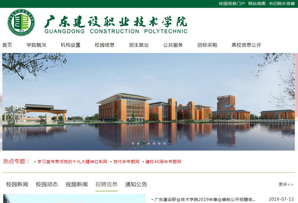 广东建设职业技术学院是省内唯一一所公办建筑类高职院,是建筑业高素质技术技能人才培养的主要基地和 “现代鲁班”的摇篮。办学39年来,学院扎根南粤大地,服务“一带一路”,培养培训了15万多名高素质技术技能型人才,为广东省建设行业与经济社会发展做出了积极贡献。学院前身是1979年成立的广东省建筑工程技工学校;1986年成立的广东省建筑工程学校;2001年5月经广东省人民政府批准、教育部备案,升格为高职学院。2006年4月,学院由广东省建筑工程集团有限公司主管正式划转广东省教育厅管理。目前有三个校区,占地面积800亩,全日制高职在校生8400多人。座落在省职教基地的清远新校区正在建设中,今年秋季交付使用。建成后的清远新校区将成为建筑教科书似的文化校园、绿色校园、智慧校园。学院立足“建设行业”,探索并建构了特色鲜明的“依托行业,工学结合”的人才培养模式。充分发挥依托建筑行业企业的优势,形成了“校企互动”的“四合作四共”模式(合作办学、合作育人、合作就业、合作发展)(人才共育、过程共管、成果共享、责任共担)。我院与300多家行业企业保持紧密合作关系,并联合成立了广东省建设职业教育集团,形成了有效的校企合作办学体制机制,在现代学徒制试点、职工培训、技术研发等方面广泛深入地开展合作。我院是全国第二批现代学徒制试点单位。现有6个专业开展现代学徒制自主招生,3个专业为全国试点专业。与企业共建了3个现代学徒制特色学院——广建中天学院、广建兴业学院、广建斯维尔学院。“岭南建筑技术职业教育产教创新基地”项目被列入国家“十三五”职业教育产教融合发展工程规划,项目建成后将成为我省乃至全国集人才培养培训、科技研发、服务产业为一体的建筑类产教融合国家级创新示范基地。全面实施“教学质量工程”,专业建设、课程建设取得成效。依托建筑行业,主动服务广东省战略性新兴性产业和现代服务产业,构建了以建筑类专业为主体,机电、市政、环保、艺术设计、电子信息、财经等专业协调发展的专业布局。不断深化人才培养模式改革,实施现代学徒制试点、“3+2”中高职衔接试点、高职与本科三二分段培养人才试点、中高职一体化改革,开展基于工作过程的项目化课程设计,推动精准育人。现有招生专业32个,涉及8个高职专业大类,14个二级门类,是广东省内开设建筑类专业门类最全的高等职业院校。建有中央财政支持建设专业2个,省级示范性专业1个,省级重点专业5个,省级一类品牌专业1个,省级二类品牌专业3个。省级精品资源共享课程9门,国家教指委精品课程1门,省级协同育人基地1个,中央财政支持的实训基地建设项目2个,省级财政支持的实训基地建设项目3个,省级大学生校外实践教学基地6项。大力实施强师工程,制订了《学院人才引进与管理办法》,重点引进高层次人才。积极培养高水平专业带头人和专业骨干教师,带动专业教师整体素质的提高。现有专任教师320人,高级职称的108名,研究生学历或学位的190名(其中博士18名),具有“双师”素质的教师达到80%,省级教学团队3个,全国技术能手1名,同时聘请了200多名来自生产一线有熟练技能的技术人员作为兼职教师。聘请了6位广东省首届传统建筑名匠为我院客座教授,建立了大师工作室,传承和弘扬建筑传统技艺。近年来,教师教科研水平不断提升。现有国家级、省级自然科学基金项目各1项、各类纵向科技项目22项、省级以上教科研项目48项、各级教指委项目40项,其它在研科研项目60 项。获省教育教学成果一等奖1项、二等奖1项,省级科技进步二等奖1项。“一带一路”争当排头兵国际学院在高职学院率先成立,为服务“一带一路”建设搭建了平台,有力推动了我院培养具有国际视野、国际标准、国际资质的高素质技术技能型人才。我院被教育部确定为职业教育服务“一带一路”建设首批学校,与中国有色金属矿业集团共同在赞比亚开展职业教育项目,圆满完成了架子工、焊工培训工作,为当地培养急需的高素质技术技能人才。试点工作得到教育部、中国有色金属矿业集团的表扬。我院还与澳大利亚、新西兰、英国、美国、德国、韩国、波兰、芬兰、中国台湾地区等境外高等院校和教育机构开展了高层互访、教师培训、师生交流、合作办学等合作项目。学院始终把立德树人作为根本任务,重视大学生的思想政治教育和素质教育,注重培养学生的实践能力、创造能力,促使学生德智体美多方面健康协调发展。三年来,学生在各类科技学术、文化艺术大赛中,获得150多项省级以上奖励。在全国职业院校技能大赛高职组建筑工程识图赛项中获得团体二等奖。新生入学报到率及毕业生就业率均保持良好的发展态势。近年来,录取新生报到率均超过80%。毕业生总就业率均在98%以上,高于全省平均就业率。获得“广东省高校毕业生就业先进集体”称号。我院是我省建筑行业依托的主要培训基地,是唯一授权能在全省开展建筑现场专业人员培训的机构。建校以来,为企业法定代表人、一级项目经理、下岗职工、进城务工人员等超过15万人提供了培训服务。与香港发展局和建造业议会合作开展在港建筑从业人员职业技能培训和岗前训练。学院社会影响力不断增强。现为全国现代学徒制工作指导委员会主任委员单位;广东