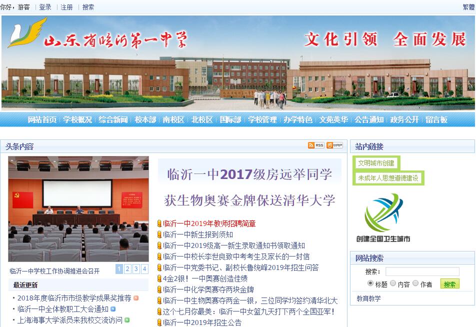 山东省临沂第一中学是一所具有111年历史的老校,现分为校本部、南校区、北校区三个校区,共有150个教学班,在校学生8000多人,五百余名教职工。学校于清光绪二十九年(1903年)始建,沂州府于考棚成立沂州中学堂。百年沧桑,几易其名,先后称山东省第十中学校、山东省立五中学校、山东省立第五中学、山东省临沂中学、临沂红旗中学。当年山东省立第五中学规章完善,事业日上,堪称鲁南一颗教育明珠。全面抗战爆发,学校撤往大后方,部分师生奔赴延安。新中国成立后恢复初中招生,暂设临沂师范学校内,时称中学部,翌年春迁回考棚校址。1953年新校落成,师生迁入,初高中同时招生,仍沿用山东省临沂中学校名。一九五六年确定为省属重点,改称山东省临沂第一中学。1960年国务院授予“全国教育先进单位”称号。十一届三中全会之后,教育之春天才真正到来,1979年重被确认为省重点中学。1988年始实施素质教育,闻名遐迩,1993年荣膺首批省级规范化学校。1999年现任领导班子就职,强化品牌优势,创新办学理念。“智圆行方,厚积薄发”之校训得以确立,“科学民主、勤奋果敢、致远包容、正气大气”之精神发扬光大。2003年的百年校庆,吹响了新世纪扬帆远航的号角,百年老校重新焕发了青春,2013年,临沂一中迎来她的一百一十年华诞。2014年9月,临沂一中北校区建成使用,“一校三区”的宏伟蓝图变成现实。近年来,素质教育和新课程理念逐步深入人心,教育正在发生着深刻变化。面对新的形势,学校认识到又面临着新一轮发展的战略机遇期,机会难得,必须紧紧抓住,抢占新课程改革和素质教育的制高点。让课程内涵更丰富,让育人理念更前沿,让引领人的文化更厚重,让学生的发展更多元,用更先进、更贴近教育本质的教育理念,用更丰富、更多元的教学和德育课程内容引领学生的全面发展,站在新起点,实现新跨越,创建“优质、高效、生态名校”,这是我们不懈的追求。在111年的风风雨雨里,在一代代一中人和社会各界的共同努力下,一中已从沂蒙人民熟悉的百年老校,到如今享誉全省乃至全国的百年名校。历经百年沧桑,文化传承深厚。代代园丁,潜心执教,莘莘学子,才俊辈出。一代代临沂一中人一定会坚定不移地向着我们创“优质、高效、生态名校”的目标,在迈向更大辉煌的道路上继续阔步行进!