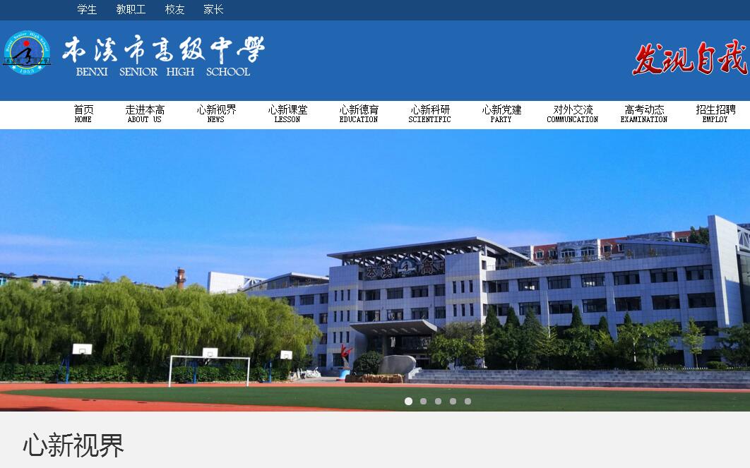 本溪市高级中学始建于1953年,是辽宁省首批重点高中,辽宁省首批示范性普通高中。六十三年来,本溪高中不断发展壮大,办学水平大幅度提高,为高校输送了数以万计的优秀学子,为国家培养了无数栋梁之才。本溪高中现两地办学,其中主校区占地面积71510平方米,建筑面积29500平方米,建有教学楼2栋,实验楼1栋,多媒体微机室4个,资料室阅读资料200余种,图书室藏书15万册。拥有体育馆、乒乓球馆、形体训练馆、艺术中心、物理化学生物研究实验区。随着办学现代化水平、信息化程度的提高,所有教室均为多媒体电教室。北校区占地面积104900平方米,建筑面积51900平方米,有教学楼、实验楼、图书馆、体育馆、自习楼、服务中心各一栋,学生公寓3栋,教师公寓1栋。北校区校园环境优美,生活设施齐备,已成为师生学习和生活的温馨家园。本溪高中拥有一支师德高尚、业务精良的教师队伍。学校既有全国五一劳动奖章获得者、全国优秀教师、全国模范教师、全国骨干教师,也有辽宁省特级教师,省优秀教师、省优秀教育工作者、省优秀党员,省五一奖章获得者、省优秀班主任等,还有本溪市特等劳动模范、市科技拔尖人才、十大杰出青年、十佳青年教师、市学科带头人、市优秀教师和师德标兵……他们是学校发展的中流砥柱。学校有特级教师6人,高级教师106人,博士研究生1人,硕士研究生92人。世界著名教育家苏霍姆林斯基说:“育人先育心。山城人从本溪高中“谦恭 卓越”的校训里,在一声声“纵有千难与万险,本高铁流永向前”的呐喊中,会深深地感受到本高人身上一种最本质、最质朴的精神——那就是“心新”教育情怀,即用心,诚心,爱心、正心;迎新、纳新、持新、创新……于是,本高提出了“心新教育”的思想。心新教育是一趟“从心起程,全新绽放”的人生美妙旅程。在这样的旅程中我们培养本高人“深度、自主的学养”,“孝诚、仁爱的心性”,“包容、担当的情怀”以培养“谦谦如玉、铮铮若铁的品格”。努力培养第一等学养、第一等心性、第一等情怀的第一等人才。做有故事的教育,办有温度的学校。当有智慧的教师,育有情怀的学生,让本溪高中成为现代教育的示范学校、世界名校的人才基地,这是本高人办学高远的追求。学校先后被清华大学、北京大学、上海交通大学、南京大学、武汉大学、中国人民大学等四十多所重点大学授予优秀生源基地称号,获得全国基础教育名校、全国最具内涵特色学校、全国精神文明建设先进单位、中国百强中学、全省普通高中课程改革先进集体、辽宁省模范学校、辽宁省青少年科技教育示范学校、辽宁省首届科研兴校百强学校、辽宁十大社会名片等荣誉称号60余项。2011年由美国权威机构发布的中国高中名校排行榜前50名的排榜中,本溪高中位列第25位。2014年中国百强高中排行榜位列第34位,省内第三;2014年中国自主招生百强中学位列23位,省内第二;2015年中国百强高中排行榜位列第42位,省内第三。在备受社会瞩目的高考中,本溪高中不负众望,屡创辉煌。03年~15年的13年间,本溪高中考出了10个省状元,4个省榜眼,7个省探花。十年间,学校共有362人进入清华、北大及香港大学。尤其是2015年,在取消各种政策加分、清华北大在辽宁减招等诸多不利形势下,坚忍优秀的本高人又一次以不俗的成绩问鼎辽沈,铸诚正名。理科全省前10名占3人(分别为第2、第3、第10);文科全省前10名占3人(分别是第2、第5、第10)。全省理科690分段共17人,本溪高中占5人;680分段共88人,本溪高中占20人。共有40人考入清华北大及香港大学,文理合计有1037人过一本录取线,一本上线率达95.8%。“本”就是“从心启程”,以心为始,蕴育内生力,以恪守谦恭之心,不断发现自我、涵养自我、激励自我、提升自我。“高”就是“全新绽放”,以新为终,培养发展力,以追求卓越之行,不断直面未来、应对未来、挑战未来、赢得未来。本高因你而高,未来为你而来。让我们一起行动并见证本高人同心筑梦的磅礴力量和昂扬斗志,见证一个令人满怀期待的未来!