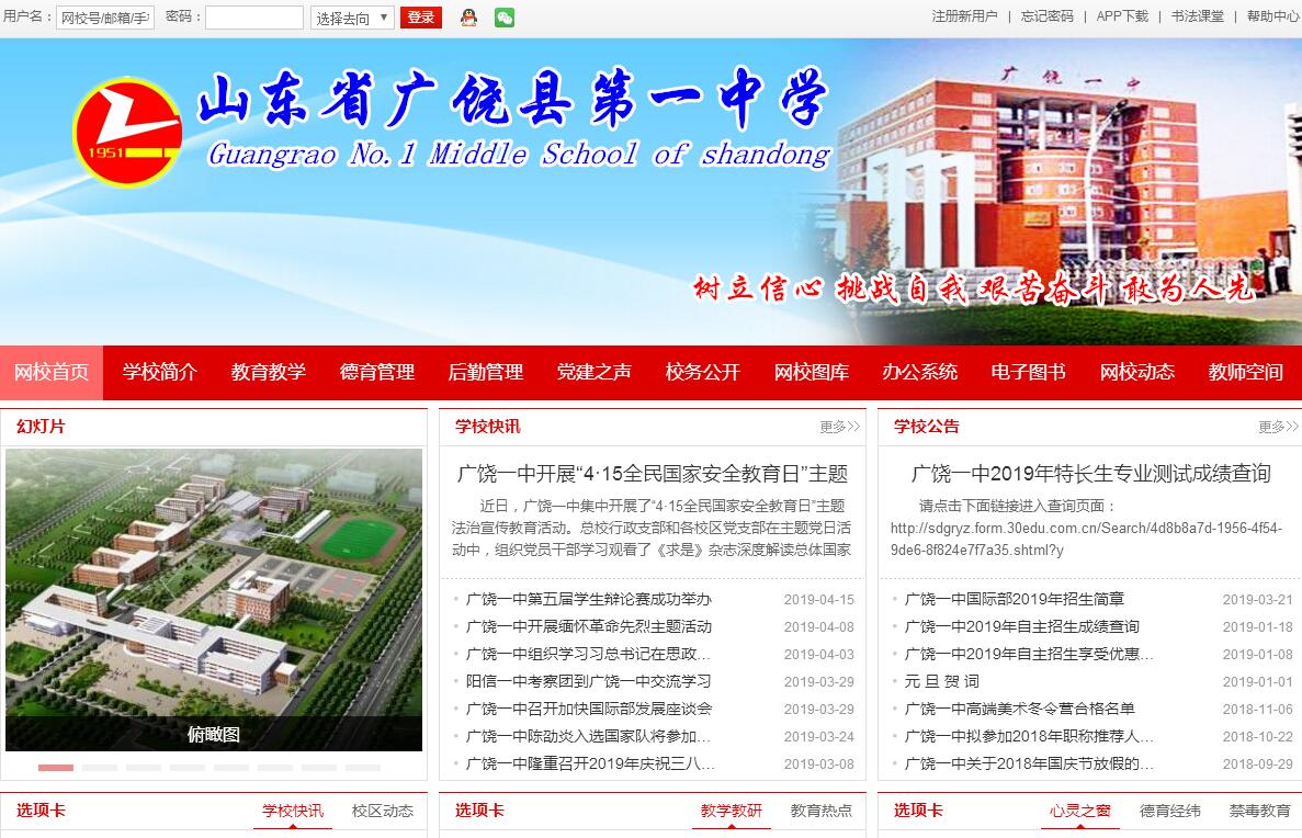 广饶县第一中学,始建于1951年9月,是一所普通高中,址处广饶县。现有3个校区和1个艺体中心。有教职工1200余人,专任教师710人,其中特级教师1人,中学高级教师127人,中学一级教师232人;有教学班172个,在校学生万余名。广饶县累计投资2.7亿元实施了县一中东校扩建工程、普通高中教育资源整合工程和县一中省规复评工程,使县一中的校容校貌、办学规模、办学条件等均发生了翻天覆地的变化。学校占地794亩,总建筑面积204175m2,有教学楼5幢、实验楼、图书楼、办公楼各3幢,体育馆1座,艺术楼2幢,学生宿舍楼16幢,学生餐厅7个。学校有微机1889台,全部接入校园网。有多媒体教室192个,微机室电子阅览室综合室13个,语音室9个。学校图书馆有藏书28万余册,并与广饶县图书馆实现了图书资源共享,使得图书可利用数量达到50万册。电教、图书、实验和艺术体育卫生等装备配套达到省规范化学校建设标准,校园数字化建设走在了全省前列。2009年12月在全市率先通过省级规范化学校复评验收。建校60年来,学校共培养毕业生4万余人。广饶一中校友足迹遍布世界各地、各行各业,成为党政领导、专家学者、拔尖人才,为家乡和学校争得了荣誉,他们是广饶一中传统与先进文化的传承者,更激励着一代代一中人奋勇向前,永争一流。学校是“全国教育教学科研先进单位”“山东省依法治校示范校”“山东省学校体育卫生国防教育工作先进集体”“山东省体育传统项目学校”“山东省艺术教育示范校”“山东省语言文字规范化示范学校”,多次获“全国高中数学联赛优胜学校”“物理奥林匹克竞赛金牌学校”“化学奥林匹克竞赛金牌学校”“生物奥林匹克竞赛优胜学校”“全国中学生地理奥赛团体优胜奖”等荣誉称号。教育质量一直在东营市列首位,连续13年被评为“东营市教学质量优胜学校”,在全省处于上游水平,奥林匹克竞赛、小语种培养更是学校的办学靓点,在全省具有竞争优势。今后,广饶一中继续在各级党委政府的坚强领导下,坚持科学发展观和以人为本思想,全面贯彻党的教育方针和政策,坚持“实施素质教育,规范办学行为,构建和谐校园,创建一流名校”的办学思路,大力实施文化立校、依法治校、人才强校、科研兴校、特色办校战略,全面提升学校办学水平和综合竞争力,真正办出让政府放心,让家长满意的齐鲁一流名校,努力建设全国教育名牌。