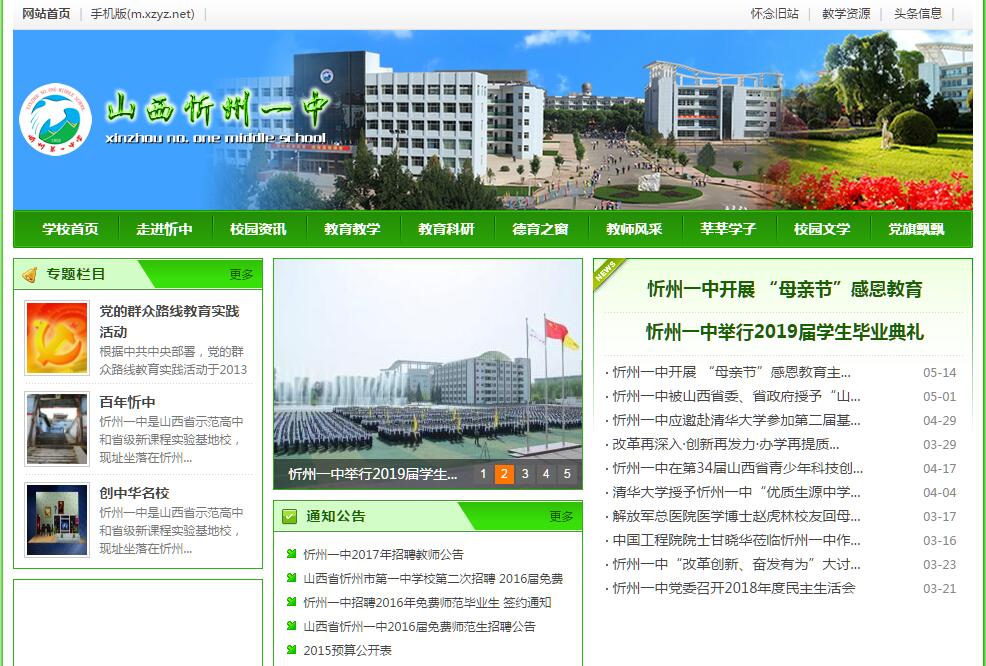 忻州一中是山西省示范高中和省级新课程实验基地校,现址坐落在忻州市和平中街,交通十分便捷。学校前身为创建于光绪二十八年(1902)的忻州新兴中学堂,迄今已有一百多年的历史。学校占地面积157亩,建筑面积106970平方米。为适应现代化教学的需要,各项设施均按国家一级学校标准建设与配备,为全面提高学生的现代素质奠定了坚实的物质基础。学校现有教学班级86个,学生5000余人,教职工347名,专任教师273名。其中有高级教师126名,特级教师6名,国家级骨干教师2名,省级学科带头人12名,省级学科骨干教师10名,省教学能手22名,市教学能手41名,省、市优秀班主任20名。学校形成了以特级教师、省级学科带头人和省级骨干教师为龙头的以省、市教学能手以及中、高级教师为主体的阵容强大的学科师资群。近几年来,学校坚持“育人为本,科学发展”的理念,进一步光大示范高中建设成果,文化立校,教改强校,教师兴校,从而有效地促进了学校的持续发展,提升了学校的办学水平。先后荣获“山西省示范高中”、“山西省德育示范学校”、“山西省特色中学”、“山西省先进集体”、“山西省文明单位”、“全国现代教育技术示范学校”、“全国绿色学校先进集体和全国课程改革先进学校”等称号。学校积极弘扬“勤、慎、敏、爱”的忻中校训和“开拓进取、科学求真、追求卓越、担当责任”的忻中精神,形成了良好的校园文化与育人氛围。学校积极推进课堂教学改革,以每个学生的发展为目标,以提高教育教学质量为宗旨,变革学生的学习方式与教师的教学方式,构建与新课程理念相适应的高效课堂,形成了具有校本特色的“大三步教学法”,全面提升了教育教学质量。忻州一中办学成绩骄人,教育教学质量享誉三晋。学校十分重视学生的社会实践能力和创新能力的培养:奥林匹克学科竞赛,每年有100多人次获省一、二等奖,多次代表山西省参加全国决赛,4次获全国一等奖;科技创新大赛, 先后有11人次参加了全国总决赛,5人次荣获国家“英特尔奖”、“明天小小科学家”一等奖,86人次获省一、二、三等奖。每年的毕业生中有多名被保送重点大学,一大批学生取得自主生资格,高考达线数和达线率连年处于全省领先水平,受到了社会、家长和学生的广泛赞誉。