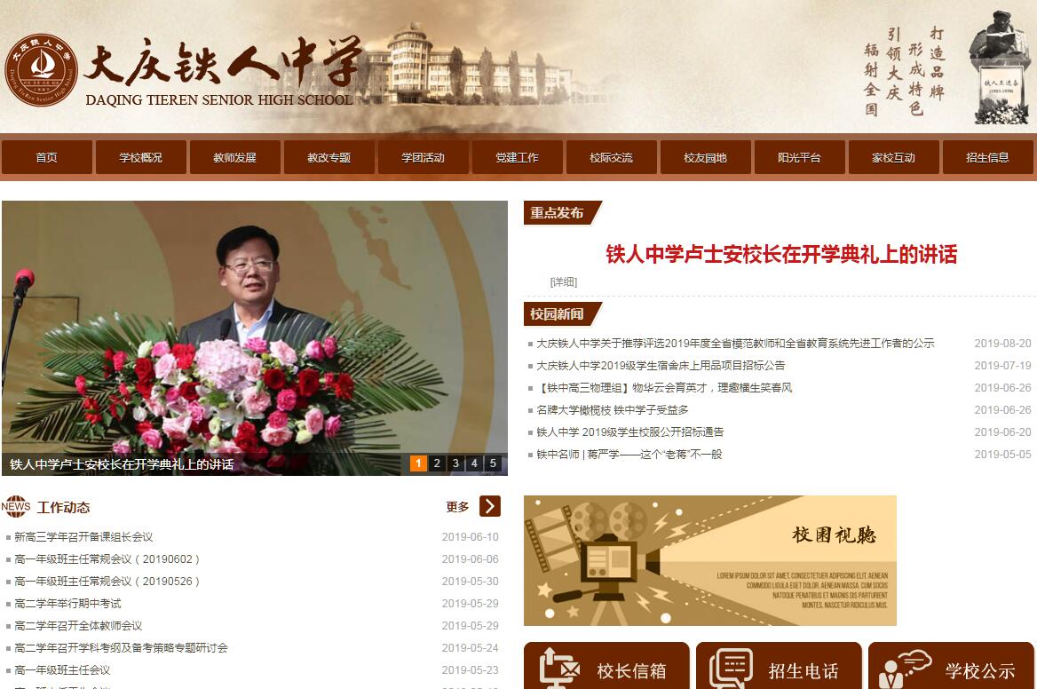 大庆铁人中学是以工人阶级的优秀代表“铁人”王进喜英雄称号命名的一所省级示范性重点高中。学校筹建于1986年,1987年正式招生,1993年晋升为黑龙江省重点中学,2000年10月被确定为省首批示范性高中,2001年被确定为省首批理科实验基地。学校占地11.7万平方米,建筑面积6.3万平方米。学校现有61个教学班,2600名学生,教职工342人,教师229人,其中特级教师3人,正高级教师2人,高级教师134人,教师本科达标率100%,全校有80多名教师已获硕士学位。铁人中学从建校至今已经走过了30年的发展路程,先后送走了28届毕业生,截止到2017年,考入清华、北大和港大学生已有395人,先后有18人获得省市文理科状元。另外,我校学科竞赛成绩也十分突出,在六大学科竞赛中共有361人次获国家级奖励,有807人次获省级奖励,各学科均摘取过全省第一名的桂冠。其中物理竞赛成绩尤为突出,在全国中学生物理竞赛史上,黑龙江省共有12人获国家级一等奖,其中有9人出自铁人中学。我校贾珣同学在第三十届国际物理奥赛中喜获银牌,为我省摘取了迄今为止唯一一块物理竞赛国际级奖牌。2016年9月,学校新一届领导班子成立,铁人中学又进入了新的奋斗发展时期,在“一年变小样,两年大变样,三年翻身仗”的口号感召下,在“打造品牌,形成特色,引领大庆,辐射全国”的工作目标指引下,全面推进“十大治校方略”和促进学生发展的“十项保障措施”。全校教职员工团结一心,众志成城,本着“立铁人中之风骨,铸教育之丰碑”的理念和追求,用超常规的工作状态,超常的思维和途径,创造性地开展工作,学校面貌焕然一新,事业发展蒸蒸日上。2017年高考,铁人中学在生源质量极为不利的情况下,取得了全面丰收。理科重本进段率73.8%,普本进段率98.2%。文科重本进段率72.6%,普本进段率98.2%,创造了学校历史新高,真正实现了低进优出,也再一次彰显了铁人中学教师的水平和实力。在2017年的中考招生中,以662.4分的录取线位居全市第二,自信地挺起了铁骨脊梁,赢得了社会的广泛赞誉。市委、市政府及市教育局充分肯定了铁人中学认真扎实的工作作风和勤奋拼搏的精神干劲,并作出了学校异址迁建的决定,实现了铁人中学多年来的美好愿望!新铁中占地面积为14.36公顷,建筑面积8.34万平方米,将坐落于大庆市明湖南侧、南一路北侧、铁人大道西侧,与铁人广场、铁人纪念馆相辉映,大庆精神铁人精神与铁中核心文化珠联璧合,与明湖相毗邻,不仅位置合理,环境优美,而且更加丰富了学校的文化内涵,为铸牢铁人中学的品牌地位、擦亮大庆基础教育的名片奠定了雄厚的基础。铁人中学先后被授予国家级德育科研先进单位、国家级科研课题先进实验校、省文明单位、省“三育人”先进集体、省安全文明单位、省德育先进单位、省“双全”先进单位、省卫生先进单位、省先进党组织、市十佳和谐校园、市师德先进集体、市“万人行风评议”先进单位、市“千人评议学校行风”先进单位等荣誉称号。铁人中学的办学质量不仅闻名全省,也享誉全国,得到了全国各高校的广泛认可,先后被评选为“全国十所风头最劲的学校”、“中国百强中学”,是北京大学生源学校、清华大学生源学校,被复旦、浙大、人大、南开、上海交大、中国科大、哈工大等全国名校授予优秀生源基地。弘毅笃行,技精业成。大庆铁人中学必将继往开来、勇于开拓,向着更加美好的明天昂扬奋进!