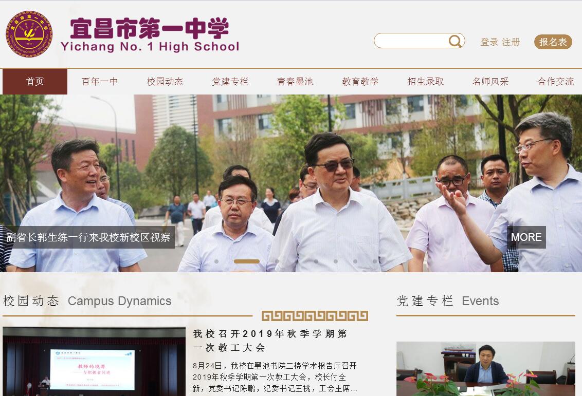 湖北省宜昌市第一中学是湖北省首批确定办好的重点中学,是湖北省最早的省级示范学校之一。学校被教育部、中国科协、环境保护部、国家发改委、财政部、国家机关事务管理局、湖北省政府等多家单位先后表彰为“全国优秀科技教育创新学校”“全国最美校园书屋”“全国后勤管理先进单位”“全国生命教育先进单位”“全国节约型公共机构示范单位”“中国西部教育顾问单位”“全国中小学党建工作科研先进单位”“省最佳文明单位”“省文明单位”“首批湖北省数字化校园示范校”“省园林式学校”“省全民国防教育先进单位”“省教育系统模范教工之家”“省语言文字规范化示范校”“湖北省最美校园书屋”“湖北省学校文化建设百强校”“市五一劳动奖状”“市名牌学校”等。千年文脉,百年一中。学校发轫于明弘治七年(1494),夷陵知州陈宣为纪念晋代文学家郭璞而建的“墨池书屋”,相传其“墨池”之名因郭璞及后来苏轼黄庭坚曾于此洗砚而得,其址在夷陵城东(今宜昌市西陵区人民路墨池巷内)。明嘉靖年间,为纪念欧阳修曾谪官夷陵,夷陵知州李一迪修建“六一书院”,并将“墨池书屋”并入其中。其后,两家几经分合,至清康熙年间,夷陵知州宗思圣“兴学于府”,实现“屋”“院”的最终合一,并称为“墨池书院”。光绪三十一年(1905年),清廷“停科举,兴学堂”,应张之洞“欲办新学,先设师范”之准奏,时任知府齐耀珊照章将“墨池书院”改立“宜昌府初级师范学堂”,学制5年,学生52人,1909年学生毕业,师范学堂即停止招生与停办。次年,即宣统二年(1910年)春,“师范学堂”正式换立“宜昌府官立中学堂”,自此宜昌第一所公立中学面世。由是,绵延数百年的“书院”正式完成了向新式学堂的转变。尔后,“宜昌府官立中学堂”十五次更名,七易其址,至1953年底以“湖北省宜昌高级中学”之名迁至校军场即老校区(西陵二路4号)现址至今,并先后立校门于德胜街、北门外正街及现西陵二路。1954年更名为“湖北省宜昌第一高级中学”,1956年改称“湖北省宜昌市第一中学”之现名。至此,宜昌最古老的书院、最早的官办中学及最早的省重点中学一脉相承,弦歌不绝。2014年,由市委市政府动议兴建宜昌一中江南新校区,其内新修墨池书院,并将学校整体建筑风格定位于“新中式”,这既象征着“千年文脉,百年一中”的历史厚重,更彰显着“一中人”的文化自觉与文化自信。宜昌一中江南新校区于2017年9月1日正式投入使用,学校现有新、老两个校区,共计59个教学班,包括“潘垣创新班”“欧阳修人文班”“阳光班”“中新实验班”“剑桥班”等多个特色班,师生3600余人。新校区占地324亩,老校区占地89亩,总建筑面积13万余平方米,总投资约6.2亿元。未来一年内,学校将实现72个教学班、在校学生3600人、在职教师350人的办学规模。学校贯彻“全面贯彻教育方针,全面实施素质教育,全面提高教育质量”的办学追求,坚持“自我教育、终身发展”的办学理念,将“家国情怀、自主发展”作为育人目标,建校百余年来,学校培养输送了3万多名优秀毕业生,涌现了中国科学院院士、青岛海洋大学教授文圣常,中国工程院院士、华中科技大学教授潘垣,中国科学院大学副校长、中国科学院院士徐涛,南部战区副政委岳世鑫中将和陆志宙少将、张孝成少将等三名将军,前盛大互动娱乐有限公司总裁兼首席执行官谭群钊,深圳怡化电脑有限公司董事长彭彤等一大批杰出人才。自恢复高考以来,学校产生了25位市级状元,165名学子考入清华北大;近5年来,31名学生获得数、理、化、生、信息奥赛全国一、二、三等奖;连续三年获得全市高考质量一等奖第一名。学校师资力量雄厚,有湖北名师工作室主持人1名,湖北名师2人,在岗特级教师4人,省专贴专家1人,中学正高职教师6人,省级骨干教师3人,宜昌名师工作室主持人3人,宜昌名师5人,市级学科带头人32人,中学高级教师152人。近五年,教师中16人次获全国各类教学竞赛一等奖,55人次荣获全省优质课竞赛一等奖;近三年来,教师获得“一师一优课”部级优课18人次。现任校长付全新,教育学博士,中学正高职教师,享受湖北省政府专项特殊津贴专家,湖北名师工作室主持人,湖北名师,湖北省特级教师,湖北省第一届中学化学学科教学指导委员会主任委员,宜昌市管优秀专家,宜昌市杰出校长。华中师范大学、中国地质大学(武汉)兼职硕士研究生导师。编撰有《教思之旅》《哲人哲思》《文化管理:构建生态和谐校园的必由之路》等3部学术专著;在省级或国家级核心刊物上发表论文四十多篇,逾三十万字,其中仅人大复印报刊资料就收录3篇。2014年获湖北省教科研成果奖一等奖1次。学校实施民主集中相结合的治理结构。党委会、教职工代表大会、校务委员会、处室(年级)、党支部、学术委员会、学生会等组织,共同组成学校治理结构,分别决策相应事项。党委会是学校的决策核心,领导学校一切工作;教职工代表大会是学校的监督、仲裁和最高决策机构;校务委员会负责学校的行政工作的决策、分派和执行;处室(年级)负责学校分块工作,学校按照宜昌市委编办的规定设置党委办公室、校务办公室、学工处、教务处、教科处、总务处、工会办公室、团委、年级组(三个);党支部(6个)、学术委员会、学生会等机构和组织。各治理主体之间互相
