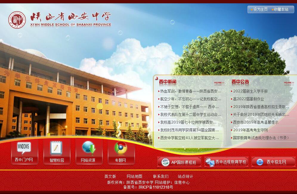 陕西省西安中学是陕西省教育厅唯一直属的中学,是陕西省首批示范高中。学校创建于1905年,时名“西安府中学堂”。113年来,学校十二次更名,六次迁址。1954年更名为“陕西省西安中学”,沿用至今,2005年迁入西安市经开区凤城五路新校址。一百多年来,学校筚路篮缕,革故鼎新,与时俱进,教学成果辉煌,文化积淀深厚,铸就名校品牌,培育英才万千。是一所有文化品位和精神感召力的学校,一所适应学生发展要求、促进教师专业成长的学校,一所教师团结友爱、乐于合作、无私奉献,学生健康快乐、全面发展、彰显个性的学校!校园占地258亩,建筑面积13.7万平方米。现有教学班93个,在校学生5000余人。校园建筑气势宏阔,布局和谐优雅,四区三场高低错落,内外层次参差有致。环境美丽雅致,犹如一幅画、一首诗,点缀经发区,形成一道靓丽的人文景观。办学条件一流,博采最新科技成果,完善教学设施,为学生创造了优质的教育资源。陕西省西安中学从诞生的初期,其教育教学革新就渗透着素质教育的思想。在漫长的办学历程中,“重视学生全面发展,坚持素质教育”始终是学校的传统和精神,为学生的一生发展起到了关键性的奠基作用。学校牢记为全省基础教育改革发挥方向性、带动性、成长性和示范性作用是西安中学的责任和使命,认真贯彻党的教育方针,在省委、省政府和省教育厅的支持和指导下,从全国教育教学改革的总趋势和学校自身的特点出发,大力实施教育教学改革,全面推进素质教育。“为学生终身发展负责”的教育理念始终伴随着这所百年名校,“教学生一天,想学生一生”的优良传统,经过历任校长的传承,已积淀成西安中学的灵魂。学校现有教职工人数350人,专职教师260人,其中高级教师96人。获正高级教师和特级教师13人,国家、省、市级劳动模范、优秀教师、先进个人等荣誉称号的103人,担任国家、省市专业学会理事长、理事52人。学校确立“教师发展第一”的思想,坚持开展师德师风教育活动,开展名师工程建设,搭建学习交流平台,促进教师专业发展,全力构建“师德高尚、业务精湛、结构合理、充满活力”的教师团队。他们用智慧和才华,用青春和生命,用博大无私的挚爱和责任,成就了无数青年学子精彩纷呈的人生梦想。多年来,学校坚持素质教育办学方向,坚持“德育为先、能力为重、全面发展”的育人思想,坚持面向全体学生,让每一位学生都能获得健康成长。优良的办学传统、浓厚的文化氛围、健全的德育体系、丰富的学生社团、浓郁的西中文化讲堂以及各类主题教育、主题活动等等,为学生搭建了良好的发展平台。学校创办了陕西省的第一所高中青年党校和第一个青年志愿者组织;成立了由著名作家、中国作家协会副主席陈忠实担任名誉社长的“二月文学社”以及合唱团、管乐队、舞蹈社、模拟联合国、模拟市政府、考古社、天文社等20多个学生社团组织;开办了由“文景讲堂”、“凤城讲坛”、“朝晖论坛”、“家教论坛”、“青春红白蓝”组成的西中文化大讲堂;健全了完善的学生文明礼仪教育、心理健康教育及自主管理教育体系;开展了丰富多彩的主题教育活动。学生的德行在感悟中得到滋养,能力在实践中得到提升,为学生未来的发展奠定了扎实的基础。西安中学在继承中创新,构建独具特色的优质教育资源,吸引全国各地兄弟学校前来学习交流。2010年学校又开办附属远程学校,通过卫星直播和网络传送的方式,使远端合作学校的教师和学生身在他乡也可同步“走进”西安中学的课堂。开办附属远程学校把西安中学的优质教育资源辐射向全省薄弱学校,为促进教育公平做着自己的努力。西安中学还是学区长学校,和学区校西安市66中和西航二中分享教育教研成果与经验,有效推进我省基础教育均衡发展。2014年,学校成功托管经开一中,承办空军在西北地区设立的唯一一个空军青少年航空教育实验班,让学校的优质教育资源充分辐射开放。百年来,学校为社会培育了大批人才。如革命烈士谢子长、雷晋笙、魏野畴;中科院院士魏江春、张殿林、王锡凡;上海市市长助理白少康、西安市副市长李婧;著名电影导演吴天明,著名书法家吴三大;著名企业家搜狐总裁张朝阳等在全省乃至全国产生了广泛而深刻的影响。近年来,学校有3700多名学生参加青年党校培训,284余名学生加入中国共产党,8名学生荣获陕西省文科、理科高考第一名,“211工程”和“985工程”等重点大学的升学率保持在70%左右,本科升学率一直保持在98%以上,每年有50多名学生考入国外知名大学。西安中学毕业的学生因“知识全面、素质过硬、学习后劲足、发展势头良好”而备受知名高校的青睐。学校先后获得“全国教育系统先进集体”“全国最佳素质教育特色学校”“全国体育传统项目学校”“全国科技创新示范学校”“全国食品安全示范单位”“全国青少年普法教育活动‘零犯罪学校’”“陕西省师德建设先进集体”“西安市劳动模范先进集体”等数百全国及省市奖项。成为“陕西省中学校长研训基地”“普通高中与大学联合培养创新人才学科基地”“教育部‘影子校长’实践基地”“教育部重点课题科研单位”以及北大、清华、浙大、复旦等三十多所国家重点大学的“优秀生源基地”。