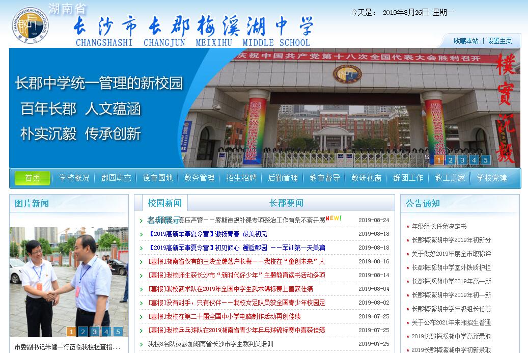 长沙市长郡梅溪湖中学是一所直属于长沙市教育局的公办完全中学,委托百年名校长郡中学管理,是百年长郡教育传统的延续和拓展。长郡中学系湖南省示范性普通高级中学,1904年由长沙知府颜钟骥创建,始称“长沙府中学堂”,是当时唯一的府立中学堂,在长沙首倡新学。1912年,府制废除后,在长沙府中学堂的基础上建立湖南长郡公立学校。此后,学校先后更名为湖南第一联合县立中学、长郡公学、湖南长郡联立中学校、长沙市第一中学(1951年)、长沙市第二中学,1984年恢复长郡中学的校名。百余年来,长郡中学以“朴实沉毅”为校训陶铸群英,为社会共输送了八万多名合格毕业生,不仅造就了徐特立、李维汉、陈子展、周世钊等一代名师,还孕育了李立三、罗章龙、任弼时、李富春、肖劲光、陈赓、曾三等老一辈无产阶级革命家,从这里走出了张孝骞、沈其震等十四位院士和美学家蔡仪、音乐家吕骥及青年歌唱家张也、陈小朵等一大批学者名家。学校教学质量长盛不衰,素质教育成果叠出。1995年以来,教育教学各项评价指标连年领跑湖南,2013年至2018年六年高考中,就有417名学生被北大、清华录取;学生在高中数、理、化、生、信息学五科奥赛中获得全国联赛一等奖1100余人次,有99名学生入选国家集训队,夺得国际奥赛金牌13枚,银牌2枚,亚洲金牌4枚;在全国音、体、美竞赛中,获得全国一等奖或金牌265项。体操队七次代表中国参加世界中学生运动会,荣获金牌8枚、银牌10枚、铜牌12枚;羽毛球队三次代表中国参加世界中学生羽毛球锦标赛,荣获金牌2枚、银牌5枚、铜牌1枚;澄池文学社两次被评选为全国中学生百强文学社团。学校的“走进军营”、“走进大自然”、“走进社区”、“走进工厂”和“走进新农村”等体验活动成为省内外知名的素质教育品牌。长郡梅溪湖中学位于长沙市湘江新区梅溪湖西北角,由市政府投资3.2亿兴建,占地128亩,2012年9月开办初中,2014年9月启动高中。现有初一至高三6个年级,共65个班,教职员工270余人,学生3500余人。学校“绿色教育”办学特色声名鹊起,是教育部认定的“全国青少年校园足球特色学校”,荣获全国校园大课间啦啦操推广实施单位、全国啦啦操实验学校、全国生态文明教育特色学校、首批湖南省生态文明示范学校、湖南省两型示范基地、湖南省优秀校本课程一等奖(绿色教育校本课程)、湖南省食品安全示范学校、长沙市文明单位、长沙市综治工作红旗等次行业平安创建单位、长沙市安全文明校园、长沙市两型标杆单位、长沙市两型示范单位、每年长沙市大课间体育评比一等奖等。学校以“初中求优、高中求精、学校求特”为办学定位,2015年至2018年四届初中毕业生中共有538名学生获得长沙最好成绩6A,四年平均6A率高达22%,蝉联长沙中考教学质量优秀单位;2017、2018、2019三届高中毕业生学业水平考试合格率分别为100%、99.9%、100%,2017、2018两届高考二本上线率分别为91.85%、97.56%;学生参加全国奥赛,28人次全国联赛一等奖。学校定位高远,从设计规划开始即朝着“长沙领先、国内一流、国际知名”的目标迈进。学校是长沙市湘江新区核心开发区梅溪湖国际新城引进的规模最大(72个班)、面积最广(128亩)、配置最高(3.2亿)、开办最早(第一所)的公办完全中学,区位优势得天独厚。完享国家级新区“先行先试”“五自主一统一”优先发展的政策优势,是梅溪湖国际新城基础教育的第一张名片。学校的校级领导刘欣校长、梁惠林书记、胡志辉副校长和左晓波副校长均由长沙市教育局在全市教育系统的优秀干部中严格遴选并任命,其中刘欣和胡志辉均为长郡中学特级教师,可谓专家治校,实至名归。学校师资由长郡中学统一招录、调配,教学团队由长郡中学统一安排特级教师、金牌教练、高级教师等名优教师领衔。学校现有市级名校长1人,特级教师工作站站长1人,正高级教师3人,特级教师3人,高级教师21人,市级骨干教师12人,中学一级教师90名,聚合成了一支理念先进、梯度合宜、素质过硬、精干雄厚的教师队伍。学校是省政府倾力打造的“两型”示范学校,校园建筑融科技、环保、人本为一体,地源热泵利用地能、单车棚光伏发电、立体绿化半个校园、澄池污水处理系统、教室宿舍食堂两分钟转换、教师公寓宾馆级设计成为绿色校园的真切写照,CMS600环境控制与能源管理系统精准节能更是为两型校园插上智能化翅膀。我校拥有“培养核心素养十大中心”,即人文资源中心(中外历史馆、声光自然地理馆、澄池气象站等)、体育活动中心(恒温恒湿游泳馆、中华武术馆、乒乓球馆、NBA标准篮球馆、形体训练馆、健身馆、田径训练基地、女足训练基地等)、现代实验创新中心(数字化互动生物实验室、创客中心、两型展示室、机器人创新室等)、艺术中心(美术鉴赏室、书画室、手工制作及陶艺室、合唱团训练室、管弦队训练室、舞蹈团排练室等)、现代教育技术中心(智慧自动微图书馆、智慧朗读亭、智慧云黑板、学生传媒中心、数字化电子校宣系统、云平台智慧校园网等)、心理发展中心、课程资源开发中心、职业生涯指导中心、综合素质指导中心、综合实践指导中心,为学生全面发展及核心素养培育奠定基石。生活设施方面,学校建有宽敞明亮、条件一流的男生公寓轩毅楼、女生公寓静雅楼,均有独立阳台、独立卫生间、
