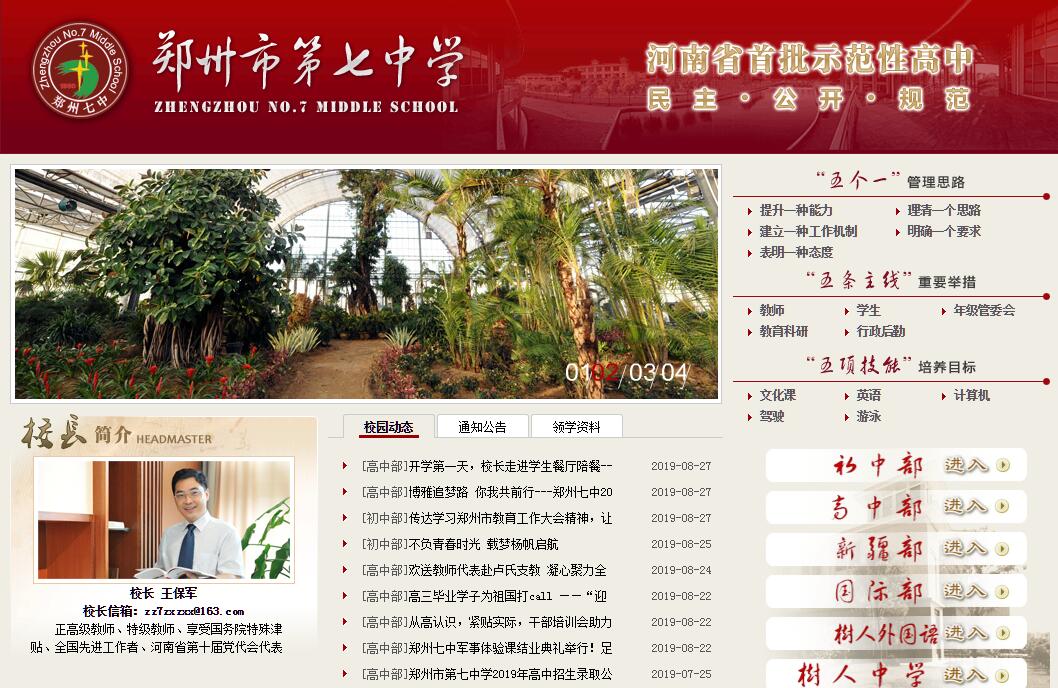 郑州市第七中学始建于1950年2月,其前身为河南省工农速成中学,是一所具有六十八年办学历史的完全中学,目前已经发展成为拥有五个校区,8000余名学生,500余名教职员工,具有相当规模的教育发展联盟。学校是全国中小学德育工作先进集体,全国科普教育基地,全国群众体育先进单位,全国智慧教育实验校,河南省文明单位,河南省首批示范性高中。一代代七中人秉承“千教万教教人求真,千学万学学做真人”的校训,以“真”为办学灵魂,坚持“全面发展和个性特长相结合”的育人目标。近年来,郑州七中以“五个一”为指导思想,以“创人民满意学校”为目标;以“千教万教教人求真,千学万学学做真人”为校训;践行“以德育人、以文化人、以学养智、以体健身“的办学理念,以“保持规模、稳定结构、精耕细作、培育特色”为发展思路,以现代学校制度为保障,各项工作做到民主、公开、规范。初中部以西外语东七中、高中部以三足鼎立为发展愿景。近几年郑州七中先后荣获“全国中小学德育先进单位”等几十项国家级荣誉,连年荣获郑州市高、初中教育教学先进单位、教科研先进单位、学科竞赛先进单位。2015年又获得“全国科普教育基地”、“省教育系统先进集体”、“省文明学校”、“省人民满意的十佳学校”、“省中小学心理健康教育示范校”、“省综合实践活动课程建设样本学校”、“市民族团结模范集体”等荣誉,优质的办学水平和良好的社会声誉让郑州七中成为中原教育的一张靓丽名片。