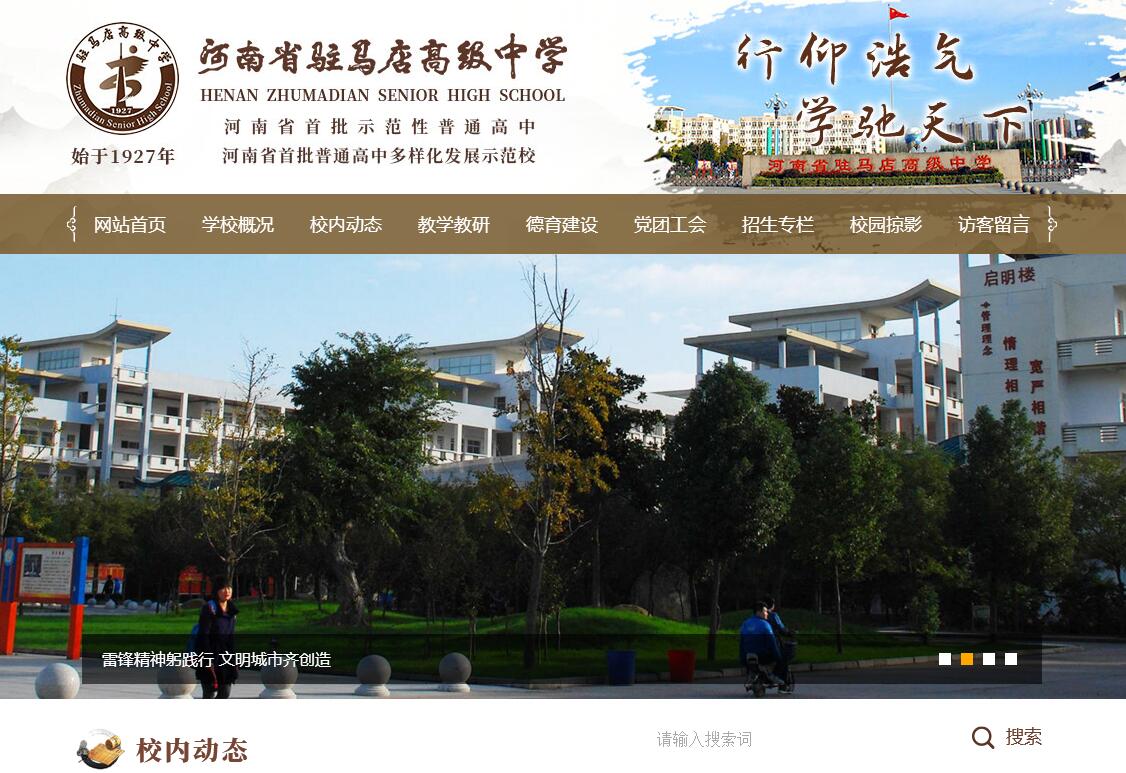 驻马店高级中学的前身是始建于1927年(民国16年)的私立育英中学,早期校址曾几经迁移。1940年迁至袁寨大院,解放前学生最多时曾达500 人,1940年曾增设过2个高中班。1949年初,驻马店解放,改私立为公立,更名为驻马店初级中学。1956年秋,初中发展到14个班,增设高中班2个,后名为驻马店市第一中学 。1958年春,易名为确山一中。1959年4月经信阳专署文化教育局批准在现址建校,1961年11月新校舍落成,高、初中部分为两校,高中部师生迁入新校址,校名仍为确山第一中学。1963年春驻马店改为专辖镇,校名为驻马店高级中学。1966年春改属驻马店专员公署文教局直属学校。1969年春,校舍被地委党校占用。1971年,地委党校迁出,学校交驻马店镇管理,继续开办,校名为驻马店四中。1978年春恢复为地区教育局直属,更为现名。学校自建校以来,始终坚持“以人为本,科学管理,质量第一”的办学理念和“行仰浩气,学驰天下”的校训,坚持开放、包容、自信的管理理念,致力于促进学生的个性发展和德智体美的全面发展,在驻马店市乃至在河南省高中阶段教育领域具有较大的影响力,是驻马店市基础教育的龙头学校、河南省首批示范性高中和首批河南省普通高中多样化发展示范校。学校现在分为两个校区,占地总面积378亩,有高中和初中两个学部,高中部在编教职工504人,其中特级教师10名,国家级骨干教师5人,省级学科带头人及省级骨干教师63名,市级拔尖人才33名,高级教师191名,中级教师202人,拥有研究生学历教师136名;学校办学设施基本齐全,有驻马店市较为先进的科技馆、实验室、微机室、气象台和天文台,教学楼6栋,学生宿舍楼8栋,学校现有100多个教学班,在校学生近8000人。新校区位于淮河大道西段,距高铁站仅800米,道路畅通,公交便捷,12路、18路、25路公交等可直达。校园内绿树成荫,鸟语花香,草坪、花园、果园错落分布,楼群、广场、石刻相映成趣,自然环境优美、人文气息浓郁,是学生学习和教师工作的理想场所。