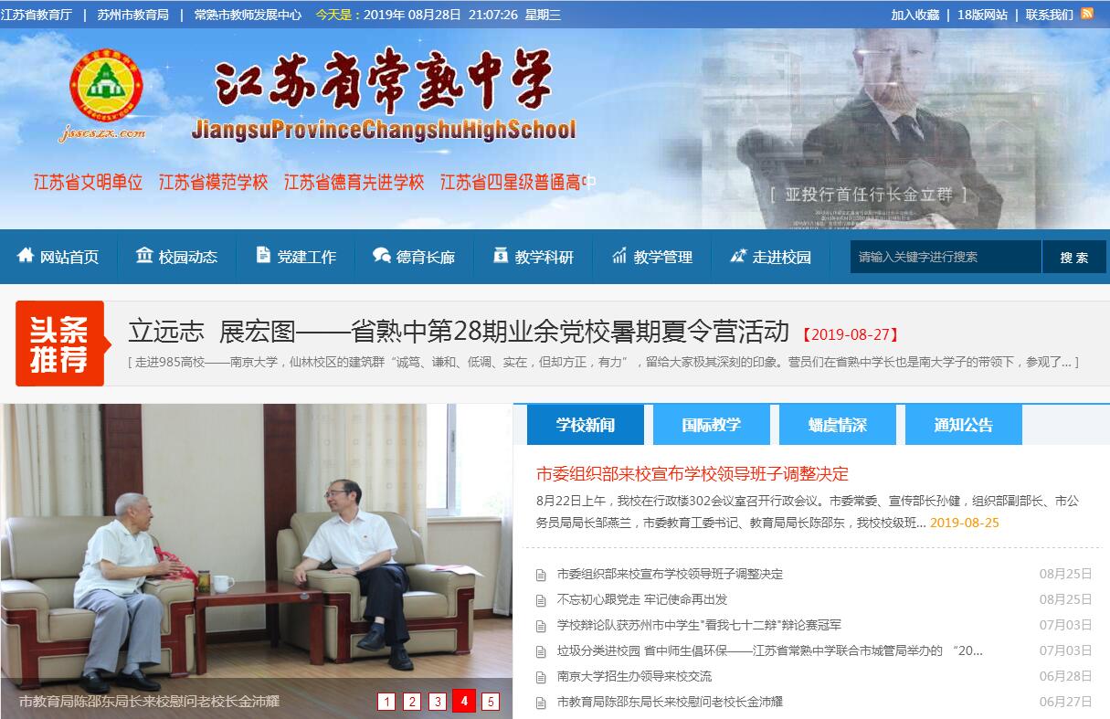 江苏省常熟中学的前身是1938年创办于重庆合川的国立第二中学。抗战胜利后,学校于1946年移址常熟,更名为江苏省立常熟中学。1953年定名为江苏省常熟中学。1990年通过省教委验收,确认为首批合格重点高中。1998年,学校搬迁至现址。2000年,被省教育厅确认为国家级示范性普通高中。2004年转评为江苏省四星级普通高中。学校设有48个教学班,在校学生近2000人。现有专任教师210人,其中中高级职称超90%,江苏省特级教师、苏州市名教师、各类学科带头人和教学能手等市级以上骨干超60%。校园占地面积250亩,校舍建筑面积达6万平方米。学校布局合理,设施齐全,装备先进。学校坚持“以学生发展为本,面向全体学生”的办学理念,教育质量稳步提高,学科竞赛成绩喜人,素质教育成效显著。自苏州市设立“李政道奖学金”以来,共有19名学生获苏州市“李政道奖学金”。蔡学飞、杨清嘉分获高考2001年省理科、2008年省文科第一名;钱尧、季心宇、熊家颐、金滢分获高考2010年、2011年、2013年、2014年苏州市文科或理科第一名。在第43届国际化学奥林匹克竞赛中,龚宗平夺得金牌第一名;在全国高中生奥林匹克竞赛中,周易获第25届化学金牌,殷裔安获第27届数学金牌,钱天一获第27届化学银牌,金滢获第29届数学银牌。学校打造课程改革和校园文化两大特色,省级课程基地——“虞山文化课程基地”的建立,以课程丰富内涵,以基地拓展课堂,进一步激发了师生的创造潜能,提升了学校的文化品位。丰富多彩的学生社团活动成为校园内一道亮丽的风景线。学校辩论队、晴川文学社、合唱团、各类运动队在各级比赛中,都取得了骄人的成绩。学校设立国际教育部,开设全球认可的GAC国际大学预科课程,三届毕业生全部被海外知名大学录取,其中30%的学生被美国排名前50位的一流大学录取。为开阔学生国际视野,自2012年以来,先后组织学生赴澳大利亚、英国、新加坡、美国等国修学旅行。2013年,学校与澳大利亚维多利亚州北墨布中学缔结友好学校,为两校学生搭建一个相互了解,共同提高的平台。76年的办学历史,学校积淀了丰厚的人文底蕴,形成了优良的教育传统。已经毕业的近5万名学生许多已成为各界才俊,17位院士便是其中的杰出代表。江苏省常熟中学正面向未来,全面深化改革,努力开辟通往教育现代化的成功之路。