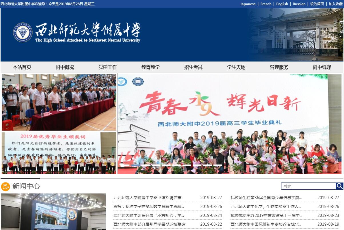 西北师范大学附属中学,源起于1901年创建的北平“五城学堂”,前身为北平师大附中,1937年秋,在抗日战争的烽火中,已有36年办学历史的北平师大附中被迫随北平师大、北平大学、北洋工学院等西迁西安、城固等地办学;1943年,附中随西北师院迁至兰州;1988年9月,西北师院改称西北师范大学,附中又随其改称西北师范大学附属中学。在兰州办学以来,先后被省教育厅命名为省级重点中学和省级示范性高级中学。在长期的办学过程中,“勤、慎、诚、勇”的校风不断得到发扬光大,学校素以启迪有方、英才辈出而闻名遐迩。在西北办学以来,为国家培养了大批优秀人才,许多学生成为国内外知名专家和学者,原中国科学院副院长、科学院院士、土壤地理与土地资源学家孙鸿烈, 2010年国家最高科学技术奖获得者师昌绪,轻武器设计专家、中国工程院院士朵英贤等11名院士,以及北京大学野生动物保护专家、全国十大杰出青年吕植和正在美国留学读博的国际中学生奥林匹克物理竞赛银奖获得者杨巍等,是新老学生的杰出代表。仅改革开放以来,就为高等院校输送学生近万名,其中多数到重点大学学习,并有近四千多人次的学生在省级以上学科竞赛和各种评优活动中获奖。新世纪、新阶段,西北师范大学附属中学全面推行素质教育,不断创新育人模式,教育教学质量不断提升,对甘肃省基础教育的改革与发展起到示范与引领作用。以 “鸿宇”理科实验班、“北辰”人文实验班、“昌绪”工程实验班与“国际英才班”等为代表的多元育人模式,特色鲜明,文理相融,立足本土,面向世界,为优秀学子提供了广阔的学习空间。为了适应时代和社会发展对人才素质的要求,全面提升学生的综合素质,学校于2002年秋季开学起实施寄宿制管理;为扩大对外交流与合作,拓展国际视野,提高办学水平,培养具有国际化视野和国际化素养的高层次人才,2008年开始开办“国际高中实验班”,旨在为学生提供选择享受国外高等教育的广阔平台,经常举办中外中学生文化交流活动,2006年被国家汉办确立为 “汉语国际推广中学实习基地”,面向世界各国招收中学留学生。学校是中国教育学会高中教育专业委员会副理事长单位、美国大学理事会(College Board)会员学校、中国教育国际交流协会中学分会副理事长单位、中国高中六校联盟成员校,也是教育部考试中心和美国教育考试服务中心托福网络考试考点、英国剑桥大学中国遴选中心考试中心。