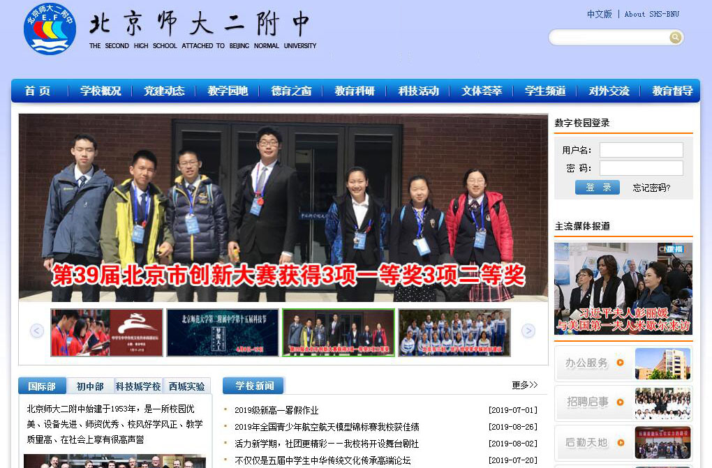 北京师大二附中始建于1953年,是一所校园优美、设备先进、师资优秀、校风好学风正、教学质量高、在社会上享有很高声誉、在国际上有一定影响力的市重点中学,是北京市首批重点建设的普通高中示范校之一。目前学校已形成一校三部的发展格局,即高中部、初中部、国际部。同时我校还承办了北京师大二附中未来科技城学校、北京师大二附中西城实验学校。学校文化:人文、自主。在管理上特色是“人文管理”,具体表现是“学校管理要‘目中有人’,重视观念的定向和指导作用,发挥情感的亲和力与凝聚力,营造博爱思想的高品味文化氛围”,核心是“人本”与“和谐”。学校坚持“尊重学生自主,倡导人文教育,重视环境熏陶,强调道德实践”的教育主张,形成“人文素质教育”和“自主性发展”的育人特色。学校实施“欣赏型德育”,倡导德育的人文性、自主性,强调通过立美创造实现德育过程德美交融,引导学生在欣赏中完成道德自主构建;学校倡导“有效教学”的理念,保持优质的教学质量,满足不同层次学生的情感需求、认知需求和升学需求。学校开展一系列重要的国际交流活动,不断开阔师生的国际视野,引导师生关注人类发展的现状和前景,不断提升跨文化意识,提高对中外文化异同的探究意识和鉴别能力。我校自上世纪九十年代以来,一直秉承“三兼优一发展”的育人目标,既继承了优良的传统,又与时俱进,开拓创新,在教育、教学、科研、管理等方面进行了科学、有效、深入的探索和实践,取得了骄人的成绩,使这所传统名校焕发出新的生机与活力。