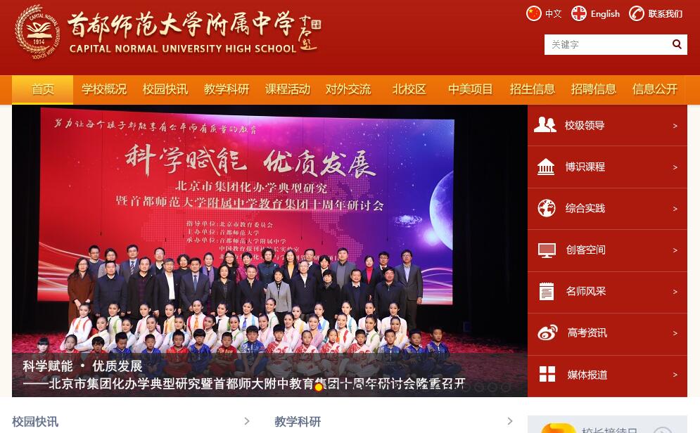 首都师大附中坐落在京西古道的起点阜外八里庄,与慈寿寺永安万寿塔(明万历四年建)为邻,同碧波荡漾的昆玉河相伴。昆玉河“秀甲京城”,给首师大附中注入了睿智的灵动 ,带来了勃勃生机;慈寿寺塔“辉腾日月”,为首师大附中平添了历史的厚重,见证了赫赫功绩。钟灵毓秀,人杰地灵,一百年来,首师大附中培养的英才数以万计,遍布海内外,他们都在各自的领域取得了卓越的成绩,可以这样说,首师大附中是社会中坚成长的沃土,是培育祖国栋梁的摇篮。首师大附中始建于1914年,由北洋政府陆军部次长、西北筹边使兼西北边防军总司令徐树铮创办,始命名为正志中学。新疆布政使王树楠、北平首任市长何其巩、中华民国首任教育总长蔡元培、北洋政府教育总长傅曾湘、交通总长叶公绰、财政总长吴鼎昌以及周作民、朱光潜、焦菊隐、齐思和等,均曾担任过学校董事长或校长。学校后因种种历史原因先后更名为成达中学、第三十八中学、第四十二中学、北京师范学院附属中学。1992年更名为首都师范大学附属中学,接受北京市教委和首都师范大学的双重领导,是北京市首批市级重点中学和示范性高中校。首师大附中秉承北平首任市长何其巩先生“成徳达才”的育人理念,恪守“自觉、勤奋、求实、创新”的校训,在将近一百年的办学历程中,经过一代代附中人的不懈努力,抓住了一次次难得的历史机遇,取得了一个又一个骄人的成绩。1978年,中国迎来了教育的春天,首师大附中作为高等师范院校的教育科研和教育实习基地,凭借其一流的师资队伍、一流的教学水平和一流的教学成绩,轻而易举地摘取了北京市首批重点中学的桂冠。进入到九十年代,我国开始全面实施素质教育,首师大附中在取得已有成绩的基础上,不断深化教育教学改革,在推进素质教育的征途中取得了长足发展,受到党和国家领导人的高度重视。2002年,北京市教委为了落实《北京市人民政府贯彻国务院关于基础教育改革与发展决定的意见》,在全市范围内展开了高中示范校评选工作,首师大附中凭借其骄人的教育教学成绩和在国内外的广泛影响,在众多参评学校中脱颖而出,被首批认定为北京市示范性高中校。2007年,北京市开始全面实施课程改革,首师大附中又凭借其深厚的文化底蕴、顶尖的师资队伍、先进的管理理念和丰富的办学经验成为北京市课程改革的领跑者,被人事部、教育部授予“全国教育系统先进集体”光荣称号。2011年,首师大附中又进入到了一个难得的发展机遇期,教育教学专家、数学特级教师沈杰校长凭借其敏锐的头脑、开阔的视野、渊博的学识、学者的气质和人格的魅力,让社会各界对首师大附中有了更高的期望。沈校长秉承“人本、和谐、创新”的管理理念,坚守“爱国、科学、人文”的教育理念,把对“人”的培养作为教育的终极目标,因材施教,努力提升学生的精神素养,培育厚德博学的创新人才。目前,精诚团结、锐意进取的附中人在沈校长的率领下,已经拉开了首都师大附中百年校庆的序幕,以“百年树人、成徳达才、薪火相传、再铸辉煌”为主题,决心三年跨越三大步——打造精品课程,建造精致校园,培养精英人才,实现“国内领先、国际一流”的办学目标,为100周年校庆献礼。