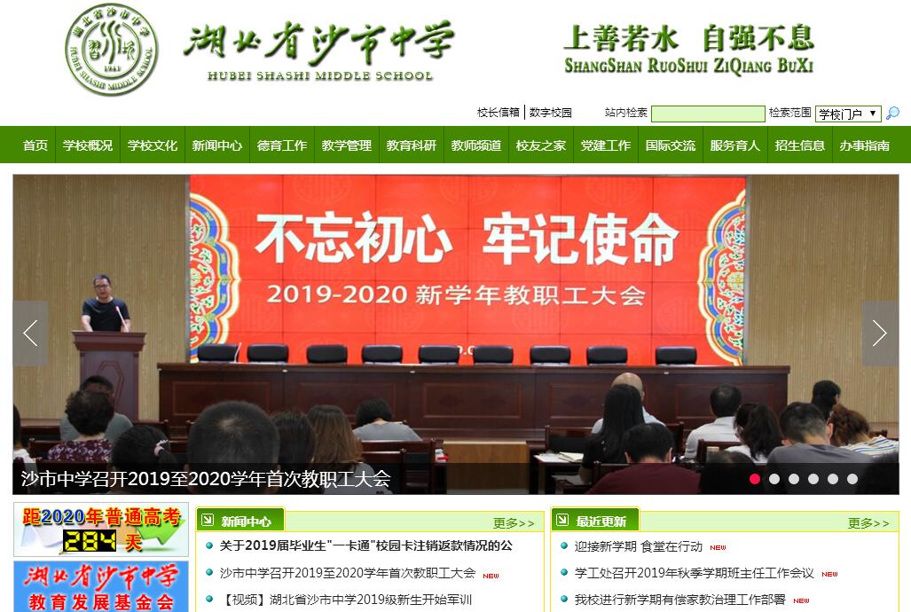 湖北省沙市中学(原“湖北省沙市三中”)创办于1941年11月,1956年更名为“湖北省沙市第三中学”,1999年9月恢复校名为“湖北省沙市中学”。1941年11月,学校始立校于童家花园(现沙市区北京东路269号),其后辗转于松滋街河市、宜昌长阳等地办学;新中国成立后回迁童家花园。2017年8月,学校整体搬迁至沙北新校区(工农路78号)。学校占地200亩,建筑面积7万多方,绿化覆盖率达到50%。学校配有语音室、计算机教室、多媒体报告厅、微格教室、数字化实验室、普通理化生实验室、地理教室、心理辅导中心等,装备有现代化的校园智能广播系统、网上阅卷系统,教室均装备有智能交互平板一体机。学校图书馆纸介质藏书达10多万册,报刊年订数600多种,电子图书20万册。学校数字化校园的应用涵盖教师备课、上课、反思和评课的各个教学环节,开通了电子图书阅览室、电子期刊阅览室,实现了校园教学管理的智能化和信息化。多年来,学校坚持全面贯彻党的教育方针,不断弘扬以“上善若水”为内核的习坎精神,赢得了诸多荣誉:全国第一批重点中学、全国五讲四美为人师表先进集体、全国教育系统先进集体、第一所湖北省普通中学示范学校、湖北省科研示范学校等。学校曾2次受到国务院嘉奖,7次受到部委表彰,7次被评为湖北省文明单位。2015年,学校被评为湖北省“文化建设百强校”、 被共青团中央授予“全国五四红旗团委”称号。学校坚持以习坎文化引领发展,经过多年的挖掘、讨论、整理,形成了“上善若水、自强不息”的校训,“一切为了师生的全面、充分、主动、和谐发展”的办学理念,“创建和谐校园,打造全省一流重点高中”的办学目标,“办人民满意学校,育国家需要英才”的办学宗旨,“文明、和谐、自主、创新”的校风,“敬业乐群、爱生善教”的教风,“自信坚毅、乐学善思”的学风。通过对习坎文化的传承弘扬,学校已形成和衷共济、内和外顺、协调发展的教育模式,并不断以独特的学校文化体系辐射周边。学校积极打造智慧校园,建设名师工程。学校拥有一支师德高尚、爱生乐教、业务精湛、勇于创新的高水平教师队伍。学校现有教职工200多人,其中特级教师6人、中学正高教师1名、高级教师120人,多人获得“国务院特殊津贴获得者”、“全国模范教师”、“全国优秀教师”、“湖北省劳模”、“湖北省优秀德育工作者”、“ 楚天园丁奖”、“湖北名师”等荣誉称号。这支团结优秀的团队,以文化名校的办学传统为滋养,以科学合理的管理制度为准绳,为全体学生的蓬勃发展提供坚实的保障。学校坚持高举素质教育大旗,为学生的终身发展奠基。学校不断实现以“和善行信”为核心的育人和谐,通过德育活动序列化、社团活动阵地化、队伍建设专业化,形成了全面素质教育体系,包括爱国主义教育、传统文化教育、道德法制教育、独立人格教育、大志理想教育、科技创新教育、体育健康教育等一整套体系。《人民教育》、《光明日报》、《德育报》、《中国教育报》、《中国教师报》等曾分别报道了学校德育改革经验。学校坚持以教学为中心,实现以高效课堂为核心的教学和谐,通过遵循“以学定教、先学后教、训练主线、反思提升”的十六字教学原则和同课异构、教学共同体等教研平台,打造智慧师资,深化教学改革,办学成绩突出。至2017年,学校先后培养了包括5名两院院士、7名省级高考状元、3名将军、2名国际奥赛金银牌得主在内的4万多名各类优秀人才,他们中有学界翘楚、商界精英、政界英才、影视明星、海外名流……近年来,学校高考本科上线率、高分层人数均居全省同类重点中学前列,尤其是一本上线人数逐年攀升,竞赛成绩在荆州市首屈一指,实现了“办人民满意学校”的庄严承诺。走国际化教育之路,育国际视野的英才,是学校教育国际化的目标。2006年,经省教育厅审批,学校与加拿大阿尔伯塔省金山教育分局合作,开办了“沙市中学中加国际合作办学项目”。师生互动、交流访问已经成为国际合作办学项目的特色,一批批习坎学子赴国外留学,奠定了学校国际合作办学的发展基础;经英国爱德思考试局授权,学校成立了A-LEVEL国际课程考试中心,A-LEVEL国际课程已正式开设,这都极大地促进了学校国际部的发展和提高。学校积极参加国际交流活动,曾多次接待来自美国、英国、加拿大、澳大利亚、爱尔兰、新西兰、日本、韩国等国的访问团和国际友人,这大大地提升了学校的国际交流活力和影响力。此外,学校“新加坡公费留学项目”、“美国留学项目和交换生项目”、“中加国际合作办学项目”、“澳大利亚留学项目”等,全方位地为学生搭建了高质量的出国留学平台。乘着时代的东风,今日的沙市中学,正秉承光荣的传统,与时俱进,开拓前行,正以“先进的文化、和谐的环境、智慧的师资、优异的学生”为办学目标,为实现学生全面、主动、充分、和谐发展的教育理想而努力!