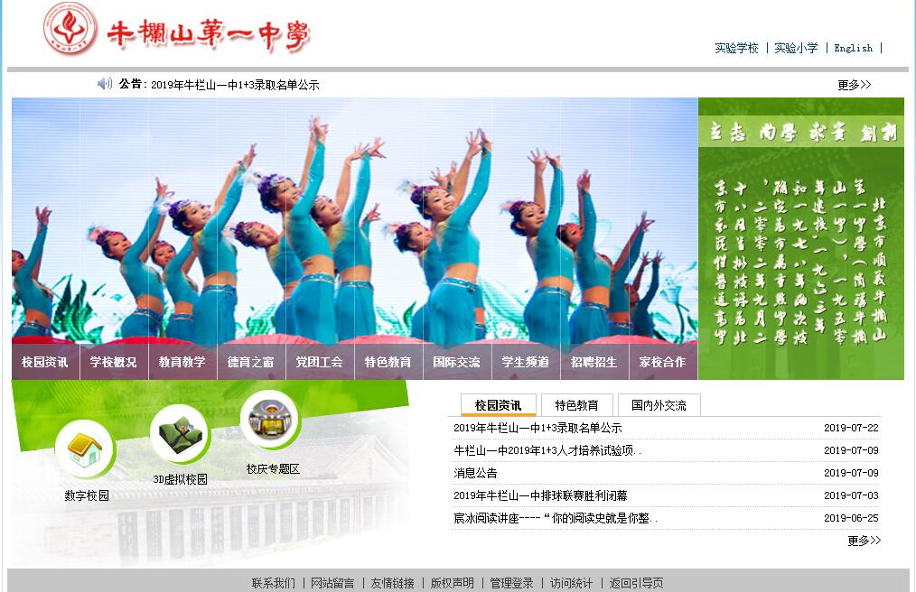 北京市顺义牛栏山第一中学(Bēijīngshì Shùnyì Niúlánshān Dìyī Zhōngxué),简称牛栏山一中,始建于1950年,时属河北省的顺义县人民政府选用明代古刹元圣宫为校址,创办的河北省顺义县初级中学。1951年更名为河北省顺义县第一中学;1958顺义县划入北京市,学校更名为北京市顺义县牛栏山中学;1963年牛栏山中学被确定为北京市市属重点中学;1978年更名为顺义县牛栏山第一中学,再次被定为北京市重点中学;1998年更名为北京市顺义牛栏山第一中学,并于2001年被首批评定为北京市示范性普通高中。学校的前身为1917年从昌平县城迁入牛栏山镇南关(元圣宫)的京兆第四中学。1920年8月改称京兆第三中学。1924年3月改称京兆第二初级中学。1928年7月河北省政府成立,又改称河北省立第十九中学,日本侵占顺义后停办。1950年初,河北省人民政府决定,立即创建20所中学。通县专员公署与顺义县人民政府,按照省教育厅的决定,选用解放前的河北省立第十九中学旧址(元圣宫)为校址,定名为河北省顺义县初级中学。从冀东根据地蓟县联合中学抽调了部分学校干部和教职工,经过短期筹备,于1950年11月15日正式开学。(本段资料来源《牛栏山一中校史》《民国顺义县志》)牛栏山一中位于北京市顺义区北部、牛栏山镇中部地区,北、东两侧紧邻金牛村,南邻牛栏山酒厂,西邻先进村,占地面积18.8万平方米,建筑面积13.5万平方米,绿化面积4万多平方米。在学校旧址元圣宫旁,建有现代化的教育楼、科技楼、综合楼、图书馆、体育馆、生物馆、历史馆、青春馆、宇宙馆、大礼堂、学生艺术中心和学生综合服务中心;配备了先进的理、化、生实验室和数字实验室、通用技术设计室和操作室、物联网实验室、车模教室、航模教室等;实施了数字化校园、少年科学院、少年文学院、拔尖创新人才早期培养基地、IPAD实验班、IT实验班等创新项目。校史馆——元圣宫坐北朝南,前立木制牌楼一座,其后有石狮一对,为明代遗物。后面是仪门、前殿、正殿、后殿、东西配殿等建筑,房屋共40余间,均为清代建筑。殿宇上分别绘有旋子彩画、苏式彩画、和空彩画。前殿月台上,又有古柏两株,高大粗壮。后殿5间,黄琉璃绿剪边,金龙和玺彩画,月台高大。东西配殿各5间。院中松柏参天,甬道用各色石子拼成图案。为顺义区重点保护文物。综合楼建筑面积14991平方米,总共四层坐落在校园南门,外墙主色调为棕红色。一座孔子像庄严的矗立在综合楼门前。一层连廊的茶艺教室是给学生传播传统文化的新型教室,也用于接待、会议、休闲等,总占地面积354平方米,可同时容纳50名学生进行茶艺学习。综合楼二层和三层为行政办公室。四层和五层的图书馆采用欧洲中庭回廊式设计风格,线条古朴简洁,中庭空间高大宽敞。综合楼北部的A、B、C楼分别为高一、高二、高三教学楼,三个楼可容纳50个班2500名学生。A、B楼连廊是生命馆、青春馆、历史馆、宇宙馆组成的博学馆,四馆采用丰富的影像、图片、文字资料和现代化设备传播知识。科技楼坐落在校园西侧,是学校实验教学和科技教育中心,配置了常规实验室、通用技术设计室和操作室、车模教室、航模教室等,可容纳1200余名学生同时进行科学实验。艺术楼是学校的艺术教学和体验中心,设有音乐教室、舞蹈教室和美术教室,可容纳600余名学生同时学习。吉祥礼堂位于艺术楼一层二层,两层共计987个座位,是学生集会、演出的主要场所。体育馆位于校园北侧,内部设施均以国家高标准施工,获得国家最优工程称号。在“以德立校,全面育人”办学思想和“自觉育人,自主发展”育人理念的指导下,“自觉+”教育逐渐渗透到课程、教学、德育、教师素养等方方面面;进一步完善和发展了我校“自觉+”教育理念指导下的的课程体系,将“四自”课程体系发展为“四自五育”课程体系,分别是:自律修养德育课程、自主发展智育课程、自强健体体育课程、自信体验美育、劳育课程;校本选修课程共开设了128门,并初步评出了33门精品课程;教师培养再辟新径,国内和国外、理论和实践,内容丰富,方式多元。为开拓学生视野,学校还先后实施了“百名科学家进校园”、“百名文学家进校园”“百名文艺明星进校园”、“百名体育明星进校园”等教育工程。学校总结出了“1+X”高效课堂教学模式,即通过教师释疑定标、展示问题、精讲点拨、达标测评、学生预习示问、交流探究、巩固提升、定时精炼等环节的有效衔接,最大程度地调动学生的自主性,提升课堂效率与效果。牛栏山一中始终关注学生发展和整体素质提高,98%以上的毕业生进入包括清华大学、北京大学、加州伯克利分校、迈阿密大学在内的国内外高等院校学习,形成了享誉京城的“牛栏山一中”教育品牌。优异的办学成绩使牛栏山一中多次获得首都文明单位、花园式学校、北京中小学德育工作先进校、未成年人生态道德教育示范学校、北京市党建示范校以及北京青少年科技后备人才早期培养计划基地等多种荣誉称号,并多次被市委、市政府、市教委领导高度评价为“牛栏山一中干部教师队伍好,学校校风好”。
