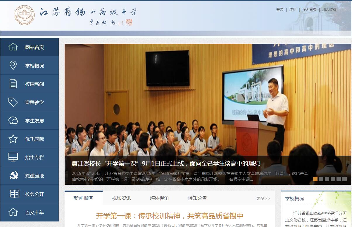 江苏省锡山高级中学是江苏历史文化名校,江苏省重点中学,江苏省首批四星级高中,江苏省首批九所、无锡市首所国家级示范高中。学校始建于1907 年,前身为私立匡村学校,由校主匡仲谋先生在杨墅创办。1952年学校更名为“无锡县中学”,1997 年启用现名。2004 年迁至惠山新城政和大道1 号。学校位于江苏省无锡市惠山新城,南临太湖,北依长江,交通便捷,京沪高铁、沪宁城铁无锡惠山站毗邻学校,京沪高速、沪宁高速无锡北出口下五分钟即到学校,无锡地铁一号线首站设在学校附近。学校设有普通高中部和国际部。现有2300多名学生,245名专任教师,其中正高级教师10人,特级教师10人,省333工程培养对象6人,市学科带头人34人。专任教师中研究生比例达到52.1%,高级教师比例达到53.3%。现任校长唐江澎为语文特级教师,第十三届全国政协委员,国家基础教育课程教材专家工作委员会委员,教育部普通高中课程方案修订专家组核心成员,教育部中学校长培训中心兼职教授,江苏省教育家培养工程培养对象导师。校园占地415 亩,村前小溪流经校园,近50亩水面的“乐群湖”碧波粼粼;校园绿化覆盖率超过70%,春来草色青青,夏日繁花点点,秋季果实累累,冬天蒹葭苍苍,有“华东地区最美高中校园”的美誉。学校基础设施完备,条件一流。建有“人文”、“胡氏三杰自然科学实验”、“想像�创造”、“巅峰体育”、“校园情境综合实践”、“云学习”等6 个省级课程基地,成为江苏省第一所课程基地全科覆盖的学校,并被江苏省教育厅确定为首批4家“江苏省课程基地高峰建设项目”学校之一。图书馆为江苏省中学一级图书馆,藏有《万有文库》、1875 年版《大英百科全书》等珍品,每个班级配有藏书600余册的书屋,校内配置了向家长开放的电子微图——“妈妈的书柜”。建成了拥有20 条标准剑道的国内最大校园击剑馆、室内外游泳馆等多个健身场馆,亚洲青少年现代五项基地、中国国际象棋高水平后备人才培训基地(无锡)建于校内。餐饮中心设有中餐厅、西餐厅、毕业宴会厅、生活技能中心、食品检验检疫中心,引入酒店团队专业管理。六幢学生公寓楼内配有健身房、洗衣房、休闲吧等设施,宿舍为五人间,每间宿舍有独立淋浴间、卫生间以及晾晒阳台,衣柜、书柜、储物柜一应俱全。网络和安全系统实现校园全覆盖。学校坚守教育成全人的价值追求,潜心办良善的教育, 努力培养“生命旺盛、精神高贵、智慧卓越、情感丰满”的时代新人,促进学生在学业与学术、品性与品位、适应力与胜任力诸方面均衡而又充分的发展。“江苏锡山高中学校课程体系的整体构建与实践创新”“基于课程标准的教学研究与实践”“学科育人:普通高中发展素质教育的路径创新与理论探索”等三项成果获国家级教学成果奖一、二等奖;“巅峰体育课程体系的构建与实践”被评为全国优秀改革成果;研究性学习实践探索、促进学习的课堂评价、学科组专业化建设等三项成果连续三次荣获省政府教学成果特等奖。学校被教育部确定为全国新课程改革实验学校、全国课程改革骨干教师研修基地、“长三角名师名校长”培训基地;学校有“大陆校本课程发源地”之美誉,江苏省校本课程开发研究所设在校内。学校办学经验受教育部、省教育厅和各级媒体的高度关注。《中国教育报》连续两期在头版头条刊发长篇通讯推介省锡中经验,《人民教育》以专辑、专栏、专版等形式介绍省锡中课程建设成果,中央电视台综合频道以“百年温情”为主题介绍学校办学理念和成果,央视5套曾连续11次密集报道省锡中“天天一节体育课”的经验。为表彰学校“在推进体育教育,秉承身体、意志、心灵和谐发展教育方面所做的卓越贡献”,国际奥委会专门授予省锡中“顾拜旦金牌”。