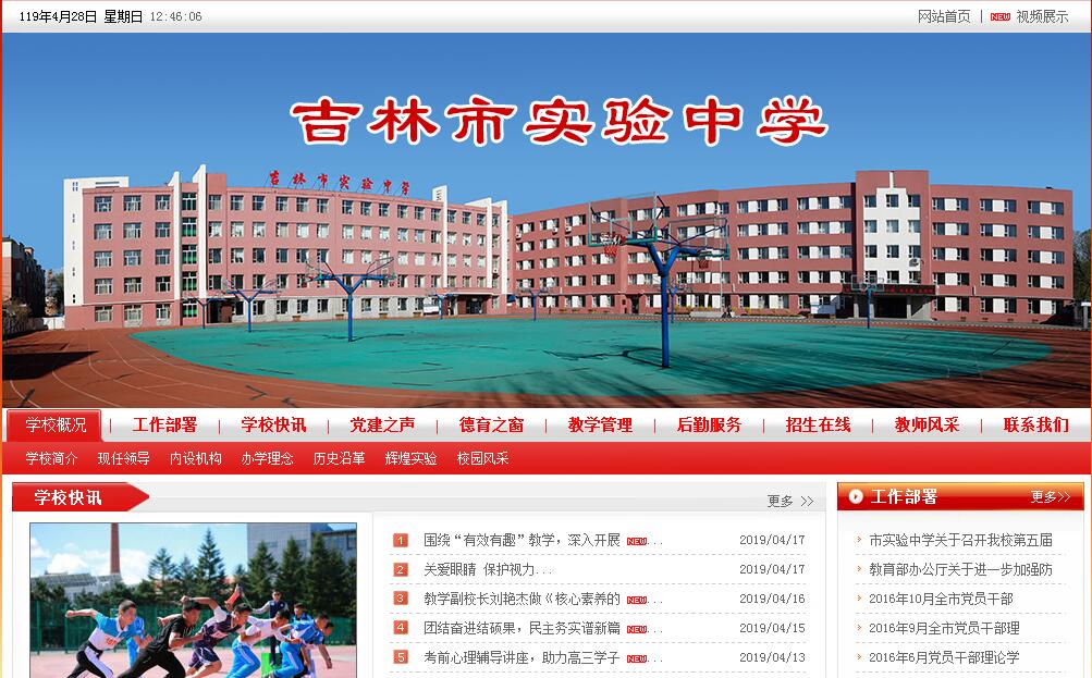 山环水绕、美丽富饶的北国江城吉林市被称为钟灵毓秀的风水宝地,培育了众多精英、令无数学子心驰神往的吉林市实验中学就座落在这个城市的心腹地带,从松花江边,沿着繁华的珲春街北行,至桃源路和炮台山公园的南侧(珲春街249号),你就到了这所环境优美、管理科学、和谐有序、人才辈出的学府。吉林市实验中学是一所省级重点中学,始建于1948年,已走过60多年的办学历程。学校占地面积14625m2,教学楼建筑面积12688m2。吉林市实验中学现有34个教学班,近2000名学生。学校师资力量雄厚,现有教职工180余名。其中“全天候”优秀任课教师6人,省市骨干教师、学科带头人83人,市级导师13人,市优秀班主任标兵5人,省市优秀班主任18人,历届市“十大杰出青年教师”3人。作为省级重点中学,吉林市实验中学始终挺身于教育改革的潮头,发挥着实验校的特色示范作用。在领导班子带领下,坚持贯彻“为师生的明天赢得尊严”的办学理念,大力倡导“和谐向上”的校风。学校班子成员团结配合,求真务实,克难求进,埋头苦干,带领实验中学改善了办学条件,提高了办学水平,学生的德、智、体各方面都得到充分发展,教育教学及管理工作取得了丰硕的成绩:先后被评为国家级绿色学校、省“巾帼建功”先进集体、省依法治校先进单位、省教育科研先进校、省电化教育示范校、省课改实验校、省优秀家长学校、市级文明单位、市社会治安综合治理工作先进单位、市督导评估“一级学校”、市教书育人先进学校、市直中小学校目标管理成绩优秀学校、市精神文明建设工作先进单位,成为江城教育的一面旗帜。