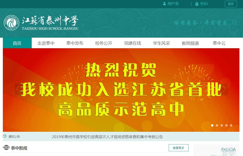江苏省泰州中学始于1902年在宋代著名教育家胡瑗讲学旧址创立的泰州学堂,是一所历史悠久、文化底蕴深厚、具有优良办学传统的知名中学。学校先后被评为省属重点中学、省四星级高中、国家级示范高中,获得全国文明单位、全国教育系统先进集体、江苏省文明单位标兵、江苏省模范学校等四十多个省级以上荣誉称号。2016年秋学期,学校整体搬迁至泰州南部新城。新校区占地面积303亩,总建筑面积14.86万平方米。进过恢复性改造的迎春西路老校区,作为泰州市未成年人社会实践基地、爱国主义教育基地和中小学素质教育实践基地,在未成年人思想教育和推进素质教育方面发挥重要作用。学校现有52个班级,在校学生2400多人。专任教师260人,其中正高级教师8人,特级教师10人,地市级以上名师、学科带头人36人,具有研究生学历教师80多人。学校以“明体达用”为校训,以“和谐、求实、进取”为校风,以“忠诚、谨业、创新”为教风,以“好学、善思、致用”为学风,教育教学质量不断提升。传承千年文脉,不断发展创新,凝练出的“体用兼备、平实即好”办学新主张使百年老校焕发蓬勃生机。作为全国首批百所高中特色建设项目学校和全省普通高中创新人才培养试点学校,学校大力加强教育教学管理与创新,出台了创新人才培养“锦绣计划”,相继建成“ICAN智能创新实验室”和“机器人实验室”。先后申报成功两个省级课程基地“数学学习体验中心”和“理科学习体验中心”。《安定书院教学文化的新构与实践》项目被确定为省首批基础教育前瞻性教学改革实验项目。教科研工作正以董健校长领衔的省教育科学“十二五”规划2015年度普教重点资助课题《基于胡瑗“明体达用”教育思想的学校课程建设研究》为龙头强势推进,突出大面积、平民化、解决实践问题的草根化研究。学校着力提高国际化办学水平,与澳大利亚特拉蕾根中学、美国芝加哥佩顿中学、英国国王学院等结为友好学校,常年进行师生互访活动。学校已开办剑桥国际班、雅思英语班、韩国留学生班等。作为江苏省汉语推广基地,目前我校正积极申报“孔子课堂”项目。百年老校,人才辈出,在新的发展征程里,江苏省泰州中学将进一步弘扬“追求卓越、自强不息”的泰中精神,为把学校打造成“高原上的高峰”而不懈努力!