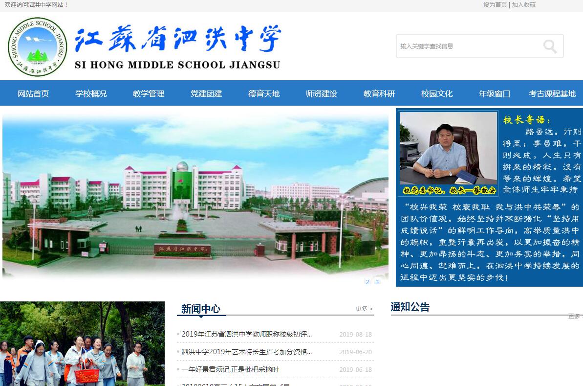 江苏省泗洪中学创建于1949年,系“江苏省名中学”。1960年受到国务院嘉奖,1980年被省政府批准为全省首批办好的95所省重点中学之一,1993年通过省重点中学合格验收,2005年晋升为江苏省四星级高中。校园占地300亩,在校师生5000余人。学校拥有科技馆、体育馆、图书馆、实验楼、生态科技馆、观隅园、校史馆、文史民俗馆等基础硬件设施,曲桥流水,假山喷泉,亭榭长廊,鸟语花香,被誉为书香校园和人文花园,在生态环保、科技教育等方面形成了传统优势和办学特色。建校以来,泗洪中学秉承“自主自觉,共享共生”的办学理念,一大批学子从这里跨进清华、北大、复旦、南大等全国著名学府。在国家级、省级各类比赛中,洪中学子均取得了骄人佳绩。学校先后被评为国家级绿色学校创建先进单位、全国科普教育基地、全国青少年文明礼仪教育示范基地、全国学校艺术教育先进单位、全国亿万学生阳光体育冬季长跑活动优秀学校、省生态教育课程基地、省德育先进学校、省华文教育基地、省科学教育特色学校、省教科研工作先进学校、省安全保卫先进学校、省空军飞行学员优秀生源基地、省招飞工作先进学校、省实施素质教育先进学校、省优秀家长学校、省首届生态文明号等荣誉称号;学校与澳大利亚维多利亚州蒙特丽莎中学结成了姊妹学校,为师生间互动交流搭建了更好的平台。学校教师集体还被省教育厅表彰为“优秀教师集体”。