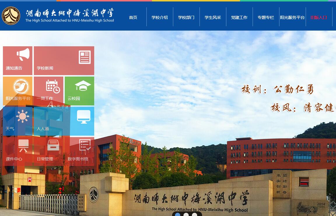湖南师大附中梅溪湖中学是由长沙市教育局主办、湖南师大附中全面管理的一所高起点高规格公办完全中学。学校坐落在长沙湘江新区梅溪湖国际新城核心地段,南靠桃花岭,北瞰梅溪湖,地理位置优越,环境幽雅。学校由方兴地产投资近6亿元兴建,占地面积近110亩,建筑面积5.2万余平方米,办学规模设计为68个教学班。校园建设全部按湖南省绿色建筑星级标准实施,处处彰显“两型”理念。校园规划科学,布局合理,功能齐全,设施一流。室内恒温游泳馆、多功能体艺馆、400m全塑胶田径场、数字化实验室、多媒体教室、录播室、常规实验室、科技活动室、3D打印室、电子阅览室、心理咨询室等教育教学配套设施一应俱全,省内领先。学校教育理念先进,秉持“公勤仁勇”这一校训,以“为了明天的你”为办学理念,全力推进以教师“乐教善育”、学生“乐学善思”为核心的“乐善教育”, 在全校范围内营造“清容健畅”的良好风气。学校在教育教学的组织和实施上与湖南师大附中实现“七统一”,资源共享,无缝对接。积极构建“两性四型”课程体系,力行“自主·合作·探究”教学法,坚持走理性办学、内涵发展之路,致力于培养“素质全面、个性彰显、行为文明、处事理性”的新时代中学生。学校师资力量雄厚,名师荟萃。首任校长由湖南师大附中党委副书记、纪检书记彭荣宏担任。现有专任教师171人,本科学历100%,研究生学历54%。其中,特级教师4人,2014年湖南省高考文理科状元教师各1人,全国优秀教师2人,湖南省优秀教师、湖南省优秀共产党员、湖南省青年五四奖章获得者、湖南省十大杰出青年岗位能手各1人,湖南师大附中派出的管理骨干、年级组长、教研组长、奥赛金牌教练、学术委员会成员、学科带头人、督学共18人。他们是一支近5年内先后培养出267名北大、清华学子的优秀团队。学校开局不凡,以“环境美、硬件好、师资强、理念新、管理优“的特点备受学生青睐,2014年首届高中招生录取线即达5A1B。湖南省委常委、长沙市委书记易炼红感慨这里的师生“很幸福、很幸运”; 湖南省人民政府副秘书长张值恒称赞这是一所“公园里的学校“;湖南省教育厅党组成员、省委教育工委委员王建华多次肯定学校“班子硬、师资强、工作实、势头好”;长沙市教育局党委书记、局长卢鸿鸣表示这是一所“高起点、高品质的创新型学校“;湖南师大附中校长谢永红、党委书记曾少华均认为学校“大有可为,必有作为“,必将成为”第二所师大附中”。学校自2014年秋季创办开学以来,以其“国际化、现代化、实验性、绿色性“的教育新形象,备受社会关注和认可。一年多来,省内外30多家媒体争相报道,全国3000多位教育界同仁前来参观交流。