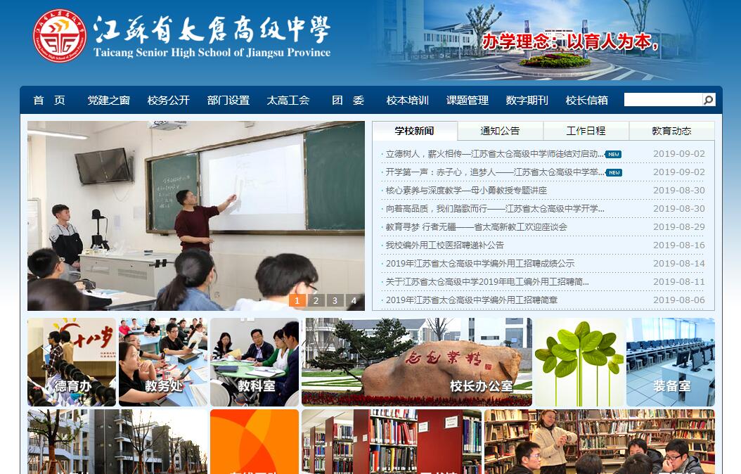 江苏省太仓高级中学,是在具有近百年历史的太仓市第一中学高中部基础上发展起来的一所全日制普通高级中学,1995年7月迁建落成并开始独立招生,1997年学校被确认为江苏省重点高中,1999年率先成为国家级示范性普通高中,2004年3月被评为江苏省首批四星级高中,2009、2016年通过复审年为了促进学校复审后的可持续发展,同时满足太仓人民对优质高中教育的需求,学校于2011年8月整体搬迁至太仓科教新城,新校区占地面积200亩,建筑面积约5.5万m2,新校区硬件一流,办公、教学条件优越,各场馆设备、设施达省普通高中优质标准。学校现有45个教学班(包含2个国际班),学生1871人,专任教师173人,教授级高级教师3人,特级教师2人,中学高级教师56人,中学一级教师 68人,苏州市名教师6人,苏州市青年拔尖人才3名,苏州市学科(学术)带头人15人,太仓市学科带头人39人,硕士研究生70人(含在读)。自1995年迁建特别是创建国家示范高中以来,学校践行规范,求真务实,开拓进取,凝炼了“上下齐心、众志成城、争抓机遇、努力拼搏”的省太高精神,形成了“以育人为本、让每个学生得到最优发展”的办学思想,明确了“志远业精”的校风,“严谨认真”的教风,“勤学善思”的学风,确保了学校持续高位发展。“十三五”发展期间,学校将秉承“循正守真,志远业精”的发展思路,谋求走特色、创新发展之路。为进一步实施素质教育,进行了教育教学的全面改革,从首创的“师生共同启动”的研究性学习到今天探索的全新教学方式-—研究性教学;从学生高度自治的民主化自我管理体制——“四自管理”到学生生涯规划项目的全面启动,无不彰显了学校的办学特色。近年来,学校先后被评为“江苏省精神文明建设工作先进单位”、“江苏省教育科研先进集体”、 “苏州市行风建设群众满意示范学校”“苏州市养成教育示范学校”等近七十项省市级荣誉称号。