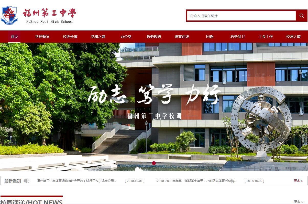 福州三中座落于榕城风景秀丽的西湖之滨,创办于1942年,前身是“福州市立初级中学”,1952年6月,经福州市统一调整校名,我校被正式定名为“福州第三中学”,从此校名沿用至今。1953年,学校被确定福州市重点中学,1963年它被确定为首批14所省级重点校之一, 1994年我校被确定为省一级达标校,1995年和2005年两次被推举为中国知名中学科研联合体的常务副理事长单位。2003年被确定为省级示范性高中。近年来,我校获得省市级以上荣誉近两百余项,并连续9届评为福建省文明学校,并获得 “全国模范职工之家”、北京2008奥林匹克教育示范学校、“全国教育系统先进集体”等荣誉称号。2008年我校被中央文明委授予“全国未成年人思想道德建设先进单位”荣誉称号,全国获此殊荣的学校目前不到20所。2009年我校被评为福建省首届文明单位标兵。学校现拥有42个教学班,在校学生逾2000人。在职教工160人,其中特级教师4人,高级教师80人。学校占地面积约30000平方米,拥有42间教室、14间完备而规范的理、化、生、劳技等课程的专用实验室和2间语音教室以及省内最先进的物理DIS实验室、数学TI实验室,42间教室均实现多媒体组合,已能使课堂教学告别了粉笔时代,大大提高了教学质量。一座总面积达4598平方米,内设有灯光球场、标准室内游泳池,体操房、乒乓球室以及现代化艺术多媒体教室多功能体艺中心,由于功能齐全,目前是我省中小学中首屈一指的体艺中心。一个占地约15亩的300米塑胶环形跑道运动场为学生的全面发展提供了优质的硬件保证。学校还拥有一座建筑面积达2353平方米独立的图书馆。馆内藏书愈十一万册,配备了现代化的管理设施,能应用计算机进行采编、编印、流通、情报检索等管理,极大地满足学生自主学习的需要。学校在教育教学资源上已实现高度共享,数字化、智能化的多媒体校园信息网络的开通和使用,更把学校的素质教育推上信息高速公路。近年来,我校致力于花园式学校建设。镌刻于校门口的“励志、笃学、力行”纯朴校训,时刻警示着三中人不忘理想和奋斗目标。 “数学花园”中鲜花碧草相衬其中,小桥流水贯穿于内,在这充满优雅情趣的理性氛围中,三中人崇尚的学者气、书卷气正潜滋暗长。“国学长廊”与“文化走廊”以及定期出版的宣传栏,与校园里的一花一草相互映衬,学生们在优美、健康、向上的环境中,陶冶情操、净化心灵。为努力实现市委市政府“办人民满意教育”的办学要求,我校认真以邓小平理论和“三个代表”重要思想为指导,以科学发展观统领教育教学和学校发展全局,着眼于新时期对人才素质的要求,切实积淀学生道德、人格、身体、思想、文化等素质,坚持以人为本,科学规范,促进发展的管理方式,切实从学生和教师的发展需要出发,努力为学生和教师搭建一个稳定、高效、特色的发展平台。在一个团结向上、充满活力的校领导班子的领导下,班子成员十分注重组织、思想和作风建设,具有高度的事业心和责任感,在师生中形成较高的威望。他们站在科教兴国的高度,自觉更新教育观念,积极推进新课程改革,创新学校的发展管理体制和运行机制,构建了科学的管理体制目标,以师生为主体,努力构建人文见长的学校管理文化。学校通过体制创新寻求发展契机,学校制定了《福州三中2010-2013年改革与发展规划》等一系列学校优化管理改革的实施方案,大大提高了各职能部门工作质量和效率,使学校各项工作都取得突出的成绩。一流名校,必然有一支卓越的师资队伍。从上世纪80年代的教师典范池伯鼎、郑寿彭等,到90年代德艺双馨的名师王性复、王立根、张金华,再到新世纪涌现出的魏丽真、林风、骆小山、马平等学科专家,一代代优秀教师用自身的“严谨治学,为人师表”不断积淀着三中“敬业、爱生、严谨、求精”的教风,也培养出三中学生“勤勉、乐学、创新、超越”的学风。在新形势下,我校不断探索与新课改相配套的以校为本的师资培训机制,发挥基础性培训功能,通过校本培训,源源不断地为教师输送教育教学的新思想、新观念。学校更加重视多渠道促进教师专业成长,尤其是加强对中、青年教师的培养,学校制定了“一年适应、三年合格、六年优秀、九年成骨干、十八年成一方名师”的教师培养目标,在这个目标的指引下,使他们在学科教学、竞赛指导方面迅速成长,在省、市同行中脱颖而出。学校已经形成了一支结构合理、充满活力、锐意进取,整体优势明显的教师队伍。近年来学校建立了“学校教研室、学科教研组、年段集备组”三级校本教研模式和管理机制,使校本教研走上制度化,规范化的道路,以教育科研促进教师教育观念的转变和教学能力的提高,几年来我校共承担了多项国家级、省级科研课题,有力地推动了我校教育教学深入发展。在日常教学中,我校实现卓有成效的素质教育。在课程设置上,对必修课、选修课进行合理配比,同时提高课堂教学质量,充分利用学校强势的多媒体组合资源,构建了一系列新型教学模式。学校依托长年的文化积淀,集聚优厚的课程资源,充分发掘了教师开发课程资源的能力,形成了丰富多彩的具有学校个性化的校本选修课程系列,形成充满活力、与时俱进的普通高中新课程体系。坚持开设“研究性学习”课程,着重培养学生的创新精神和探究实践能力,重视发展学