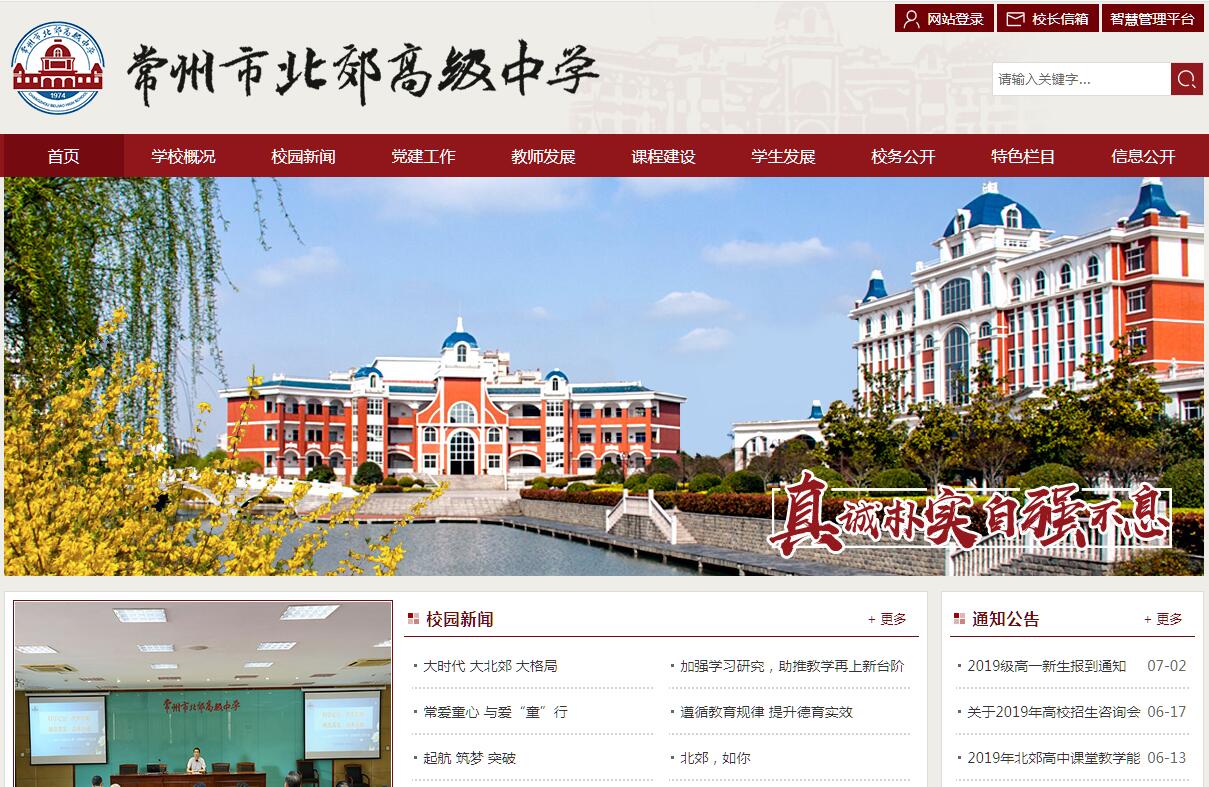 常州市北郊中学创建于1974年,李一氓先生为学校题写校名,1978年由市政府确定为重点中学,1996年以全省评估第一的成绩顺利通过了省教委省级重点高中的验收,2001年12月经过常州市人民政府与东南大学合作协商成为东南大学附属中学。常州市北郊中学新北校区由常州市教育局与新北区政府联手共建,校区 座落在新北区规划区内,占地317亩(相当于老校区的8倍)总建筑面积94816平方米,总投资近3个亿,建成后是常州最美、最现代化的全寄宿制公办学校,是耸立于常州北大门一道亮丽的风景线。新校区交通便利,东傍华山路,西连西环路,北依新北政府,南临沪宁高速公路,距未来常州行政中心仅4公里,几条宽敞的新建大道可快速直达现在的市区。新校区全部建筑以欧式学院派风格为主,中西式交融,气势恢弘,充满现代气息。教学区、运动区、生活区动静结合、错落有致、布局合理、环境典雅。新校区功能齐全、设施完备。教室宽敞并配有学生储藏室;大中小活动市足够适应未来的教改的需要;装备一流的实验大楼;可容纳千人的艺术大厅;开放式的图文信息中心;能举办省级比赛的体育场馆;拥有3000多个床位的学生公寓和满足几千个人同时就餐的两个饮食服务中心。新校区环境优美,绿化面积超过60%,湖河连池、路桥衔接、草木生辉、香飘四季、假山喷泉、幽径连廊、秀色怡人、集整体美、环境美、艺术美于一体,是学生向往的最理想的学习、生活场所。