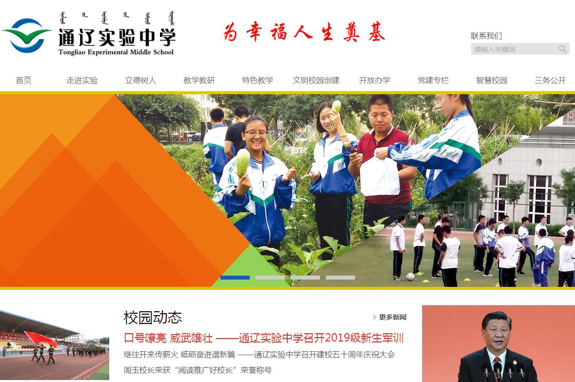 通辽实验中学始建于1968年,原名通辽铁路中学,2004年整建制移交地方政府。学校占地面积14.7万平方米,建筑面积8.56万平方米,拥有130个教学班,7200名在校学生,460名教职工。通辽实验中学以过硬的教师队伍和严格科学管理,赢得社会的广泛认可。学校先后获得“内蒙古自治区示范性普通高中”“内蒙古自治区现代信息技术教育优秀学校”“内蒙古自治区心理健康教育基地”“全国百所德育科研名校”“全国创建平安校园示范学校”“全国教育系统先进集体”等荣誉称号,2015年被国家文明委命名为“全国文明单位”,2017年被教育部评为“全国中小学心理健康教育特色学校”。通辽实验中学以“为幸福人生奠基”为校训,以“勤奋求实、 严谨创新”为校风、以“务小、务细、务实”为管理理念。通辽实验中学教师敬业、廉洁,认真负责,在社会上形成了一致的口碑和认可,学校有专任教师396人,其中以特级教师、高级教师、硕士学位教师、自治区、通辽市两级学科带头人、骨干教师,科尔沁英才和行业领军人物为主体的名师团队达到259人,他们创造了通辽实验中学“一年双状元,十年十状元”“三年两满分”和三度摘取自治区高考状元桂冠的教育传奇。学校积极探索课堂教学改革,坚持立德树人,探索出高中“导案自学五环节模式”,创造了自2012年高考以来,连续六年全市领先的优异成绩,形成了“低进高出,高进优出”的办学特色,通辽实验中学成为通辽市增值最大的一所学校。以军训、远足、我跑长征路、暖情行动、心理实践、多元体育等为主的主题实践课程,培养学生成长为身体心理健康,人格健全独立,品质端正高尚,兴趣爱好广泛的综合性高素质人才。2017年9月30日,市委、市政府任命周玉同志为通辽实验中学校长、党总支副书记。新一届校领导班子实现平稳过渡,并在新时期带领全体师生奋发向上、锐意进取,向全体教师提出“务小、务细、务实”的总体要求;引领全体同学树立远大志向,刻苦努力学习,学校出现了新面貌、新气象。全体实验中学人在新时期勇于担当、迎难而上、攻坚克难,不辜负这个伟大的时代,不辜负社会的信任,不辜负全校家长与学生的期待,办真正让通辽人民满意的教育!