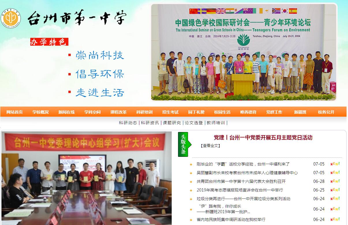 浙江省台州市第一中学是全国首批STEM教育领航学校、国家级绿色学校、全国特色学校,首批浙江省一级普通高中特色示范学校,省文明学校。学校创建于1924年,前身是海门慈幼院小学。1949年,更名为私立海门中学,1952年增设高中。1956年1月,海门中学由私立改为公立,校名定为“浙江省海门中学”。上世纪八十年代,更名为“椒江第一中学”。 2005年7月,更名为台州市第一中学。学校现有本部和新疆班两个校区,本部占地面积252亩,新疆班校区占地面积20亩,校舍建设面积110000多平方米。现有76个教学班,学生3081人。学校拥有省特级教师5人,正高级教师2人,中学高级教师155人,台州市名师名校长19人;获得国家级奖励30余人次、省级奖励70余人次、台州市级奖励200多人次,是台州市师资力量最雄厚的普通高中之一。学校教育理念先进,教学管理严谨,教学质量领先,办学声誉远扬。学校高考成绩连年攀升,高考上重点分数线人数连续十四年保持增长,越居台州市前列。2018年高考上一类线631人,其中7人被北大清华录取,还有一大批优秀学生跨进港大、复旦、交大和浙大等全国名牌大学的校门。科技教育凸显办学特色,全面提高了学校教学质量。编著出版了科技教育书籍7本,学校科技教育成果二次获得浙江省基础教育教学成果一等奖,教育部全国首届基础教育教学成果二等奖。学生科技成果丰硕,创新大赛成绩优异,是浙江省青少年科技创新大赛的“获奖大户”。在全国青少年科技创新大赛中获一等奖8项,二等奖19项,三等奖7项;在浙江省青少年科技创新大赛中获奖93项,其中省一等奖55项,是全省获奖档次最高、奖项最多的学校。学校荣获第29届全国青少年科技创新大赛“十佳科技教育创新学校”称号,被授予“十佳科技教育创新校之星”奖杯。郑钧兮赴美国参加2014英特尔国际科学与工程大奖赛获优秀项目提名奖;叶嘉程在英国机械工程师协会和诺丁汉学生会联合举办的第五届水火箭大学生邀请赛上荣获二等奖;李睿思、高晗、徐灿三位同学获2016年巴西国际青少年科技创新大赛一等奖,同时获得三个国际奖项。学校积极探索新课程背景下科技教育的新途径,在全省率先利用职业学校教育资源开设“职业技能实践课程”,开创了普职优势资源整合、实施普通高中科技教育的新模式。学校连续两届被列入“浙江省深化普通高中课程改革实验基地校”,成为我省深化普通高中课程改革的样板学校。