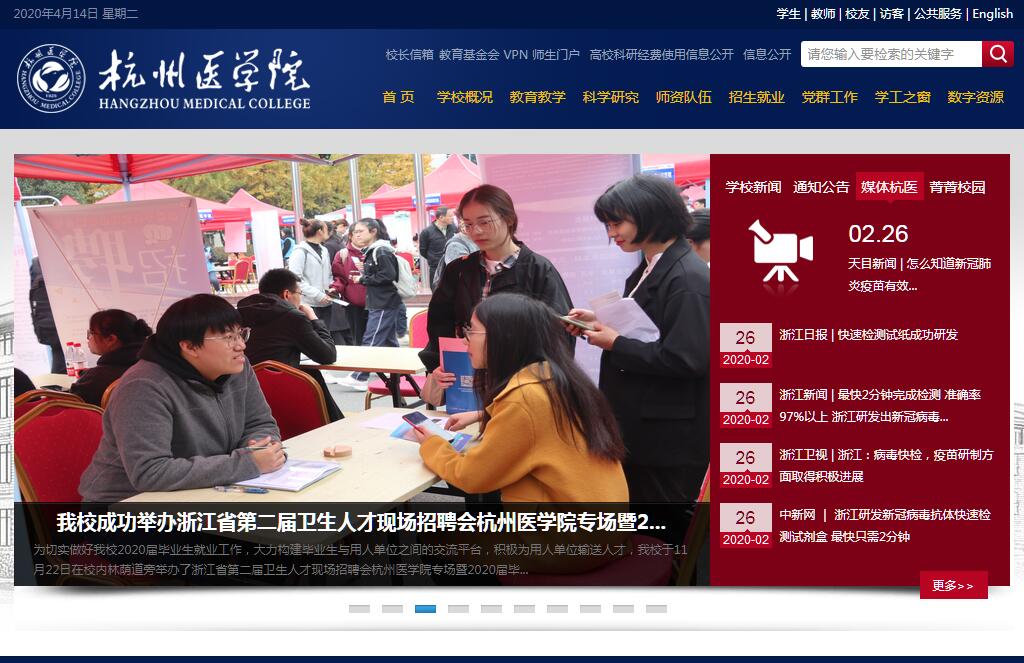 杭州医学院是一所具有90多年办学历史的全日制公办普通本科院校,坐落于享有“人间天堂”美誉的杭州。其前身为创建于1925年的浙江省立女子产科学校,其后屡迁其址、几更校名、历经沧桑、不断发展,1964年被原国家卫生部列为全国重点联系的8所学校之一,1993年被确定为省部级重点学校,1999年跨入高等医学教育行列,2016年升格更名为杭州医学院。杭州医学院是省内开设基层医疗卫生服务及健康产业相关专业最多的医学院校之一。现设有本科专业12个,专科专业12个;拥有省一流学科(B类)建设项目4个,省医学重点学科12个,省高等教育重点专业1个、省级优势专业2个、省级特色专业5个、中央财政支持专业建设项目2个,获国家首批“卓越医生教育培养计划”试点项目。建有三级甲等直属附属医院1家,校外实践教学基地166家,校内实践实训基地13个(其中,中央财政支持和省级示范实训基地6个)。设有国家医师资格考试实践技能考试基地与考官培训基地(公卫类别),省乡村医生培训学校、省基层卫生研究中心、省学校卫生保健指导中心、省医药行业特有工种职业技能鉴定站鉴定基地、西门子合作培训中心、美国心脏协会心血管急救培训中心等面向行业的培训和研究机构。现建有2个校区,占地面积667亩,校舍建筑面积26万余平方米。有全日制在校生5400余人,联合培养博士研究生、硕士研究生60余名。杭州医学院现有专任教师近500人,其中有国家新世纪百千万人才工程培养人员、国家有突出贡献中青年专家、享受国务院政府特殊津贴专家、省有突出贡献中青年专家、省“千人计划”入选者、省“新世纪151人才工程”入选人才、省教学名师、省优秀教师、省卫生领军人才、省卫生高层次创新人才、省高校中青年学科带头人、专业带头人等高层次人才近百人次。坚持开放办学、合作办学,与美国加州浸会大学、美国马里兰大学、美国纽约州立大学布法罗分校、美国乔治亚州立大学以及蚌埠医学院、山西医科大学等院校建立校际合作关系,广泛开展研究生培养以及教师互派、学生互换等学术文化交流活动,不断提升办学层次和国际化办学水平。杭州医学院全面落实立德树人根本任务,着力培养具有人文关怀理念、求真博爱精神和国际视野的高素质应用型医学人才。在长期的办学历程中,涌现出了中国工程院院士以及国家千人计划创业创新人才、“中国大学生自强之星”、全国优秀乡镇卫生院院长、全国五一劳动奖章获得者等一大批德艺双馨、甘于奉献、广受赞誉的杰出校友。丰富的校园文化、先进的教学设施和日趋广泛的合作交流为学生成长成才创造了良好条件。近几年毕业生初次就业率和一年后就业率均达96%以上,毕业生在执业资格考试中通过率均居全省同类院校领先水平。新时代赋予新使命,新征程呼唤新担当。今天的杭州医学院,正在为加快建设特色鲜明、优势突出的高水平应用型医学本科院校而奋斗。全校上下将始终坚持以习近平新时代中国特色社会主义思想为指导,自觉担负起“四个服务”历史使命,继续秉承“质量立校、人才强校、文化兴校”的办学理念,大力弘扬“求真博爱”的校训精神,在加快推进“两个高水平”和“六个浙江”建设的伟大实践中,立足“大健康”、抢抓“大机遇”、服务“大民生”,实现新跨越,再创新辉煌。