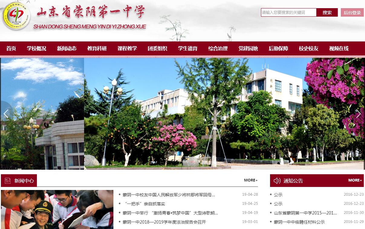 山东省蒙阴第一中学位于县城育才路8号,始建于1954年,原为“山东省蒙阴中学”,1956年改称“山东省蒙阴第一中学”。 原中央军委副主席迟浩田曾为学校题写校名。1984年被确定为临沂市重点中学。2007被确定为省级规范化学校。学校占地287.5亩,总建筑面积86439.3平方米。现拥有办公、教学、实验、综艺、图书、学生公寓、餐厅、后勤、教工宿舍等楼房26座,固定资产9000万元。学校设有微机、多媒体、语音、音乐、舞蹈、美术、通用技术、书法等特种教室,物理、化学、生物实验室、综合探究室、学术报告厅,设备均按国家一类标准配备。图书馆藏书17.5万册,阅览室订有报刊180余种。电子备课室、微机教室和办公室实现了宽带连接。运动场占地95亩,300m、400m标准田径场各一个,篮、排球场20个,室内篮球场1个,乒乓球台16个。校园总体布局合理美观,建筑典雅大方,环境优雅,,是莘莘学子读书求学之胜地,辛勤园丁培育英才之摇篮。学校现有94个高中教学班,在校学生6280人,教职工560人,专任教师398人,学历达标率为99%,其中高级教师105人,中级教师172人,特级教师2人,国家级优秀教师、骨干教师15人,省级优秀教师、骨干教师17人,市级优秀教师、教学能手26人。学校全面贯彻党的教育方针,始终秉承“弘扬沂蒙精神,培育祖国未来,传播正谊真理,造就社会栋梁”的建校宗旨,坚持“育人为本,德育为先”的办学原则,遵循“立足蒙阴,服务祖国,以人为本,创建特色”的办学思路,强化“文明、勤奋、求实、创新”的校风,优化“文明、勤奋、砺志、拼搏”的学风,引导学生树立以“爱心、责任、荣誉”为核心内容的世界观、人生观和价值观,培养学生“爱国、爱校、爱家”的思想情操,磨砺学生“自信、自强、自尊、自立”的意志品质,帮助学生实现“做人有德,做事有成,学有所长,体有所健”的成长目标,努力使全体学生达到“生活自理,学习自主,行为自律,人格自尊”的时代要求。全心全意致力于教育思想现代化、办学条件标准化、学校管理规范化、学生素质优良化,各方面工作都取得了优异的成绩。北京大学、清华大学、山东大学等知名高校不断与我校加强联谊,进行升学指导。学校形成了“让教育充满思想,让校园充满学术,让课堂充满激情,让职业充满幸福”的浓厚氛围。教师在省级以上报刊发表教研论文600余篇。学生在省级以上各类比赛中获奖300余人次。建校以来,共为国家培养出二万多名德才兼备的各类人才,30多名同学被清华、北大录取。学校先后荣获“蒙阴县两个文明建设先进单位”、“蒙阴县校务公开先进单位”、“蒙阴县宣传思想工作先进单位”、“临沂市教学工作先进单位”、“临沂市教学示范单位”、“临沂市现代信息技术示范学校”、“临沂市工会工作先进单位”、“临沂市规范化学校”、“临沂市文明单位”、“山东省优秀考点”、“山东省平安山东建设先进基层单位”、“山东省花园式单位”、“山东省教书育人先进单位”、“山东省中学生奥林匹克竞赛优胜学校”等荣誉称号。
