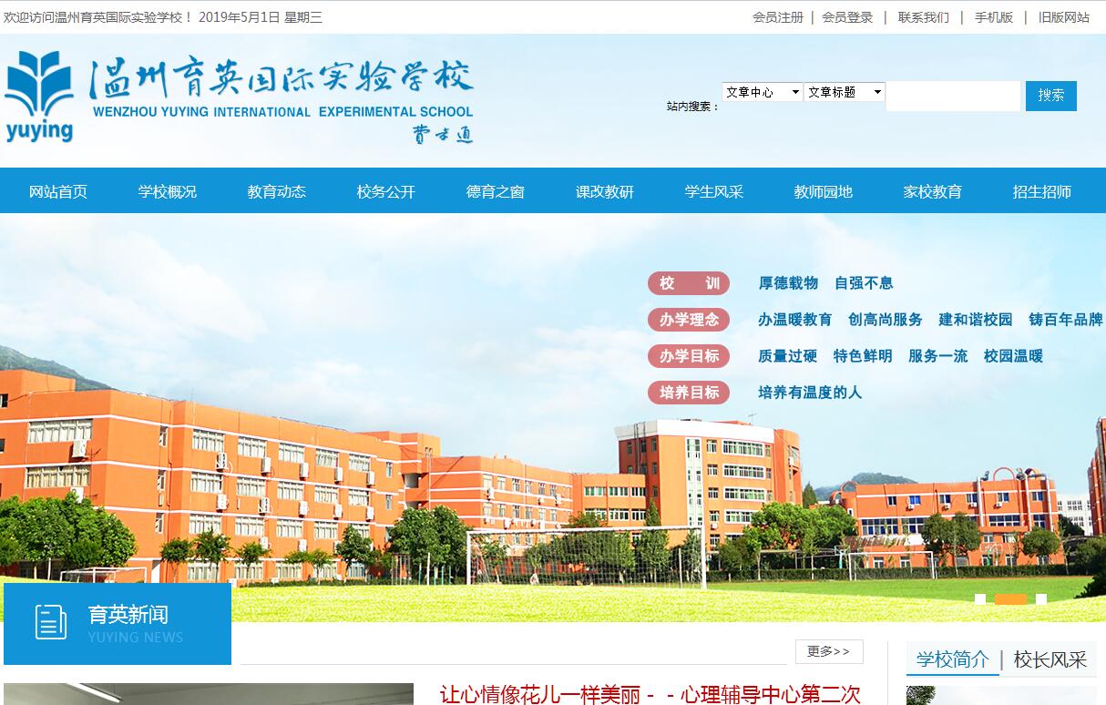 温州育英国际实验学校是一所从小学、初中到高中的12 年一贯制民办寄宿学校, 1996 年创办,总投资2.38 亿元,占地面积186 亩,建筑面积10 万平方米。现有教学班 133个(其中小学 54 个班、初中 52 个班、高中 27 个班)在校生 5882人,教职工 783人。 448 名专任教师来自全国 19个省、直辖市、自治区,95%以上获得当地县级以上教坛新秀(教学新星、优质课竞赛奖)称号,地(市)级、省级、国家级获奖教师逾60%。校园采用园林式布局,造型别致,分区科学。教学区:高中、初中、小学分校相对独立。中小学教室、办公室宽敞明亮,教室配置闭路电视、空调、多媒体小平台等设备;育英网站、校园网络、育英电视台、育英广播站、微机室、语音室、实验室、课件制作室、音乐、舞蹈、书画、琴棋等专用教室俱全,配套设施完备。生活区:师生公寓卫生设施齐全,24小时热水供应。学生公寓安装空调、电话。学生、教工餐厅用具均为不锈钢制品,备有烤箱、高温消毒柜、冷库等设施。伙食实行营养配餐(套餐);还设有24小时值班巡逻的安全保卫科、全天候服务的医疗保健心理健康中心。活动区:拥有400米塑胶环形跑道的标准田径场、200米环形跑道塑胶田径场、小学生塑胶运动场、体育馆,2个塑胶网球场以及各类球场。建有2个校内小公园。校园绿化面积 4.9万平方米,绿化率达42.5%。1996年创办伊始,学校举办者冷静分析了温州区域经济超前发展与基础教育培养后继人才相对滞后的现状,以“高标准、高档次、高起点、高质量”为学校发展作了战略定位;制定了“厚德载物,自强不息”的校训,逐步形成了“爱生如子,爱校如家,教书育人,真诚奉献”的教风,“会求知,会健体、会做事,会生活,会创造,会感恩”的学风,“博学笃志,坚毅自强,诚信明礼,求实创新”的校风。2013年9月,学校发展规划确立了“办温暖教育,创高尚服务,建和谐校园,铸百年品牌”发展愿景。21年来,学校积淀成较为科学的办学理念、管理理念和教育理念。学校举办者与管理者的职责权限明晰,“条块结合”式的管理体系功能具体。学校实行董事会领导下的总校执行校长负责制,执行校长全面主持学校日常工作。并按温州市非公有制企事业建制,成立了学校党总支、工会、团委组织。总校执行校长室下设高中分校、初中分校、小学分校、总校办公室、督导室、后勤部。各分校、部室下设处、科、中心若干。管理体系人员精干,职责明确,分工协作,确保学校管理工作的高效运转。创办以来,在上级党政部门的重视关怀下,在广大家长和社会各界的关心支持下,我校坚持全面贯彻教育方针,全面实施素质教育,秉持先进的教育思想、办学理念,努力办好让人民满意的教育。精心架构高中、初中、小学彼此衔接,梯次互补的优质教育发展格局,步入良性循环发展的轨道,充满可持续和稳步发展的活力。实施高中振兴工程,从全国各地省级示范高中引进名优教师30余名,广招奖励品学兼优的学生,实施英才教育。高中毕业会考、高考、学科竞赛一年一个台阶。2016年,4名学生考上北大清华;2017年,2名学生考上北大清华,倪芳彬同学以708分的高分、位次号全省第10名的优异成绩荣膺温州市高考状元;2018年,5名学生考上北大清华。初中充分依靠一支德才兼备、年富力强的名师队伍,质量特色并举,夯实了在瓯海区、温州市教育教学质量领先的地位。小学全面实施素质教育,培养学生良好的学习、生活习惯,让每个孩子掌握1—2门艺术特长,为学生德、智、体、美全面发展奠定坚实的基础。初中小学开发并实施“留给学生温暖记忆的校本课程,”拓展学生的智力潜能,促进学生全面主动发展。学校综合办学水平日益提高。1998年被市教委授予“学生日常行为规范达标学校”;1999年被温州市政府评为“温州市花园式单位”。2000年2月被瓯海区政府评为“文明单位”,3月被省政府授予“浙江省优秀民办学校”,5月被授予“浙江省一级民办普通高(完)中”。2002年被温州市委、市政府授予“文明单位”,被市环保局、教育局评为“绿色学校”,被省教育厅授予“浙江省现代教育技术实验学校”。2003年被市教育局、省教育厅推荐为“全国先进民办学校”。2004年被省教育厅、省环保局评为“浙江省绿色学校”,同年9月被评为“温州市重点高中”、“市教科研先进单位”。2006年被评为“温州市九年一贯制示范学校”、“温州市首届魅力民校”。2007年被省教育厅命名为“浙江省三级重点中学”,为温州市民办学校中第一所省级重点中学。2008年,被省教育厅授予“浙江省I类标准化学校”,被省教育厅、体育局授予“浙江省体育特色学校”,2009年,被市教育局授予“首批中小学教育信息化建设达标学校”、“艺术教育特色学校”,2010年,我校被区教育局授予“平安校园创建示范单位”、“区教育系统安全与综治工作先进集体”,被温州市教育局授予“素质教育示范学校”,被省教育厅评为“浙江省艺术教育特色学校”。2012年,被授予“温州市民办教育综合改革试点窗口学校”。2013学年,学校荣获温州市民办学校年检评估优秀奖、温州市“示范数字化校园”。2014年,学校心理健康中心被评为“浙江省一级心理健康辅导站”。2015年学校被评为“全国青少年校园足球特色学校”。2016年学校被评为“温州市民办教育先进单位”。2017年学校被评为“温州市青少