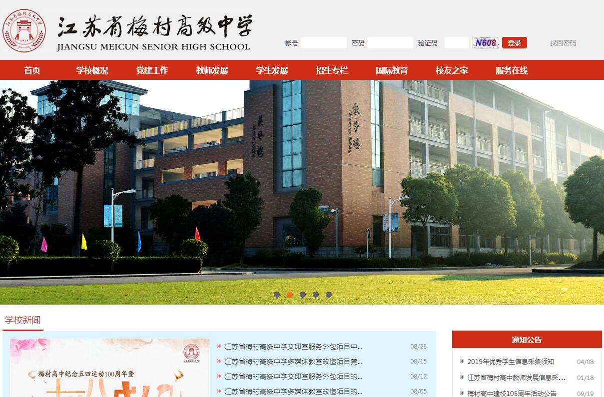 1946年8月,无锡县立师范学校成立,共录取196名学生。1954年,县师最后一届中师生毕业,学校更名为“无锡初级师范学校”,1955年8月,学校开始招收普通初高中学生,11月,学校复更名为“无锡县梅村中学”。1956年6月,私立中华中学改为公立,学生600余人,1957年与无锡县梅村中学合并,成为当时无锡县规模最大的完全中学。1998年7月,经江苏省教委批准,无锡县梅村中学复更名为“江苏省梅村高级中学”。2010年,学校创办梅村高中国际课程部,招收留学预备生,开设国际课程。2006年8月由老校区整体迁入,校区占地217838M,现有建筑面积103500平方米,绿化面积104000平方米。全校共有高中班49个,学生2000多人,其中寄宿生占97%,教职工245人。自建校以来,梅村高中办学业绩受到了人民政府与广大群众的广泛认可。学校于1960年经审定为江苏省重点中学;1980年经审定为江苏省首批办得好的重点中学;1985年由江苏省招办审定为可向全国高等院校推荐免试保送生的重点中学;1991年经江苏省教委验收,确认为“江苏省合格重点中学”;1999年接受并通过江苏省教委“国家级示范性普通高中”评估验收;2004年评定为“江苏省四星级普通高中”,从此走进了“承美德,孕育文化渊薮;尚至贤,造就人才摇篮”的崭新历史时期。学校多次受到上级教育行政部门表彰,荣获“全国校园影视教育研究实验学校”、“江苏省文明单位”、“江苏省德育先进学校”、“江苏省现代教育技术示范学校”、“江苏省科技教育先进集体”、“江苏省五四红旗团委”、“江苏省教科系统模范职工之家”、“无锡市共产党员先进性教育先进集体”、“无锡市廉政文化建设示范点”、“无锡市学校管理中心办学绩效突出奖”、“无锡市文明单位”、“无锡市模范基层工会”、“无锡市教育系统敬老先进学校”等荣誉称号。