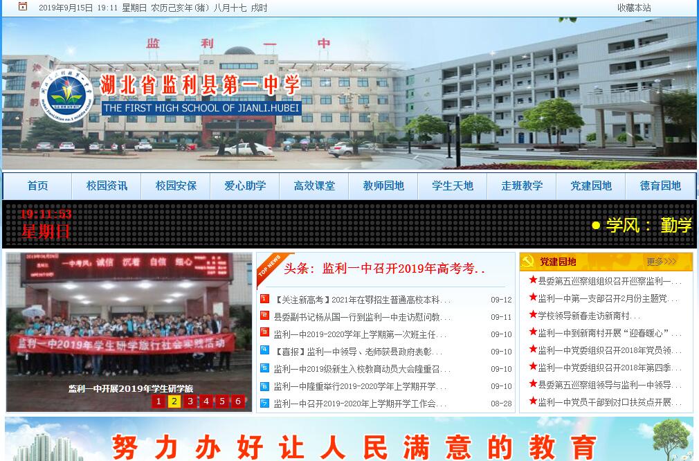 监利县第一中学,始创于1914年,1941年,省政府正式批复挂牌办学。监利一中是湖北省首批三十四所完全中学和重点中学之一,是监利县惟一的省、市重点中学。2011年7月,监利一中荣获市、县两级“‘三万’活动先进单位”称号;2014年,荣获监利县教学质量先进单位。监利县第一中学,占地268亩,建筑面积达6万㎡,教学楼气势恢宏,科教楼雄伟壮观,图书馆空灵别致,学生食堂大气磅礴。学校教学设施堪称全省一流,图书馆藏书10万余册,另有K12电子图书12万册,校园网连通所有教学场所,今年暑假每个教室都配备了先进的电子白板,真正实现了教学的现代化,理、化、生常规实验室全部按国家I类标准配备,另有多功能教室、语音室、音乐室、美术室,运动场。学校坚持以教师立校,以教师兴校,十分重视教师队伍建设,先后有5位教师评为全国优秀教师,9位教师评为特级教师,45位教师被评为省、市明星教师、骨干教师,中学高级教师72人,一级教师90人。学校特别注重对教师课堂教学素质的培养,近年来,涌现出程爱华、王萍、姚芳、吴又清、秦鸿、焦永红、黄如泉、刘兵等13位荆州市教学比武状元,有7人夺得省一等奖,另有38位教师获得市一等奖,优质课获奖教师人数位居荆州市第一。师资队伍的结构更趋合理,老、中、青三个年龄阶段的教师比例为2:5:3,现在的教师队伍是一支稳实的、充满活力的、富有战斗力的队伍。