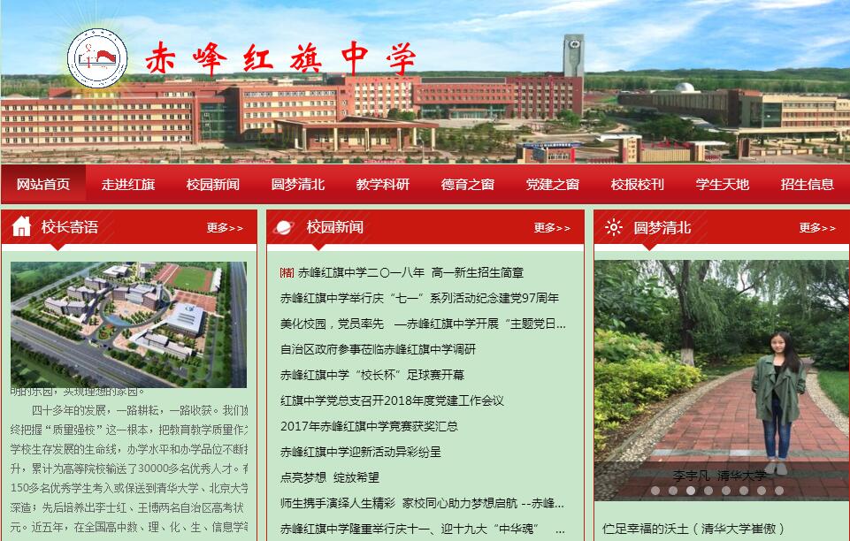 松山红旗中学,创建于1976年,曾先后改称为桥西中学、松山一中,2002年恢复原始校名。赤峰市名学校,自治区示范性高中,国防生生源基地学校,首批课程改革样本校;全国奥林匹克体育教育示范校,全国消防安全教育示范校。2013年成为清华“新百年领军计划”(全国301所、内蒙古7所)推荐优质生源基地学校之一,2013年被市政府授予普通高中教育突出贡献先进学校称号。2013-2015年连续被松山区教育和科技局评为责任目标考核实绩突出单位。三十九年的优秀传统,铸就了学校“务实求新、追求卓越”的红旗精神,今日松山红旗,已经成为赤峰普通高中教育的一面旗帜,莘莘学子倾心向往并成就青春梦想的精神家园。十一五期间,依靠自己的力量,发挥品牌优势,先后建设、发展了红旗中学木兰分校和新城分校,为松山区高中教育作出重大历史贡献,也砥砺和丰富了办学品牌。学校教学设施完备、功能齐全。校园环境文明优雅、整洁有序。校园文化有形有色,理想、信心,责任、担当,竞争、合作,奋斗、超越,成了学校文化的主旋律。学校现有61个教学班,拥有一支结构合理、业务精良的教师队伍,现有教职员工251人,其中特级教师2人,高级教师121人,国家级骨干教师3人,自治区级教学能手、学科带头人12人,有 36 位教师具有硕士学位。恢复高考制度以来,累计为高校输送3万多名优秀人才。有130多名学生考入或保送到北大清华深造;先后培养出李士红、王博两名自治区高考状元。近年来,高考升学率继续在赤峰市各旗县区重点高中居于领先地位。全国高中学科奥赛每年都有多名同学获得一二三等奖,同时获得参加国内知名大学自主招生考试资格。2015年高考,松山红旗中学600分以上共69人,其中文科7人,位居全市第一;理科62人,位居全市第二。全自治区600分以上共2107人,比去年3302人减少1195人,我校去年66人,今年69人,增加3人。我校本科一批上线人数(没有补习生、不含艺体生)共605人,其中文科80人,理科525人,位列赤峰市所有普通高中第一,在全市遥遥领先。实考分松山区理科前50名我校35人;文科前20名我校18人。致力于建设“观念先进,师德高尚,教艺精湛”的学习型、研究型、创新型教师团队。“学生发展,教师发展,学校发展”的理念早已成为班子成员的高度共识。落实红旗中学《新课程课堂教学规程》,全面推广“导学案”,从2013年开始实行课堂最后8分钟停止讲课的做法,引导教师强化并践行“由学会到会学”的教学理念,把学习主动权真正还给学生。注重文化引领,全面打造书香校园。在教师中启动十年百万百书工程,引导教师逐步建立“读书-实践-写作”教育生活方式。开设阅读课,创办《拾贝》专刊,举办“走进经典,演绎经典”等“读书伴我行系列”活动,营造浓厚的校园文化氛围。十二五以来,学校与时俱进,承传创新,确立了“传承红旗历史文化,启迪学生成长智慧,奠基学生终身发展,开创名校崭新未来”的办学思想。完善了“树人立德,培智启学,为学生终身发展、终身幸福奠基”的办学理念。进一步明确了“创建优质精品高中,办受人尊敬的松山区老百姓喜欢的学校”的近期办学目标。2015年10月18日,学校搬迁至赤峰松北城区占地200亩的新校址,教学楼、宿舍楼、餐厅、综合实验楼和体育馆等十三大楼宇场馆建筑总面积71535㎡,投资约2亿元。办学条件真正达到现代化、标准化,学校的发展将登上更高的台阶。