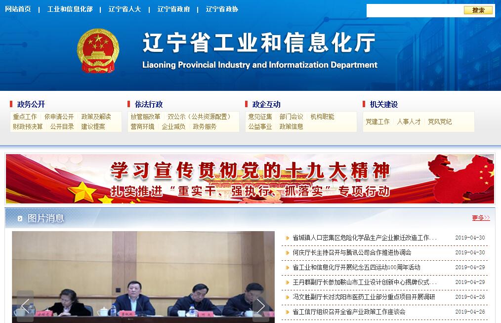 辽宁省工业和信息化厅主要职责:(一)组织贯彻国家新型工业化发展战略和政策,协调解决新型工业化进程中的有关问题,拟订工业、信息化的发展规划并组织实施,推进产业结构战略性调整和优化升级,推进信息化和工业化融合,推进军民融合产业发展。(二)制定并组织实施工业行业规划、计划和产业政策,提出优化产业布局、结构的政策建议,起草相关地方性法规和省政府规章草案,负责工业和信息化行业管理工作,拟订并组织实施工业八大产业发展政策措施,指导行业质量管理工作。(三)分析工业经济发展趋势,提出调控目标和调节政策建议,负责日常工业经济的调控,监测分析工业运行态势,发布相关信息,进行预测预警和信息引导,协调解决工业运行发展中的有关问题,负责工业应急管理、产业安全和参与国防动员有关工作,联络、协调驻辽中直企业。(四)负责提出工业和信息化固定资产投资规模和方向(含利用外资和境外投资)、省级财政性建设资金安排的意见,按规定权限,管理国家规划内和年度计划规模内固定资产投资项目。(五)拟订高技术产业中涉及生物医药、新材料、信息产业等的规划、政策并组织实施,指导行业技术创新和技术进步,组织实施科技重大项目,推进相关科研成果产业化,推进信息技术应用,推动软件业、信息服务业和新兴产业发展。(六)负责《〈中国制造2025〉辽宁行动纲要》的组织实施与统筹协调工作,提出推进制造强省的工作措施和政策建议。(七)承担振兴装备制造业组织协调的责任,组织拟订重大技术装备发展和自主创新的规划、政策,依托重点工程建设协调有关重大专项的实施,推进重大技术装备国产化,指导引进重大技术装备的消化创新。(八)拟订并组织实施工业和信息化的能源节约和资源综合利用、清洁生产促进政策,参与拟订能源节约和资源综合利用、清洁生产促进规划,协调推进相关重大示范工程。(九)依法行使全省电力行政管理职责,协调电力运营中的有关问题,培育电力市场,参与制定交通产业发展政策。(十)统筹推进全省信息化工作,协调信息化建设中的重大问题,指导协调通信运营业的发展,促进电信、广播电视和计算机网络融合,指导协调电子政务发展,推动跨行业、跨部门的互联互通和重要信息资源的开发利用、共享。(十一)统一管理无线电频谱资源,依法监督管理无线电台(站),协调处理军地间无线电管理相关事宜,协调处理电磁干扰事宜,维护空中电波秩序,依法组织实施无线电管制。(十二)负责指导全省工业领域信息安全和全省信息安全保障体系建设,指导监督政府部门、重点行业的重要信息系统与基础信息网络(除公共电信网)的安全保障工作,参与处理网络与信息安全的重大事件。(十三)拟订发展国防科技工业规划和政策,推进产业布局调整和重组,负责推动军工核心能力建设和计量、质量等工作,按分工负责国防科技成果的保护和推广工作,负责军工电子行业管理,负责军队与地方武器装备科研生产重大项目的组织协调和军工单位与地方之间的服务协调工作,推进军转民、民参军有关协调工作,负责民爆器材行业管理和核事故应急相关工作。(十四)负责中小微企业、乡镇企业、民营经济、城镇集体经济发展的宏观指导和综合协调,拟订并组织实施发展规划和相关政策措施,监测分析发展动态,推动建立完善服务体系,协调解决有关重大问题。(十五)配合有关部门做好工业招商引资工作,参与工业重大招商引资活动,协调工业招商引资项目的跟踪落实和相关指导、协调、服务工作。(十六)指导工业企业加强安全生产工作,指导监督全省军工企业的安全生产工作,负责民用爆破器材生产和流通企业的安全生产监督管理工作。(十七)开展工业和信息化的对外合作与交流,按分工承担企业帮扶工作。(十八)承办省政府交办的其他事项。