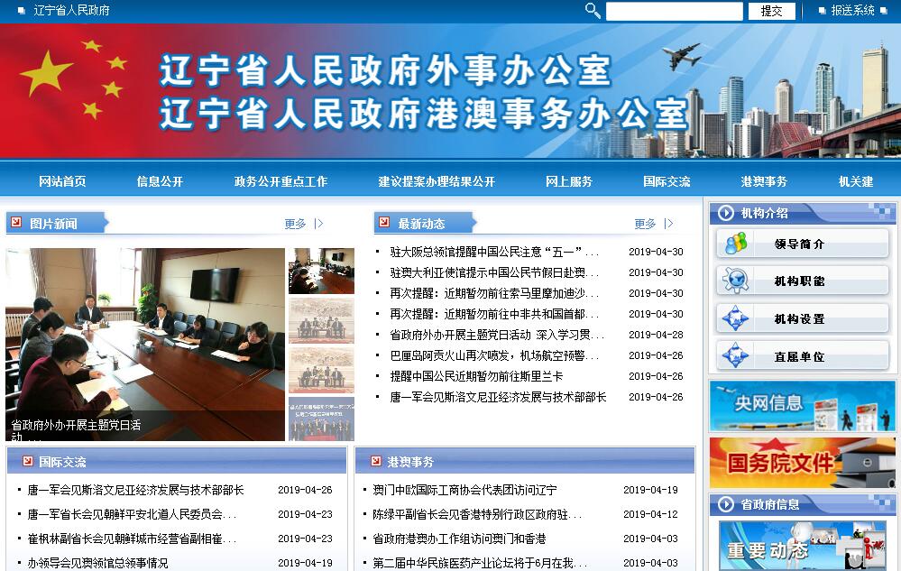 辽宁省人民政府外事办公室主要职责是:(一)贯彻执行国家的对外方针政策、涉外法规以及省委和省政府关于外事、港澳工作的决定。(二)起草我省外事工作规划和重要外事规定,拟订并组织实施外事工作管理制度,检查有关部门和单位贯彻对外方针政策和涉外法规的执行情况,协调我省重大外事、涉外活动,负责处理或协助处理重要的涉外事务,围绕经济建设和对外开放工作开展调查研究,提出我省对外工作的意见和建议,利用对外交往渠道,为全省的经济建设和社会发展服务。(三)配合外交部管理中朝边界辽宁段和黄海海域边界,开展中朝边界联检工作,处理边境、口岸涉外事务,负责跨国界设施建设和界河工程审批的有关工作。(四)管理我省与外国友好城市、友好区(县)以及其他结好单位的交往活动,办理对外结好的报批手续,指导我省民间对外交往工作。(五)负责在我省举办的国际会议的审批、审核工作,负责以省政府名义举办的大型国际活动的策划、组织和联络工作,组织接待来我省进行公务活动的国宾、党宾、外国驻华外交人员和其他重要外宾,统筹安排省委、省人大、省政府和省政协领导的外事活动。(六)负责我省对外政策、重大国际问题的宣传材料和对外表态口径,负责来我省采访的外国记者和外国驻我省的新闻机构和常驻记者的有关事务,指导我省有关部门或单位做好外国记者采访活动的安排。(七)负责外国驻我省领事机构的管理和交涉事宜,统筹安排和管理我省各部门、各单位与外国领事机构的交往活动,管理为外国领事机构服务的机构和为境外驻我省官方代表机构、新闻机构提供雇员服务的单位,办理和参与省内涉外案件的对外交涉工作,负责领事保护和协助工作,协调、指导有关部门、省内各级政府处理领事保护和协助案件的办理工作。(八)会同有关部门处置境外涉辽突发事件,保护境外我省公民和机构的合法权益,参与处置省内涉外突发事件。(九)拟订我省有关因公出国及赴香港、澳门团组管理方面的规章制度和工作规划,归口管理全省因公出国及赴香港、澳门审核、审批工作,并按权限审核及承办审批因公出国及赴香港、澳门事项,协助办理需国家审批的省级领导出访团组及赴未建交国家、热点或敏感国家、地区访问团组的报批手续。(十)配合纪检监察和保密部门检查外事纪律及保密制度的执行情况,协同有关部门查处出国(境)工作中出现的重大违纪事件。(十一)贯彻执行国家对香港、澳门工作的方针、政策,负责我省涉及香港、澳门有关事务,负责来我省采访的港澳记者的有关事务,指导我省有关部门或单位做好港澳记者采访活动的安排。(十二)承办省政府交办的其他事项。