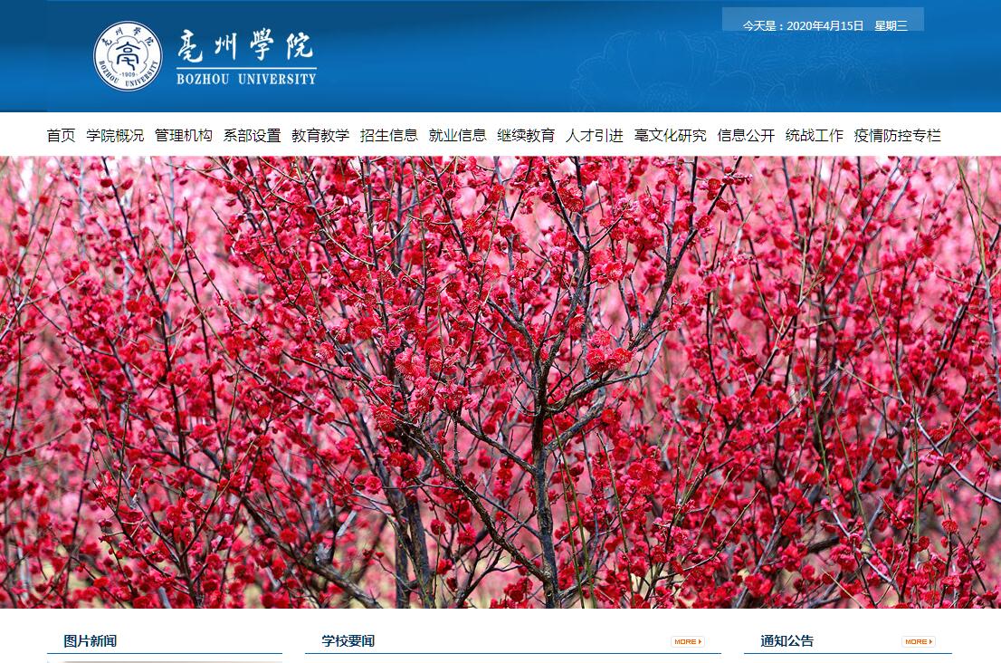 亳州学院是国家教育部批准设置的公办普通本科高校,坐落于“国家历史文化名城”、“全国首批优秀旅游城市”、首批国家中医药健康旅游示范区、全国十大“一带一路国际健康旅游目的地”、全国“四大药都”之首——安徽亳州。这里文脉悠长,人文荟萃,老子、庄子、曹操、华佗、花木兰、陈抟等一批圣哲先贤诞生于此,具有3700多年历史的亳州成为彪炳史册、泽被中华的道家文化、中医药文化的发祥地。学院办学历史始于1909年创办的蒙城师资讲习所,1952年设置蒙城师范学校,2002年3月经国家教育部批准,独立升格为亳州师范高等专科学校。2016年3月,经国家教育部批准,亳州师范高等专科学校独立升格为亳州学院。百年办学历史,蕴育了“善学善教,育己育人”的校训,形成了“严谨、垂范、求真、拓新”的教风和“勤学、善思、砺志、进取”的学风,培养了3万多名合格人才。学院坚持“地方性、应用型、特色化”办学定位,以教育学类、中药学类、食品科学与工程类、旅游管理类等专业为特色,构建了基础学科与应用学科交叉融合,教育学、工学、医学、经济学、管理学、文学、艺术学多学科协调发展的学科专业体系。学院现占地面积925亩,建筑面积25.3万平方米。学院图书馆资源丰富,现有纸质藏书70多万册,中外文期刊839种,电子图书近70万册,购买和自建中外文数据库28个,馆藏资源能满足师生教学科研需要。学院拥有一支高素质的教师队伍,共有专任教师390人,其中正教授38人、副教授104人,专任教师中博士31人、硕士301人。现设中药学院、电子与信息工程系、生物与食品工程系、经济与管理系、教育系、中文与传媒系、外语系、美术系、音乐系、体育系、思政教研部等11个教学院系。学院现有15个本科专业,34个专科专业;其中有8个省级特色专业、5个省级综合改革试点专业、2个省级卓越人才培养专业,5个省级优秀教学团队、6个省级综合示范中心与校企合作实践教育基地、9个省校级科学研究机构。学院围绕建设充满活力、特色鲜明的地方高水平应用型本科高校目标,积极推进转型发展、开放发展、创新发展和服务发展,努力构建应用型人才培养体系,大力推进学科专业建设。投资近1亿元建设制药、酿酒、中药苗组培、电子与信息、设计与传媒、物流、会计、旅游、教师教育等实验实训中心,共有实验、实训室160多个,满足各专业实验实训教学需要。学院广泛开展校地、校企、校政、校校合作,搭建产学研合作平台,开展协同创新,推进产教学研一体化,促进工学结合、产教融合,打造融实习实训、就业与一体的合作平台。学院与菲律宾德拉萨大学、泰国博仁大学、韩国汉拿大学、韩国又松大学、台湾元培医事科技大学、台湾敏慧医护管理专科学校等建立了友好合作院校关系,开展合作办学。学院与北京甲骨文公司、京师国际教育集团、上海昌硕集团、广东安东物流等30多家“北上广”、“长三角”、“珠三角”企业合作,开展实质性的订单式人才培养;与古井集团、华佗国药、广印堂药业等本地知名企业合作建立了71个校外实习实训就业基地。与新加坡金日教育产业集团合作,每年选拔优秀毕业生赴新加坡就业。学院大力传承地方优秀传统文化,注重学生的人文素养和综合素质教育。充分发挥安徽省亳文化研究基地与“亳文化研究中心”平台,积极打造“亳文化”特色品牌,推动传统文化进校园、进教材、进课堂、进社区活动。建成占地1000平方米的亳文化馆,全方位、多角度地展示亳州博大、厚重、悠久的历史文化,成为师生和社会人士了解亳文化的重要窗口。学生课余生活丰富,学院现有《鸽子》文学社、五禽戏健身协会、“芍花”女子合唱团、篮球部落等各类学生社团50多个,充分发挥第二课堂作用,形成第一课堂和第二课堂互相促进、健康学习、快乐学习的育人模式。学院强化大学生社会责任教育、创新创业教育和实践教育,激发应用型、技术技能型人才培养活力,人才培养质量稳步提升。近五年,学生参加学科技能大赛,获得国家级奖励20多人次,省级奖励300多人次;毕业生就业率保持在98%左右。毕业生在各行各业的优秀表现,获得了用人单位的一致好评,为学校赢得了良好社会声誉。